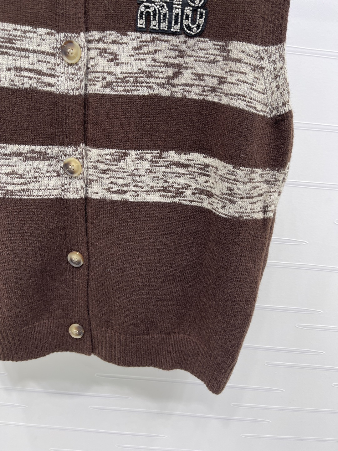 这款衣服是AAAAA 1:1 质量 (非常棒). 使用了和原版一模一样的材料. 商标部分也保持了和缪缪/Miu Miu一样. 图片拍摄是实物衣服拍摄, 您所收到的实物保证和我们图片一模一样.