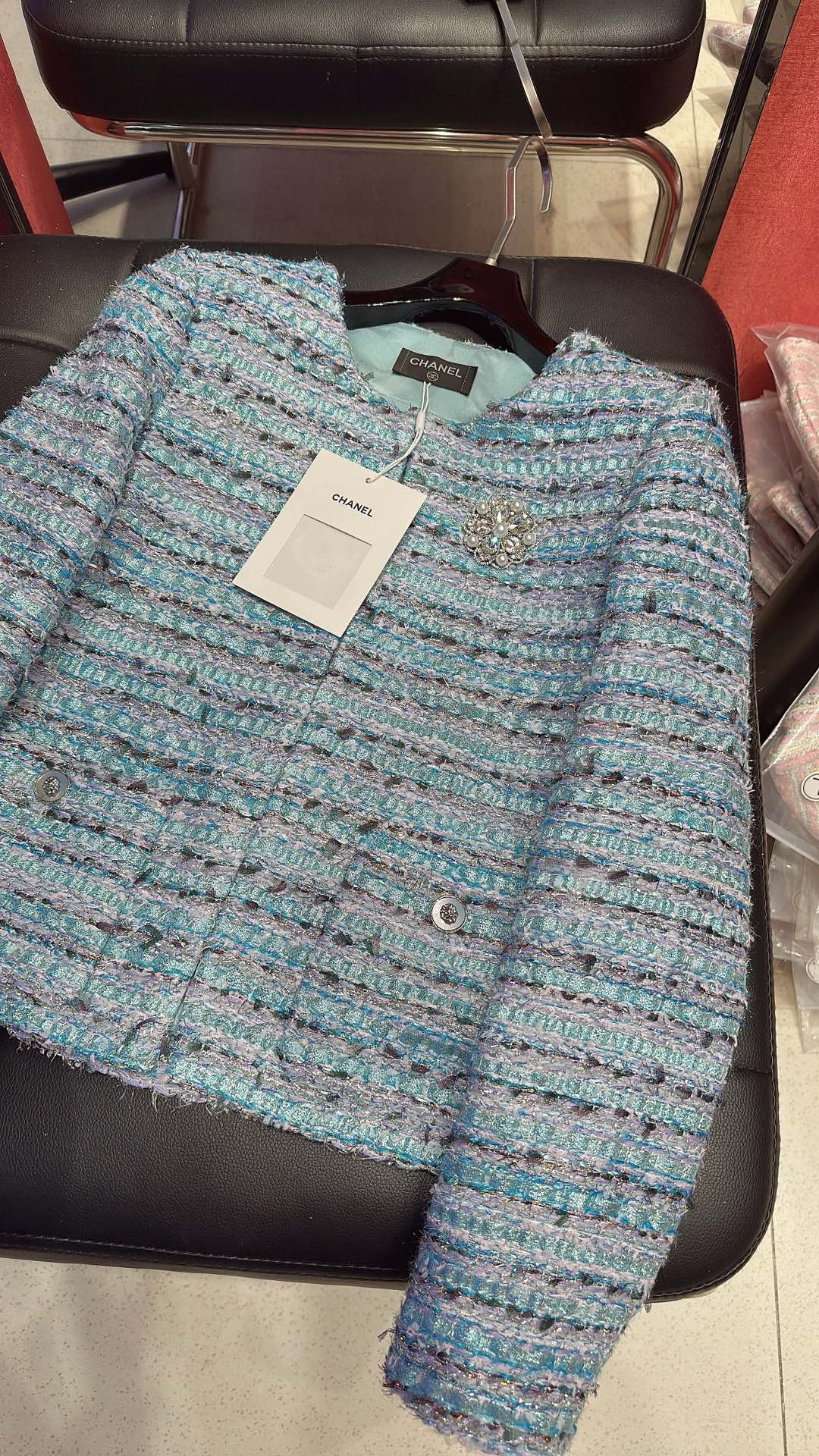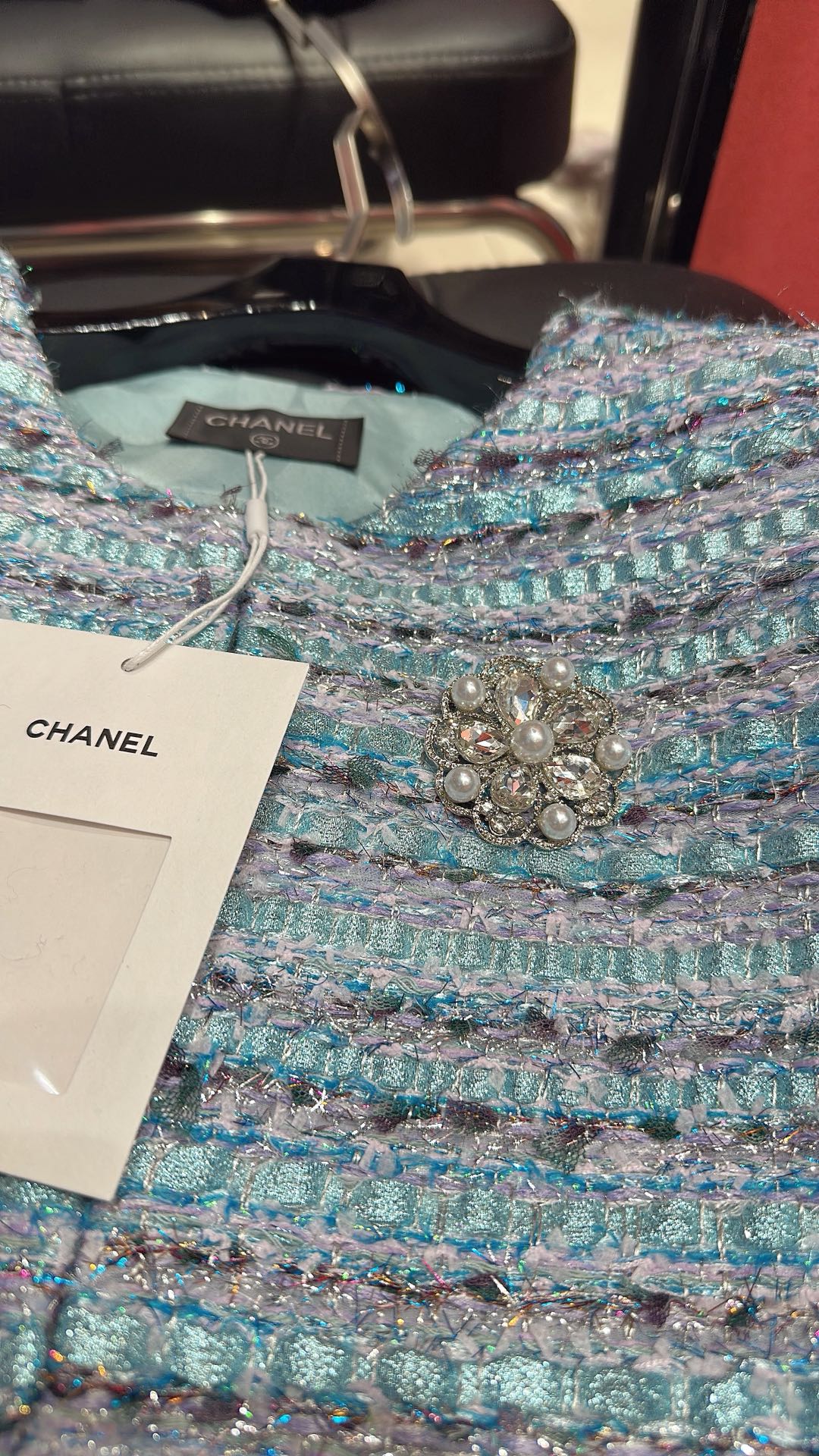 这款衣服是AAAAA 1:1 质量 (非常棒). 使用了和原版一模一样的材料. 商标部分也保持了和香奈儿/Chanel一样. 图片拍摄是实物衣服拍摄, 您所收到的实物保证和我们图片一模一样.