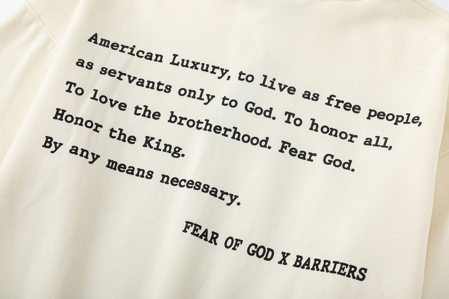 这款衣服是AAAAA 1:1 质量 (非常棒). 使用了和原版一模一样的材料. 商标部分也保持了和Fear of God一样. 图片拍摄是实物衣服拍摄, 您所收到的实物保证和我们图片一模一样.