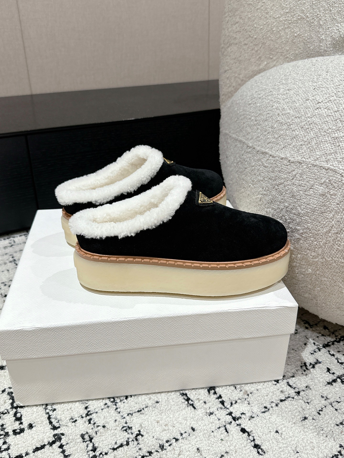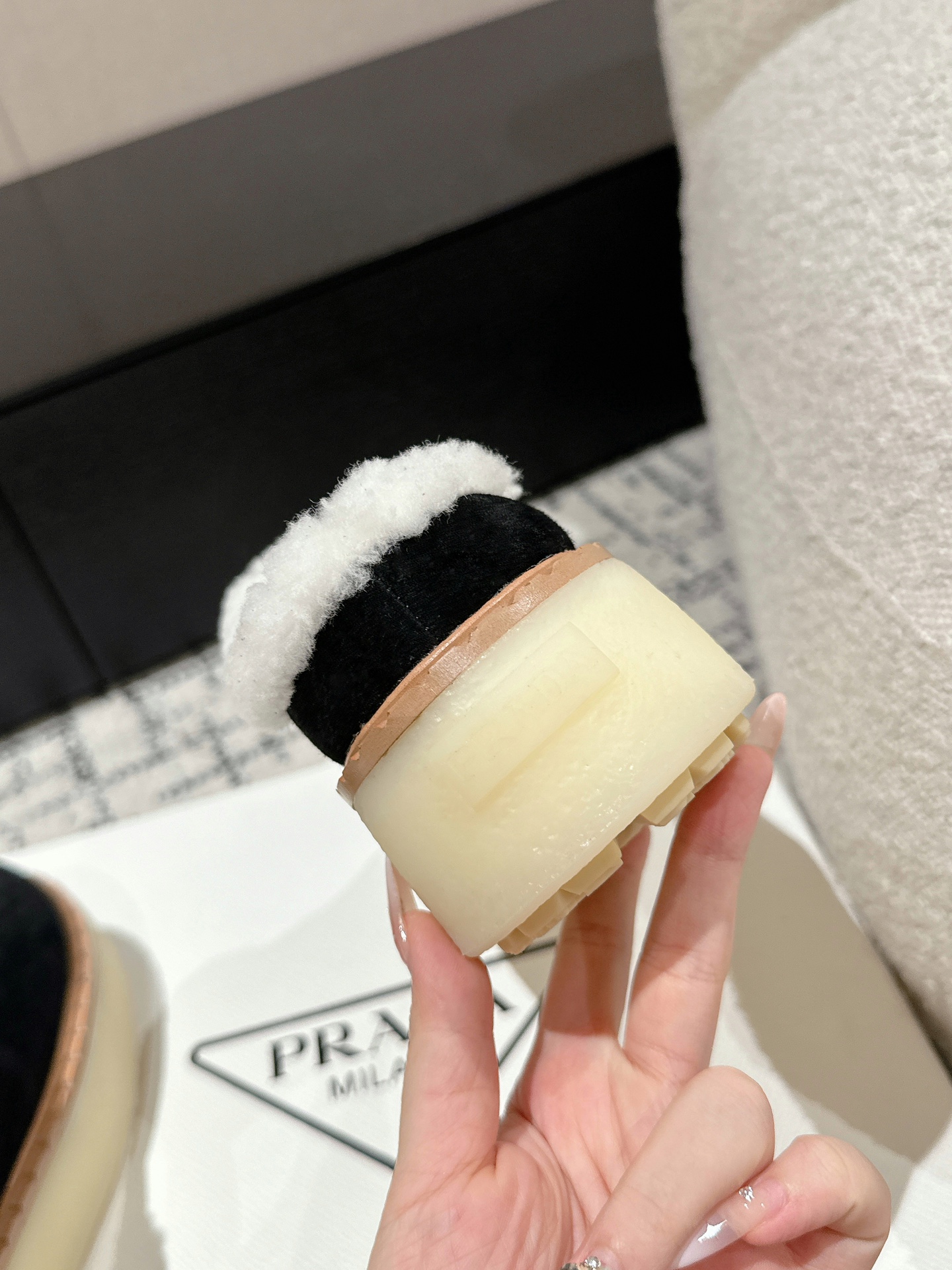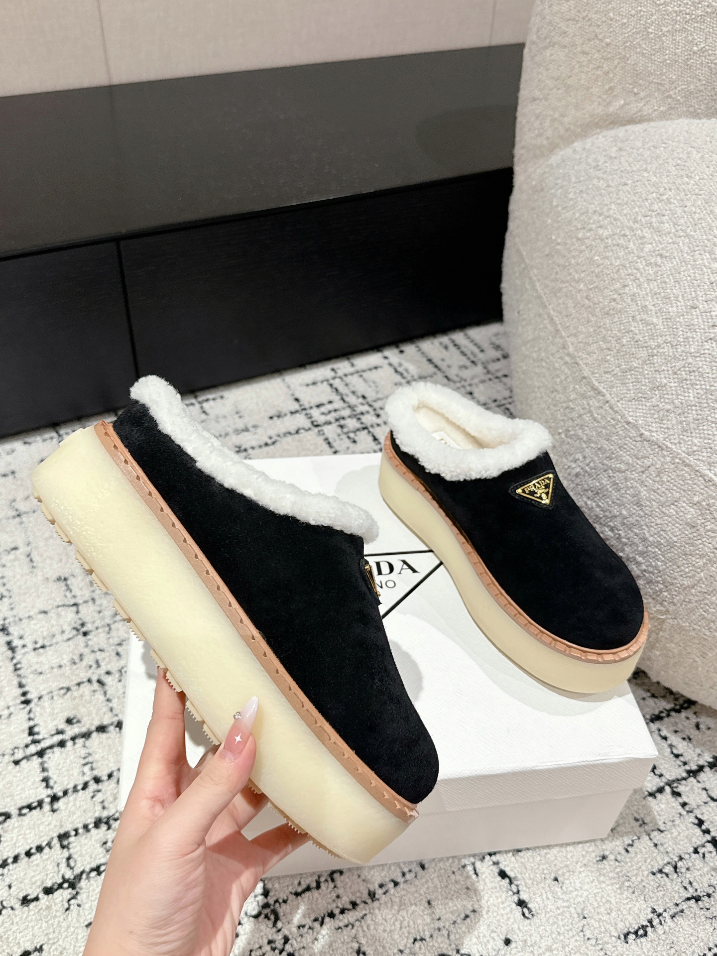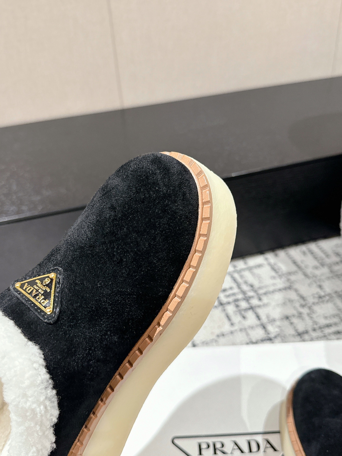 这款鞋子是AAAAA 1:1 质量 (非常棒). 使用了和原版一模一样的材料. 商标部分也保持了和普拉达/Prada一样. 图片拍摄是实物鞋子拍摄, 您所收到的实物保证和我们图片一模一样.