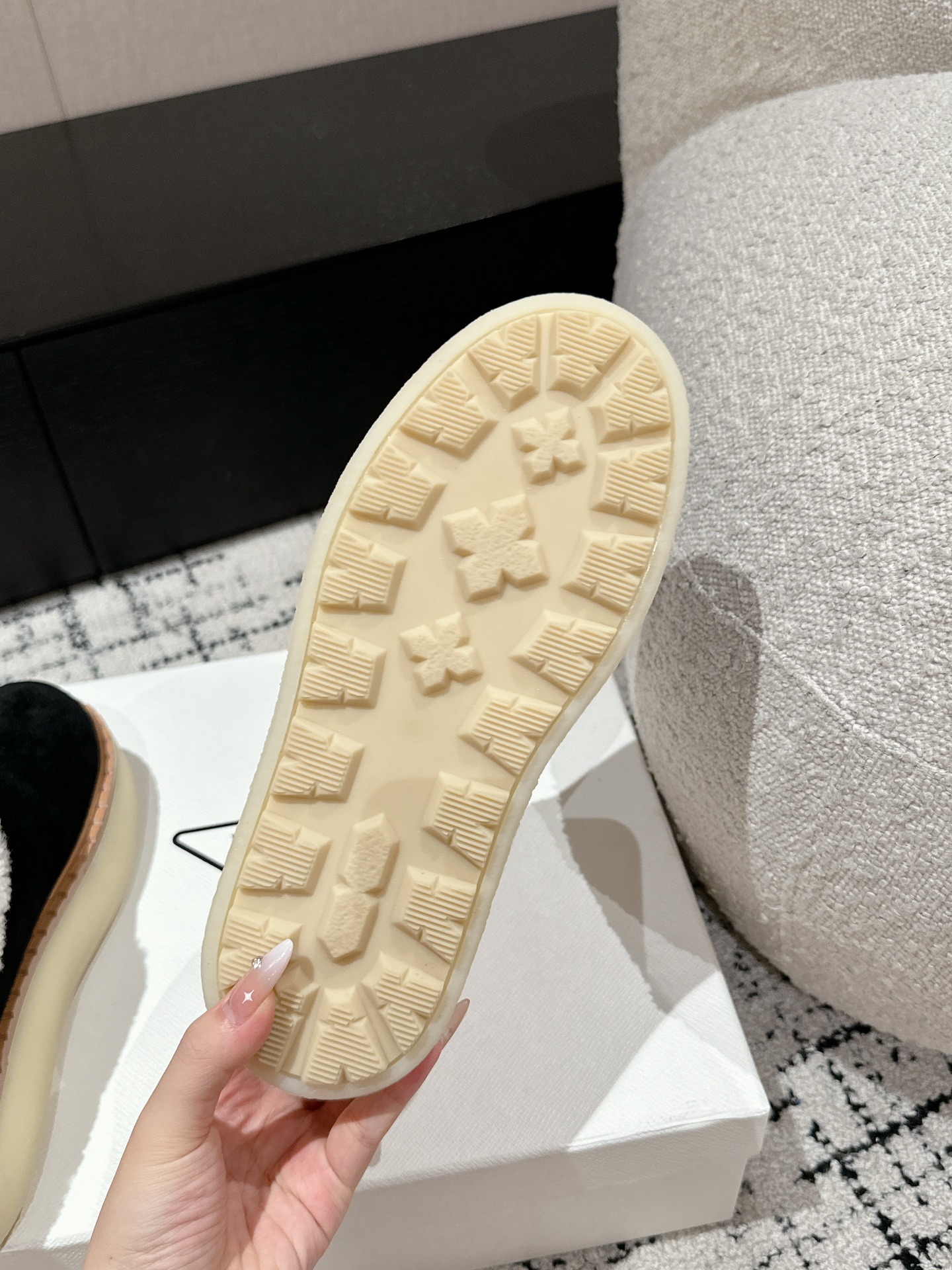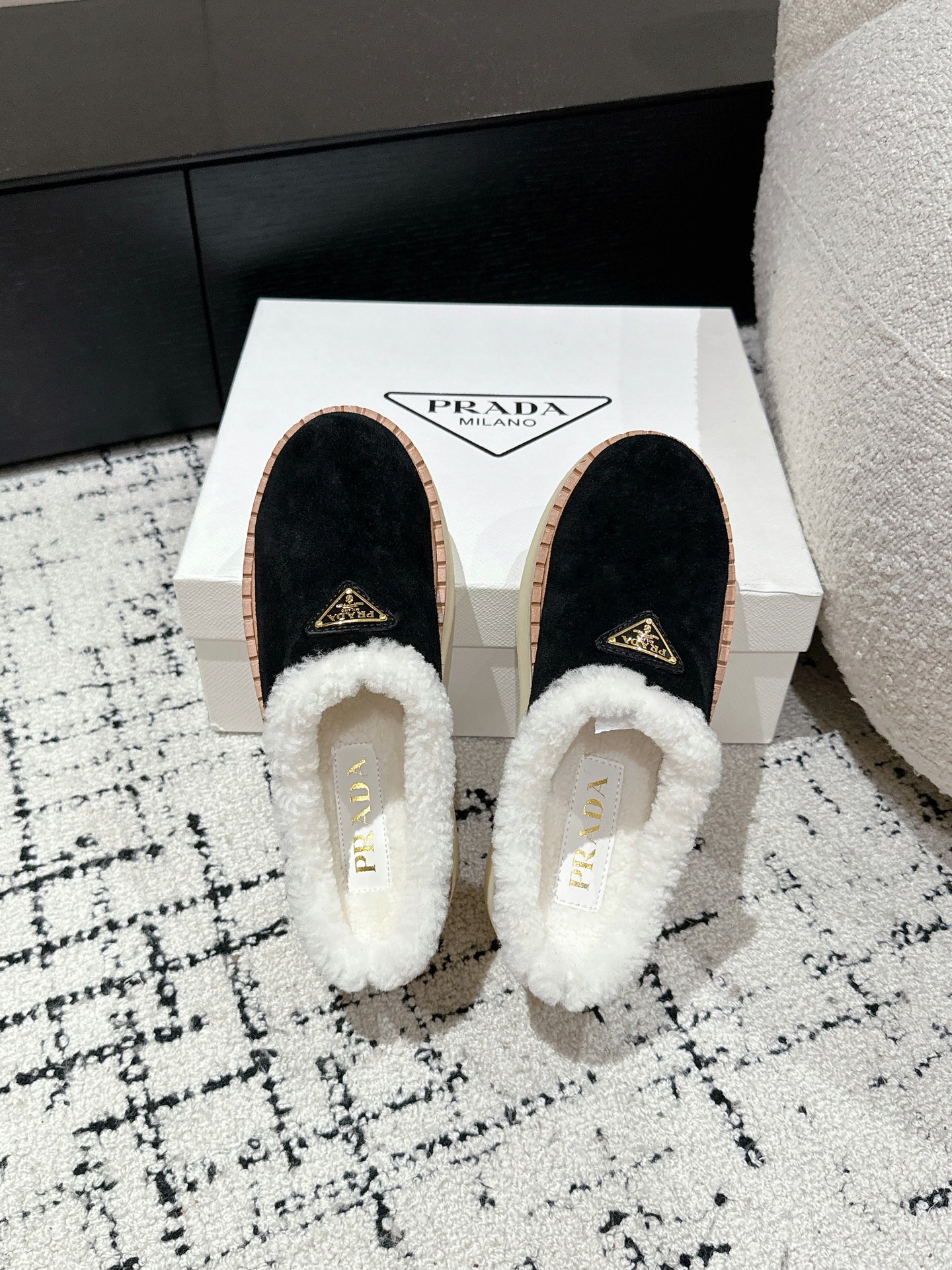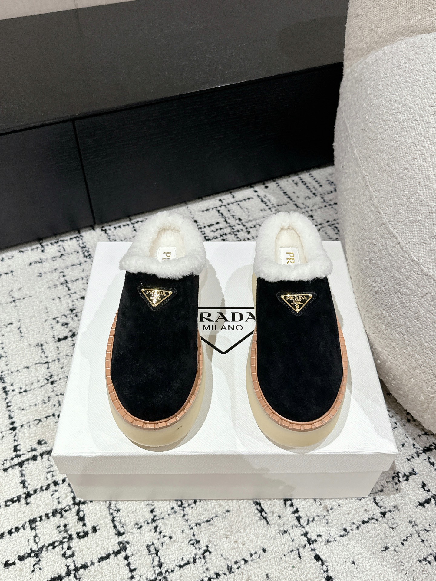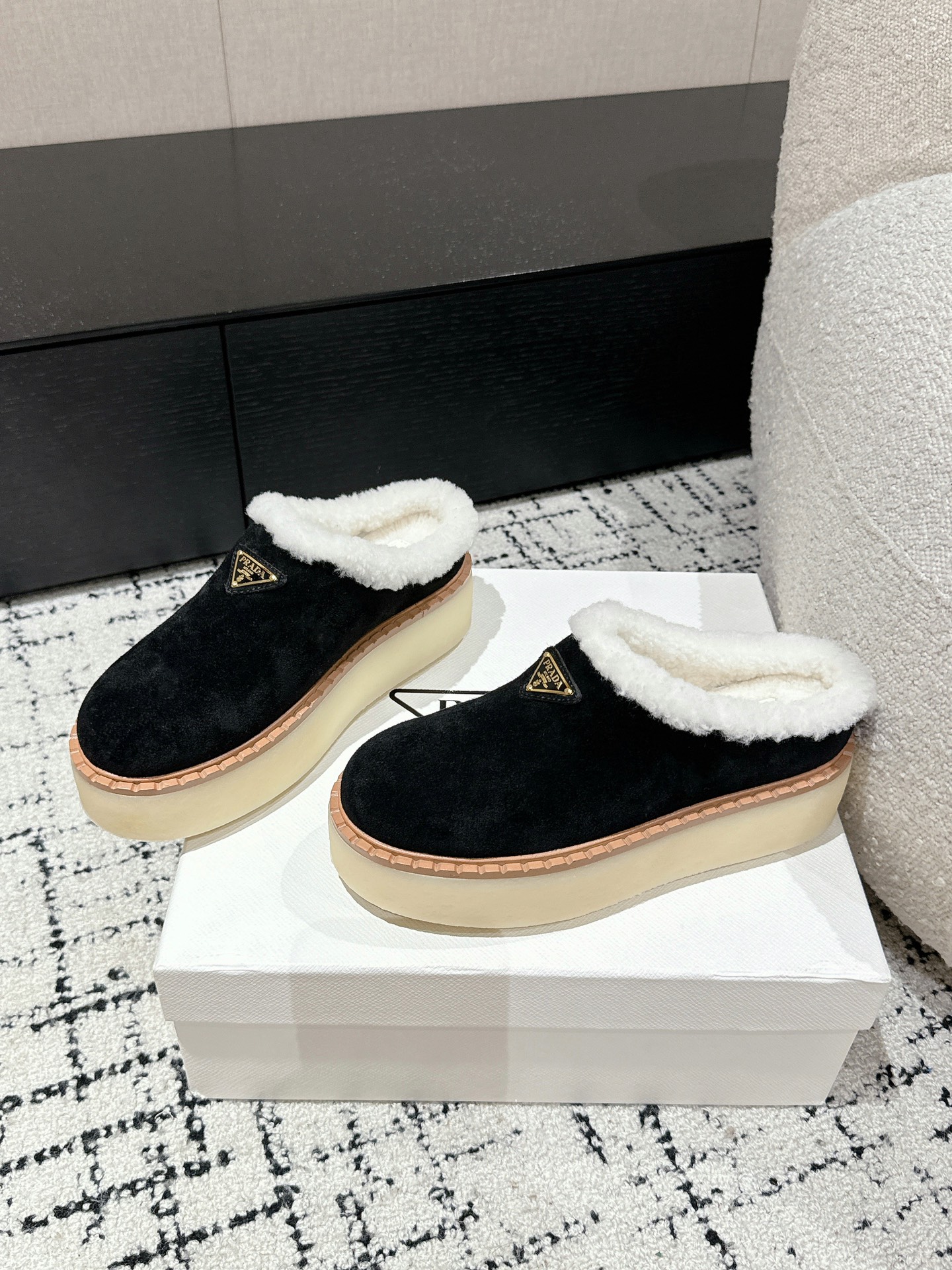 这款鞋子是AAAAA 1:1 质量 (非常棒). 使用了和原版一模一样的材料. 商标部分也保持了和普拉达/Prada一样. 图片拍摄是实物鞋子拍摄, 您所收到的实物保证和我们图片一模一样.