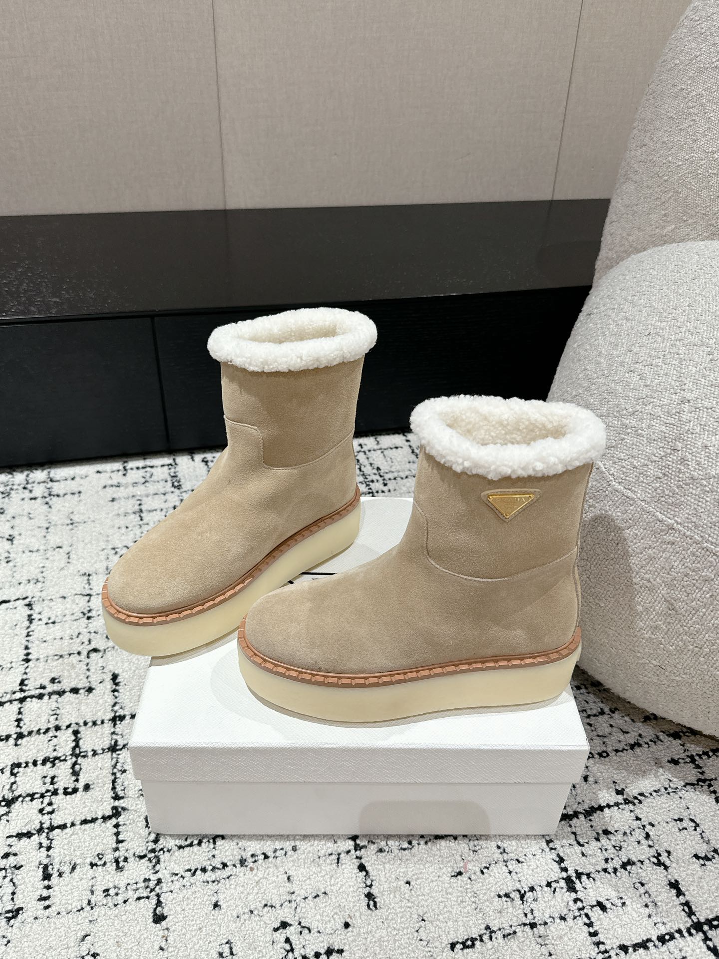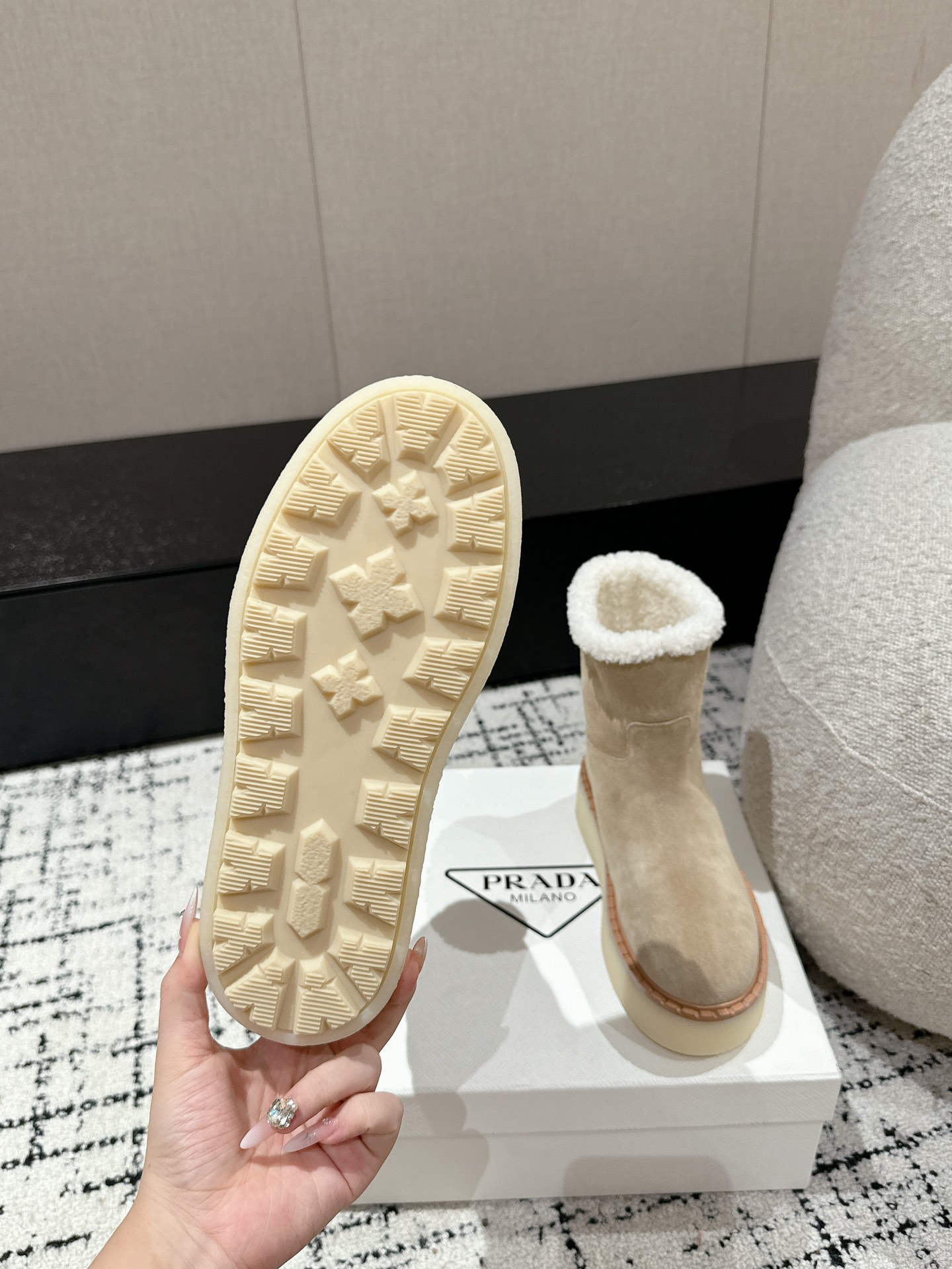 这款鞋子是AAAAA 1:1 质量 (非常棒). 使用了和原版一模一样的材料. 商标部分也保持了和普拉达/Prada一样. 图片拍摄是实物鞋子拍摄, 您所收到的实物保证和我们图片一模一样.