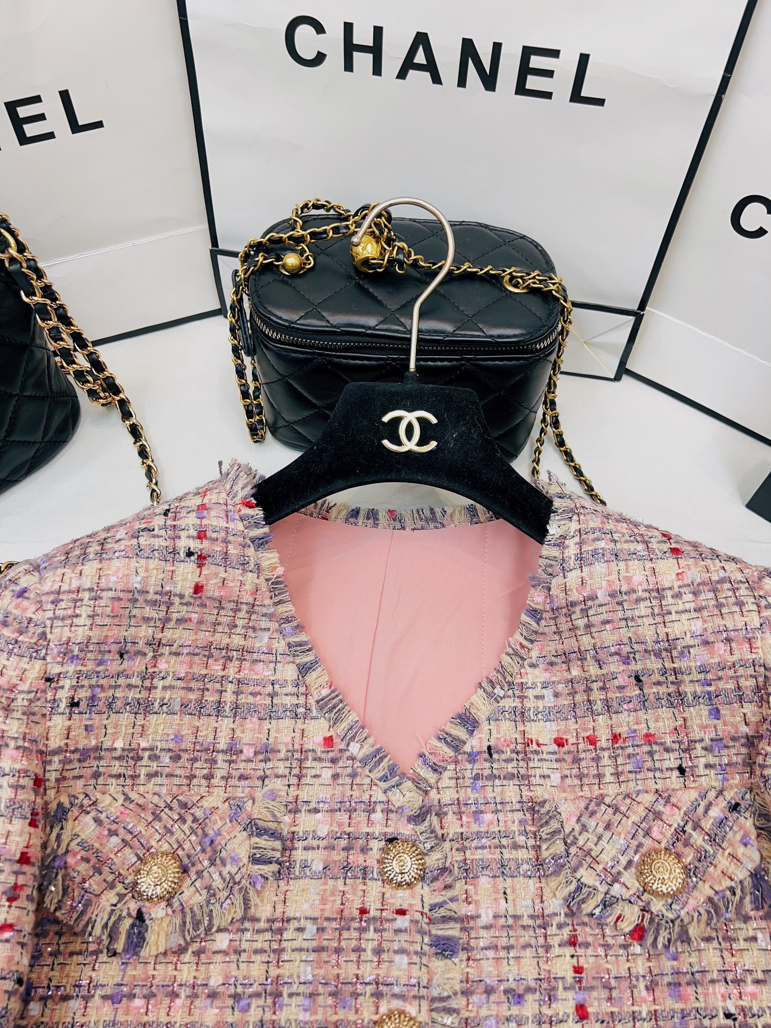 这款衣服是AAAAA 1:1 质量 (非常棒). 使用了和原版一模一样的材料. 商标部分也保持了和香奈儿/Chanel一样. 图片拍摄是实物衣服拍摄, 您所收到的实物保证和我们图片一模一样.