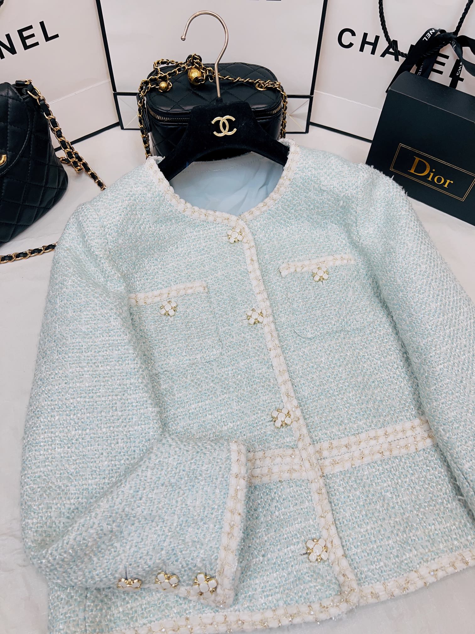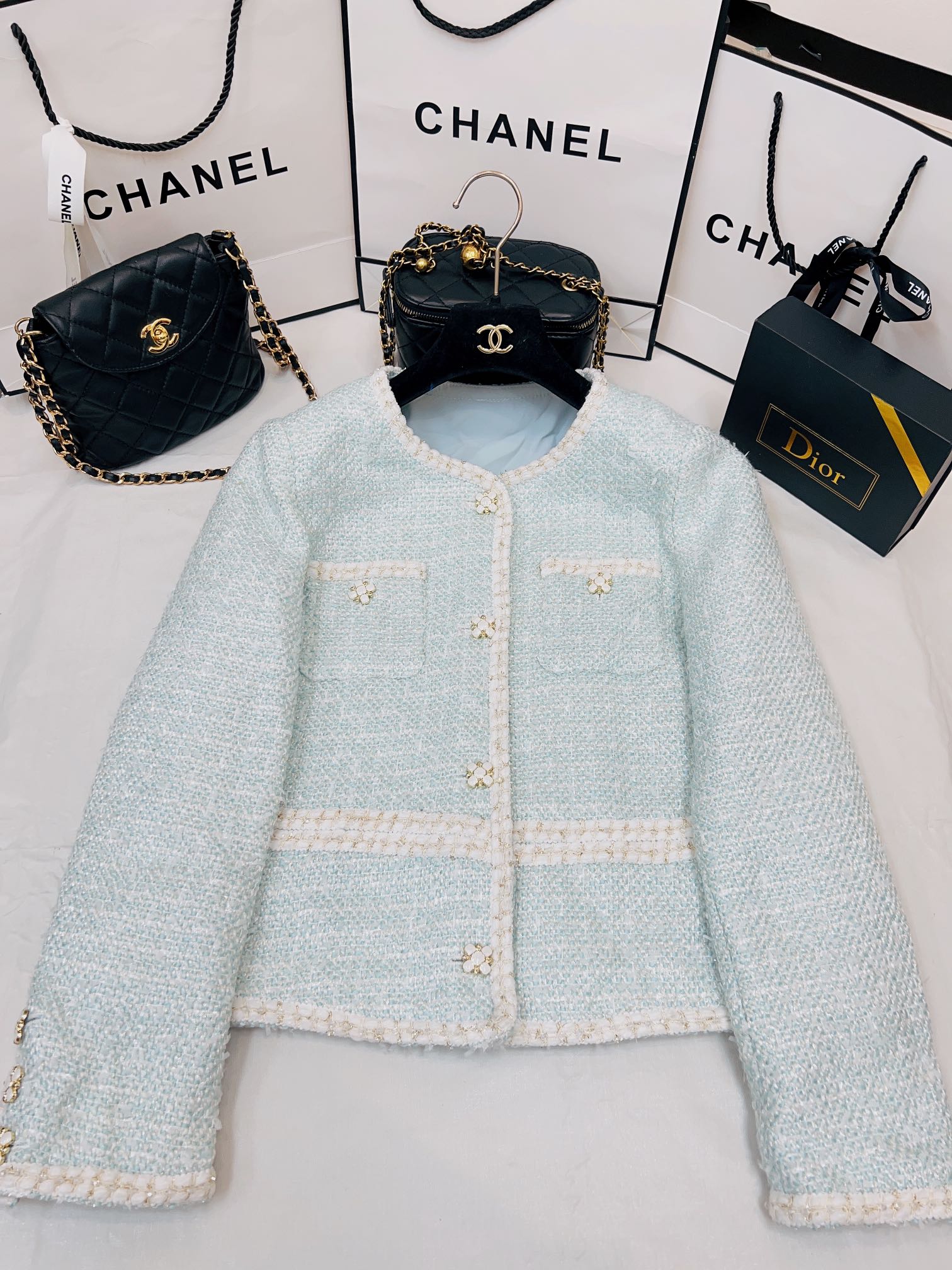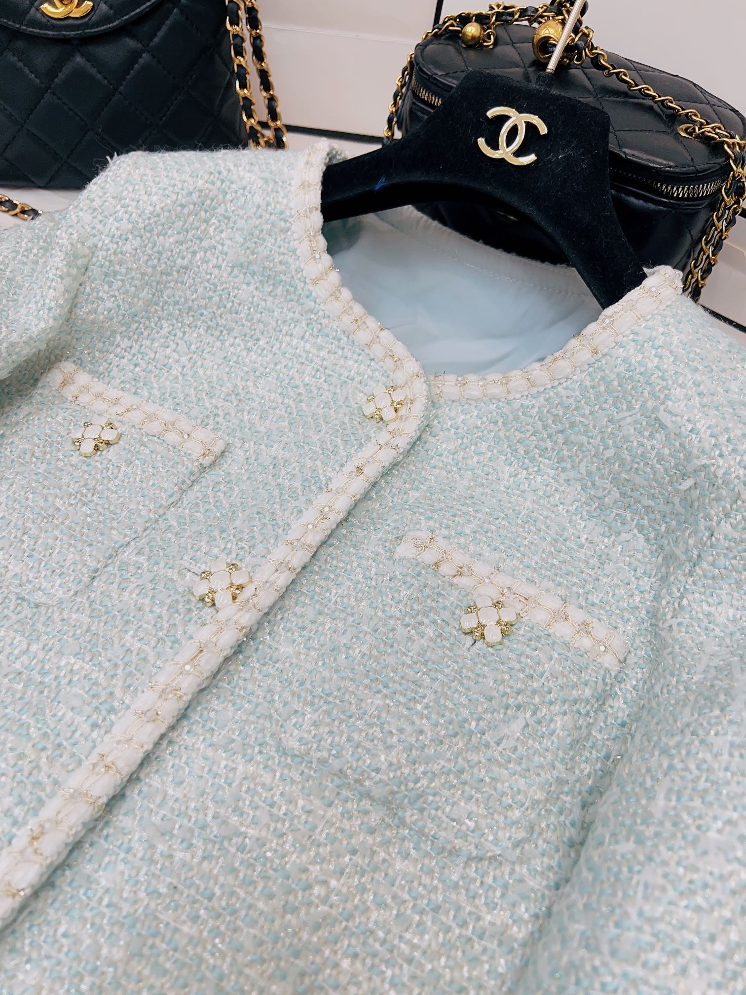 这款衣服是AAAAA 1:1 质量 (非常棒). 使用了和原版一模一样的材料. 商标部分也保持了和香奈儿/Chanel一样. 图片拍摄是实物衣服拍摄, 您所收到的实物保证和我们图片一模一样.