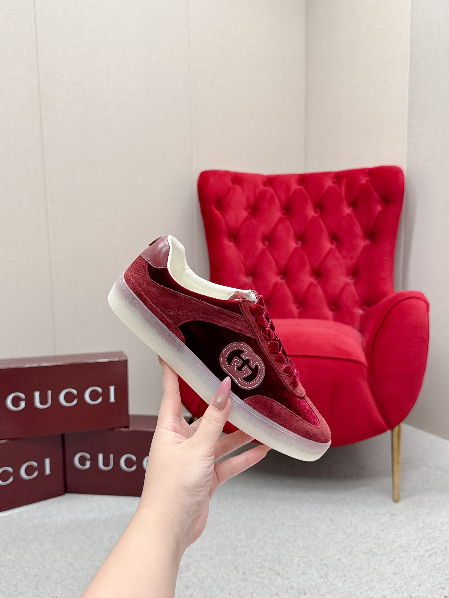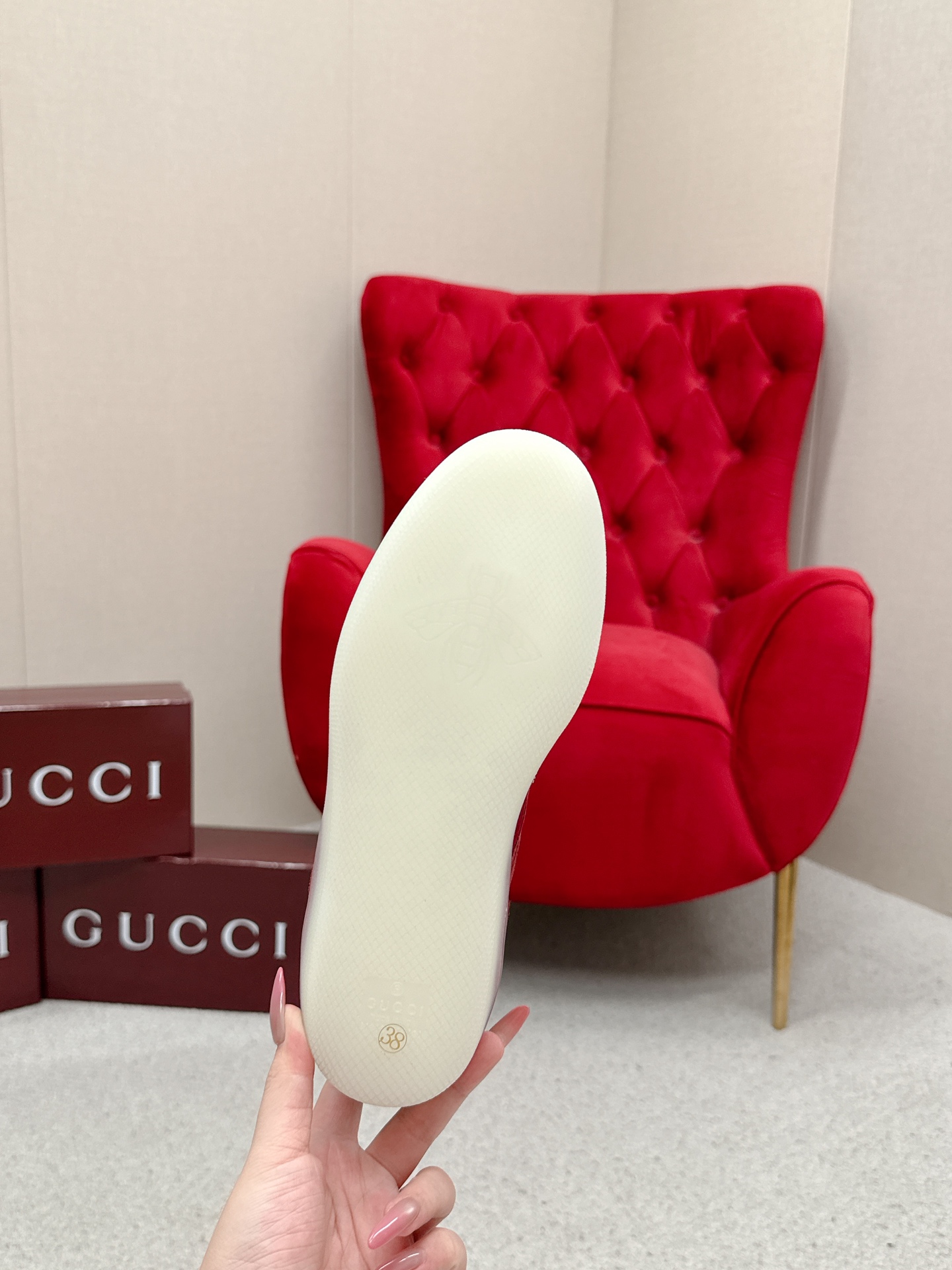 这款鞋子是AAAAA 1:1 质量 (非常棒). 使用了和原版一模一样的材料. 商标部分也保持了和古奇/Gucci一样. 图片拍摄是实物鞋子拍摄, 您所收到的实物保证和我们图片一模一样.