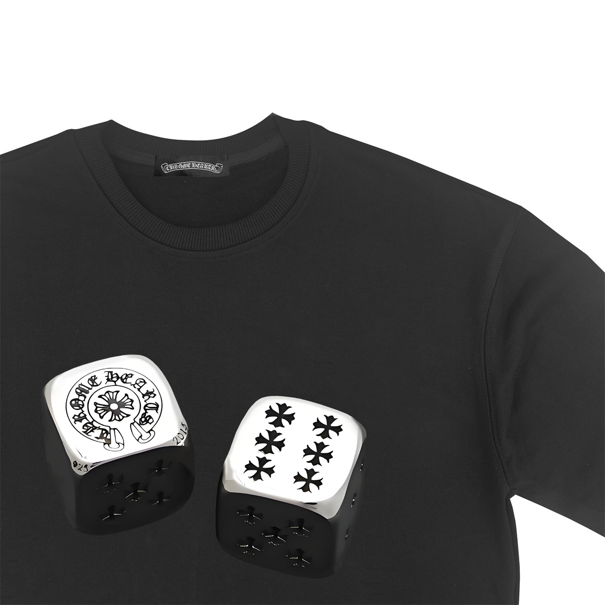 这款衣服是AAAAA 1:1 质量 (非常棒). 使用了和原版一模一样的材料. 商标部分也保持了和克罗心/Chrome Hearts一样. 图片拍摄是实物衣服拍摄, 您所收到的实物保证和我们图片一模一样.