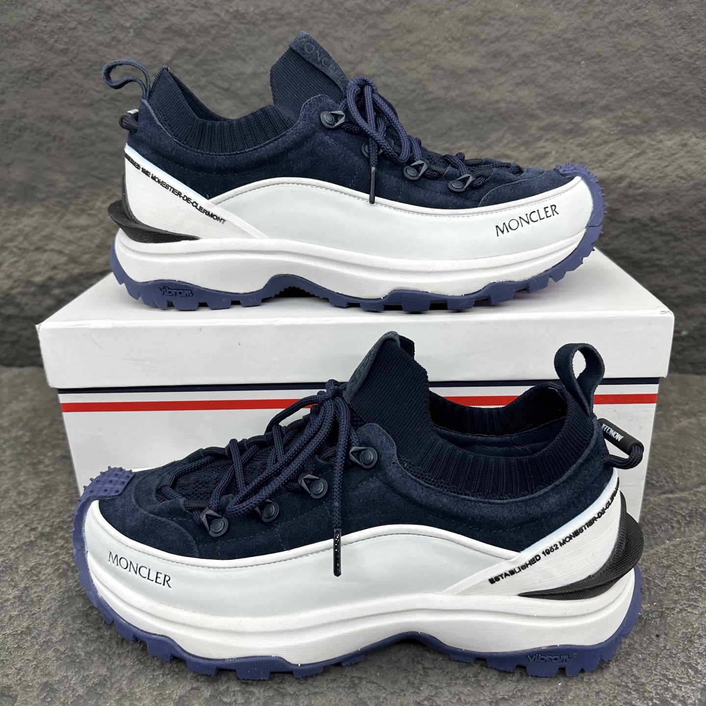 这款鞋子是AAAAA 1:1 质量 (非常棒). 使用了和原版一模一样的材料. 商标部分也保持了和盟可睐/moncler一样. 图片拍摄是实物鞋子拍摄, 您所收到的实物保证和我们图片一模一样.