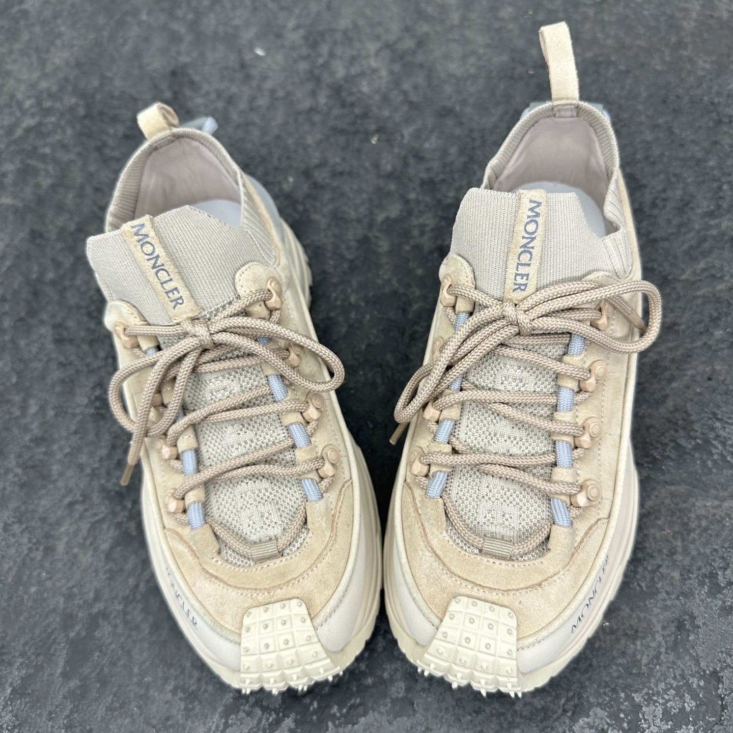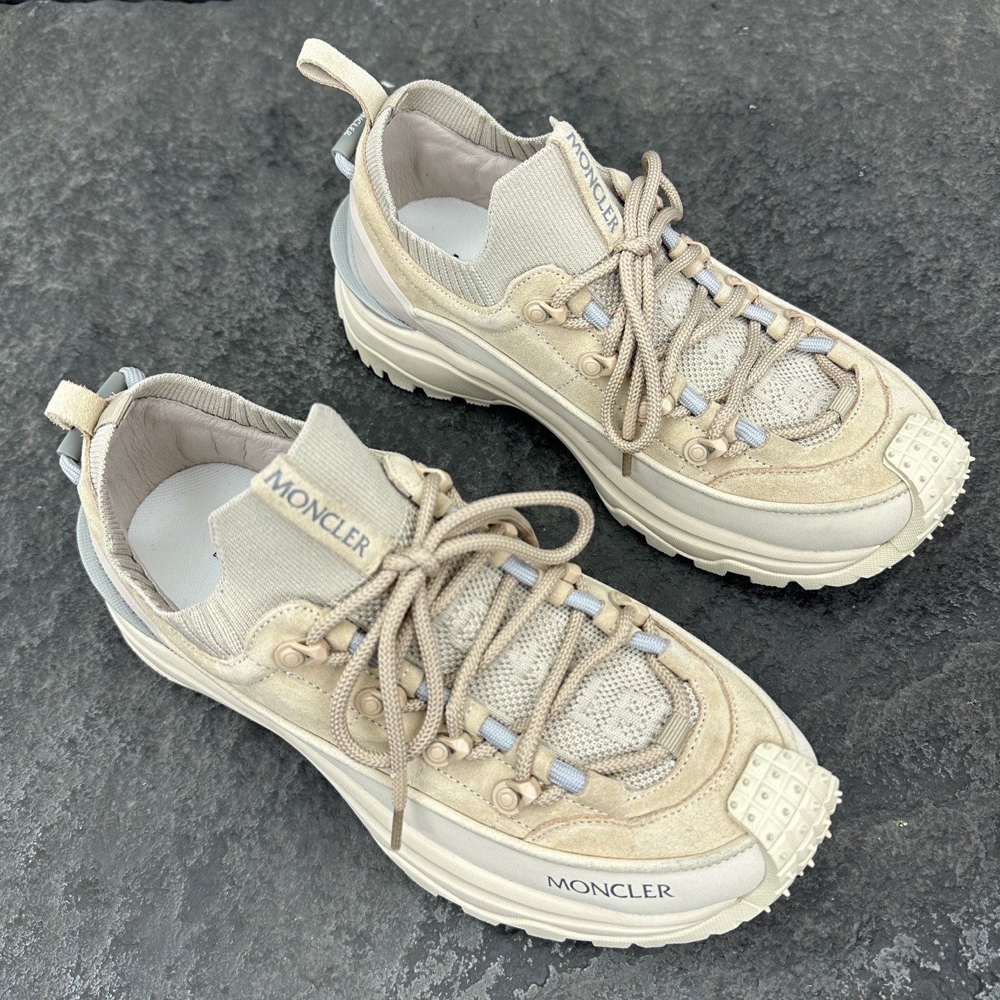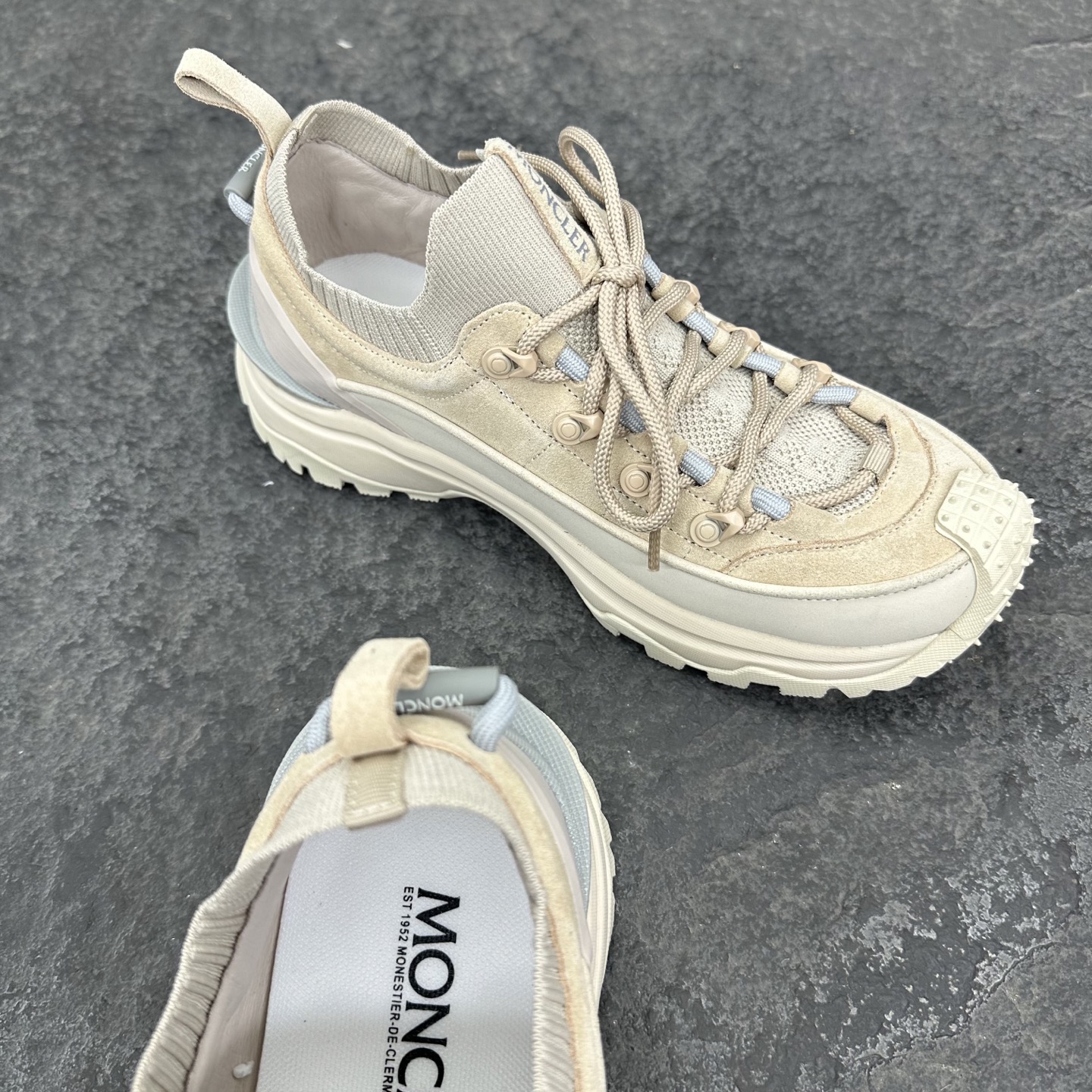 这款鞋子是AAAAA 1:1 质量 (非常棒). 使用了和原版一模一样的材料. 商标部分也保持了和盟可睐/moncler一样. 图片拍摄是实物鞋子拍摄, 您所收到的实物保证和我们图片一模一样.