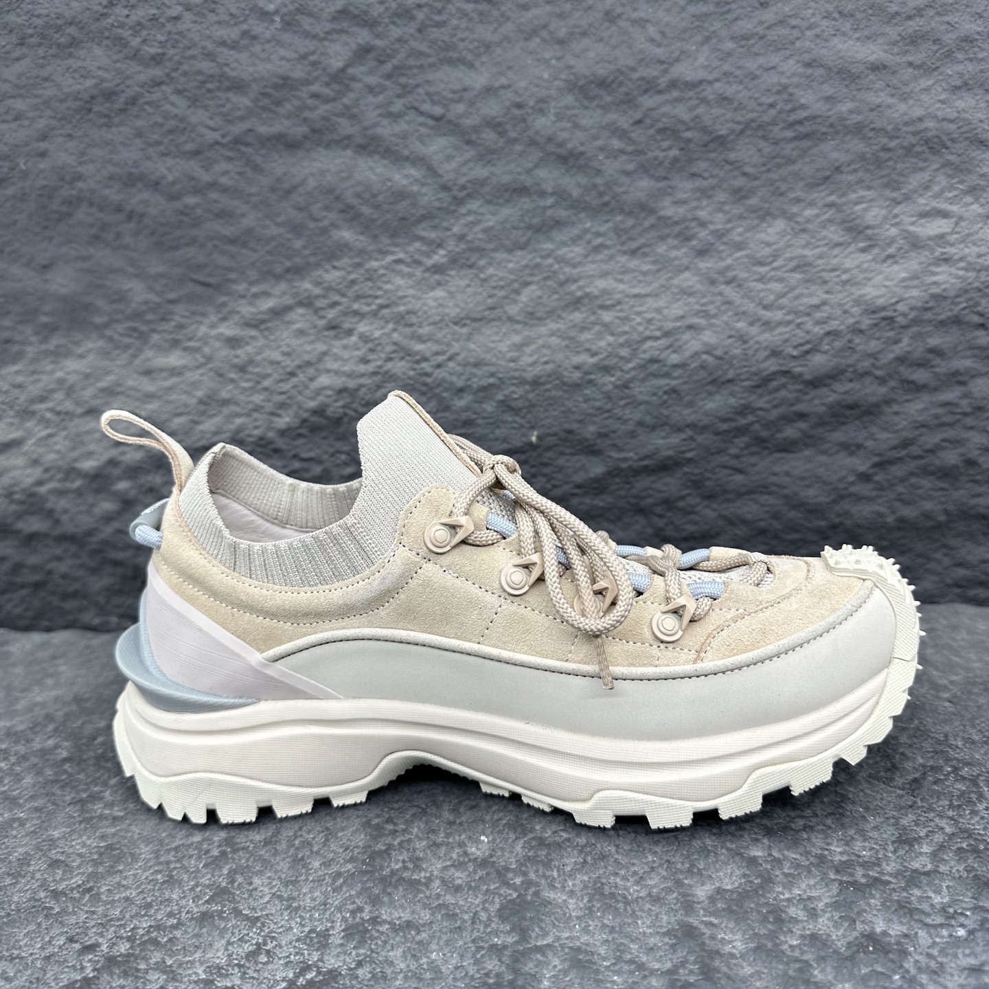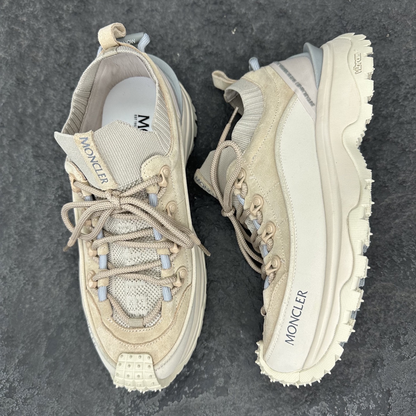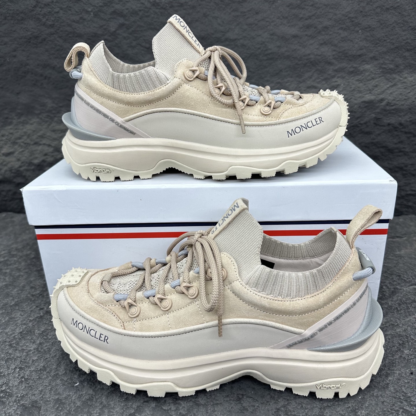 这款鞋子是AAAAA 1:1 质量 (非常棒). 使用了和原版一模一样的材料. 商标部分也保持了和盟可睐/moncler一样. 图片拍摄是实物鞋子拍摄, 您所收到的实物保证和我们图片一模一样.