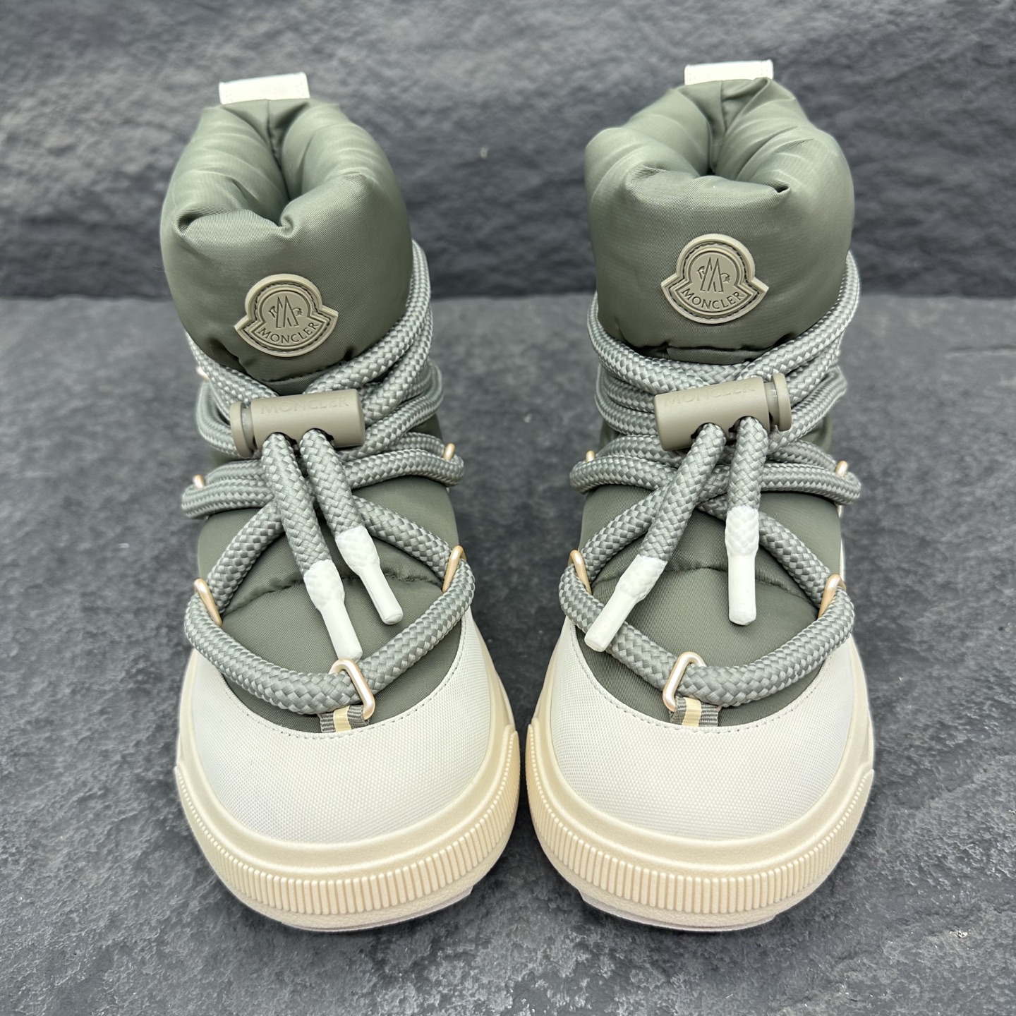 这款鞋子是AAAAA 1:1 质量 (非常棒). 使用了和原版一模一样的材料. 商标部分也保持了和盟可睐/moncler一样. 图片拍摄是实物鞋子拍摄, 您所收到的实物保证和我们图片一模一样.