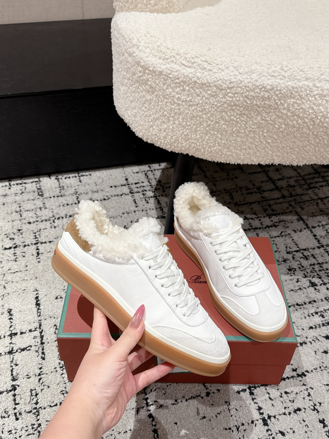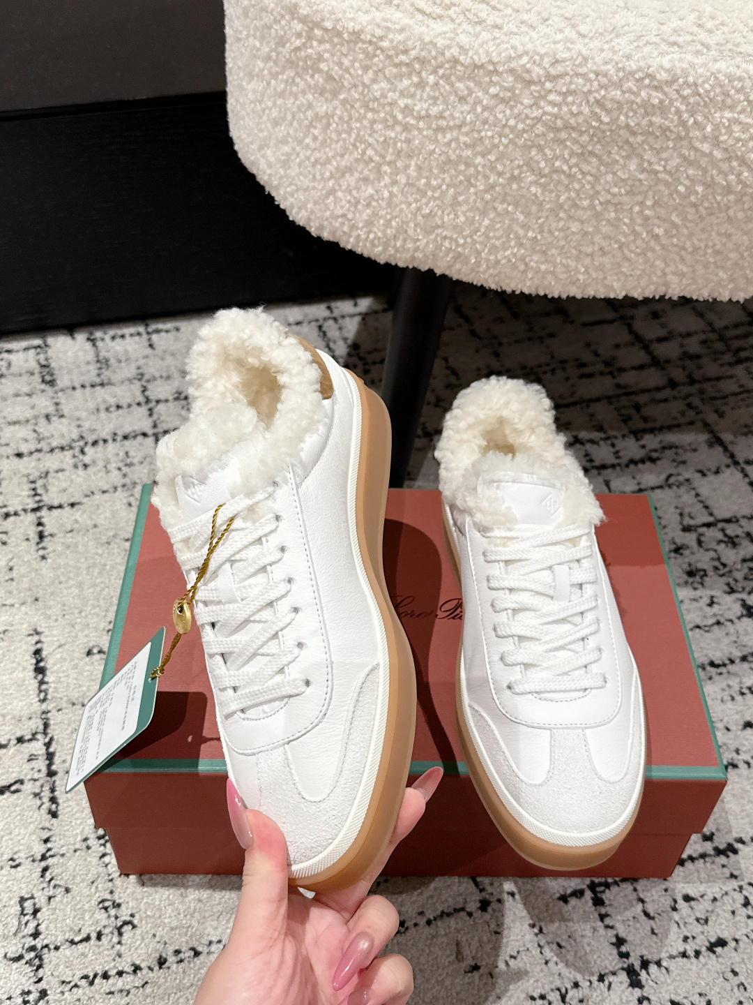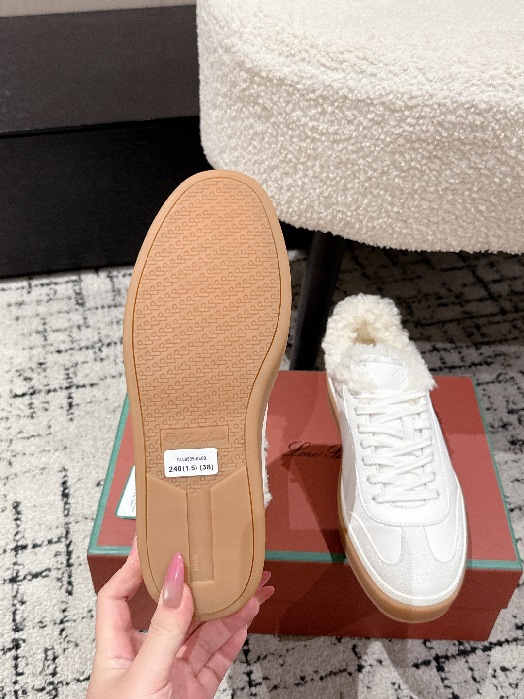 这款鞋子是AAAAA 1:1 质量 (非常棒). 使用了和原版一模一样的材料. 商标部分也保持了和洛罗皮亚纳/Loro Piana一样. 图片拍摄是实物鞋子拍摄, 您所收到的实物保证和我们图片一模一样.