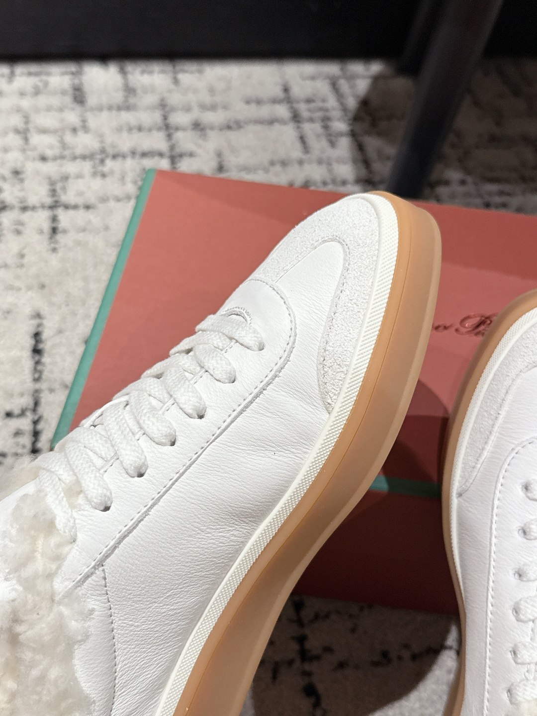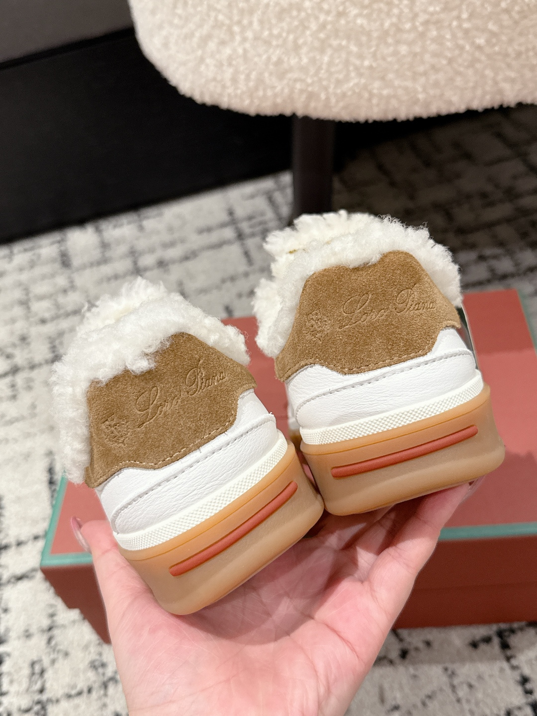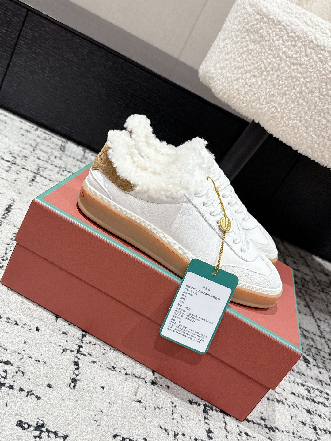 这款鞋子是AAAAA 1:1 质量 (非常棒). 使用了和原版一模一样的材料. 商标部分也保持了和洛罗皮亚纳/Loro Piana一样. 图片拍摄是实物鞋子拍摄, 您所收到的实物保证和我们图片一模一样.