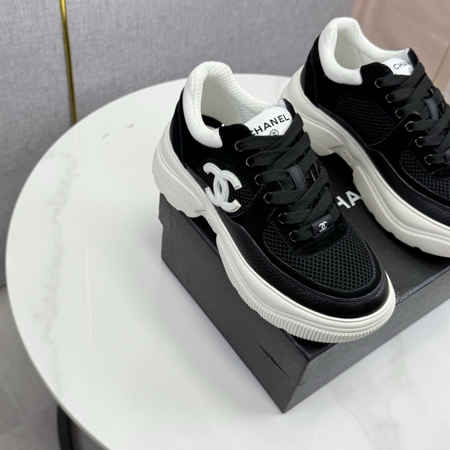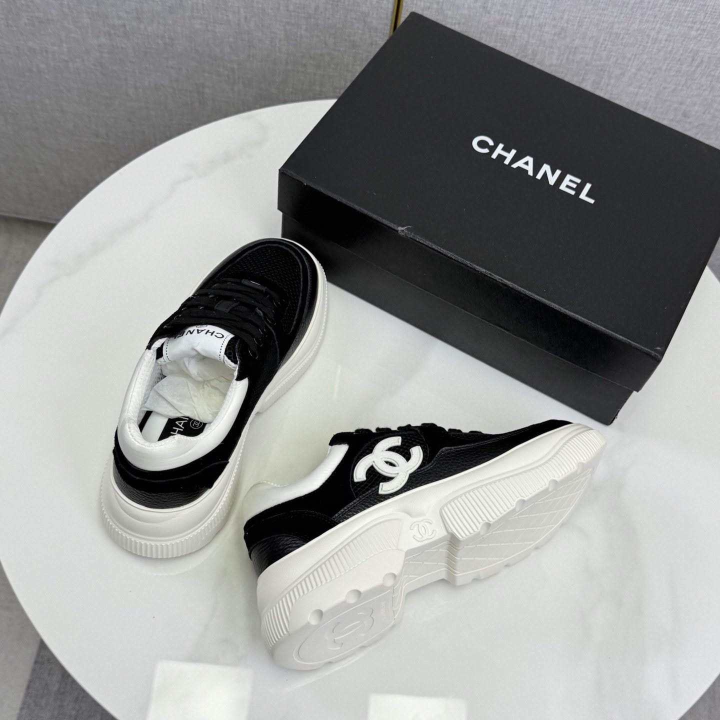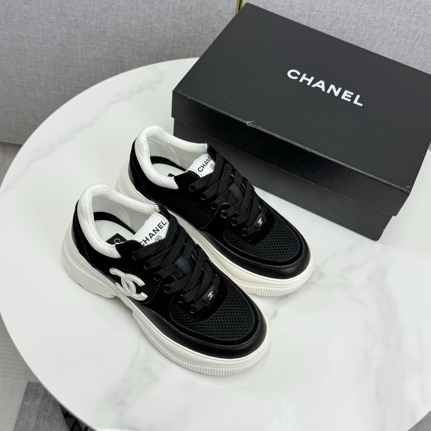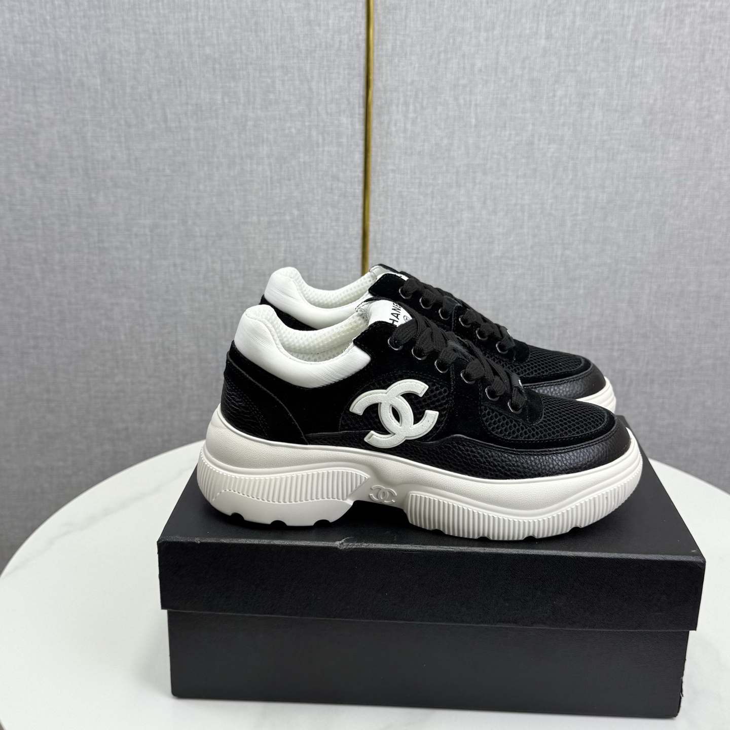 这款鞋子是AAAAA 1:1 质量 (非常棒). 使用了和原版一模一样的材料. 商标部分也保持了和香奈儿/Chanel一样. 图片拍摄是实物鞋子拍摄, 您所收到的实物保证和我们图片一模一样.