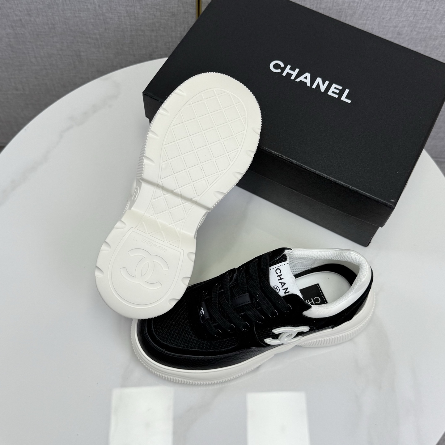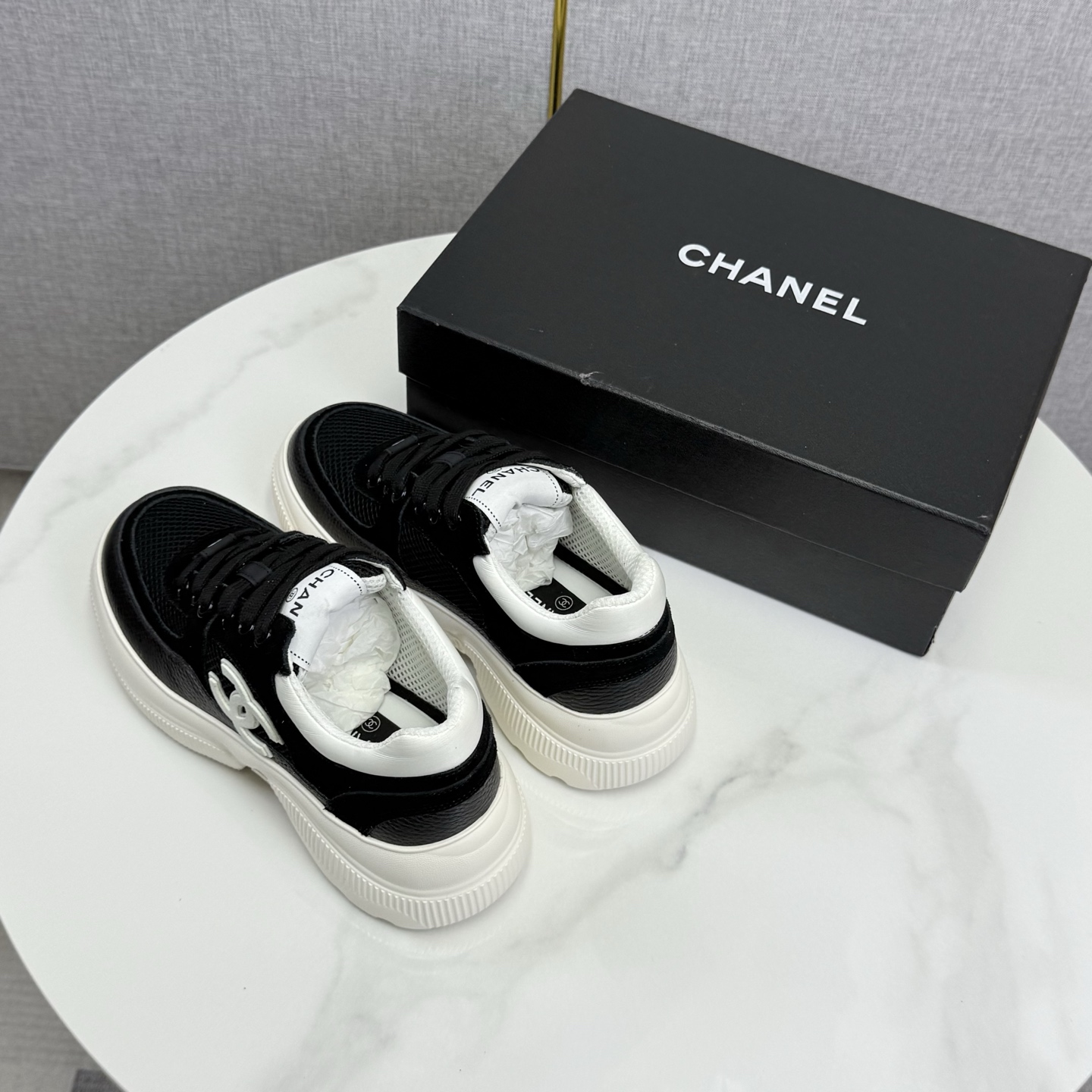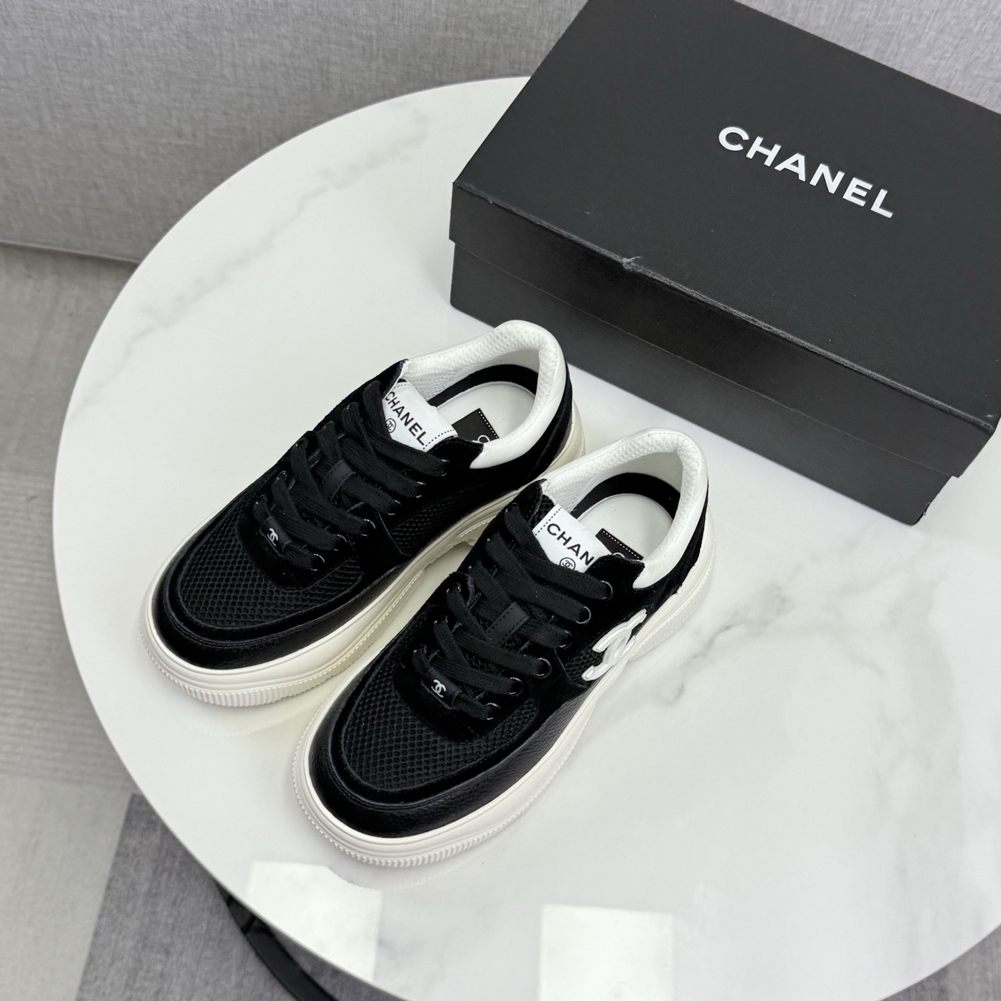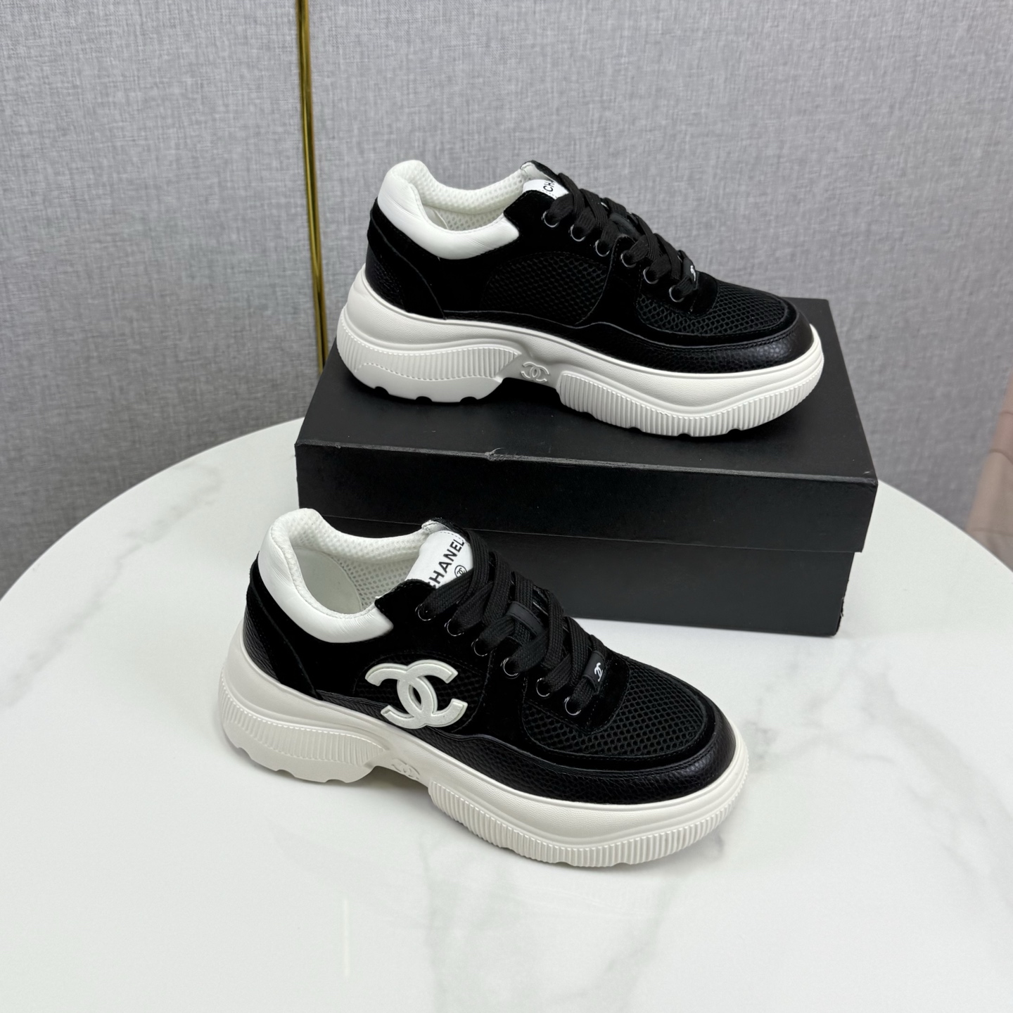 这款鞋子是AAAAA 1:1 质量 (非常棒). 使用了和原版一模一样的材料. 商标部分也保持了和香奈儿/Chanel一样. 图片拍摄是实物鞋子拍摄, 您所收到的实物保证和我们图片一模一样.