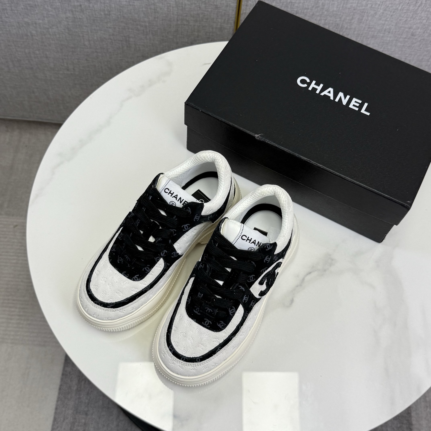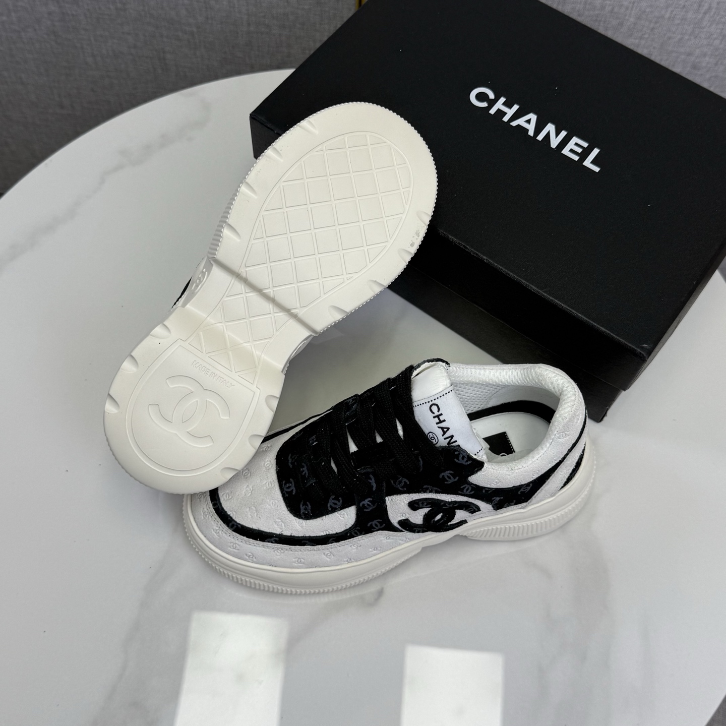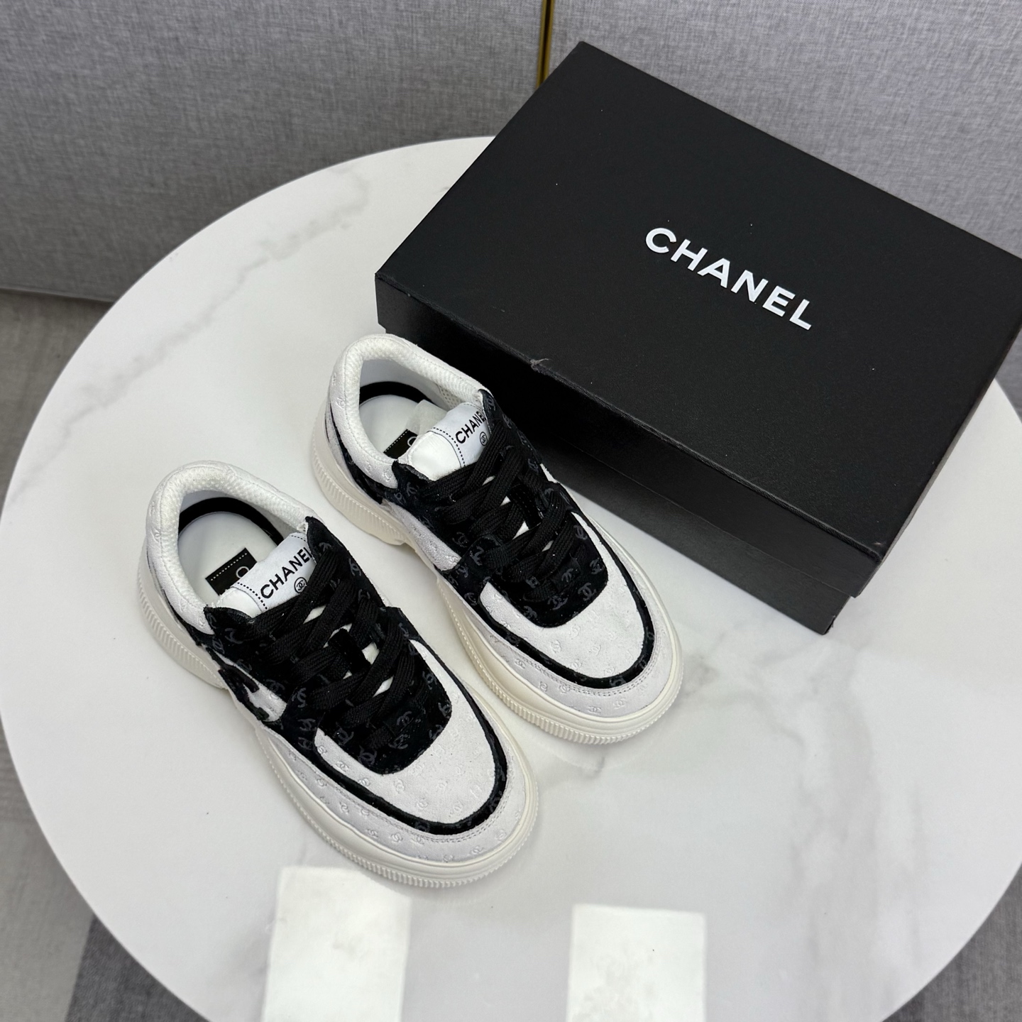 这款鞋子是AAAAA 1:1 质量 (非常棒). 使用了和原版一模一样的材料. 商标部分也保持了和香奈儿/Chanel一样. 图片拍摄是实物鞋子拍摄, 您所收到的实物保证和我们图片一模一样.