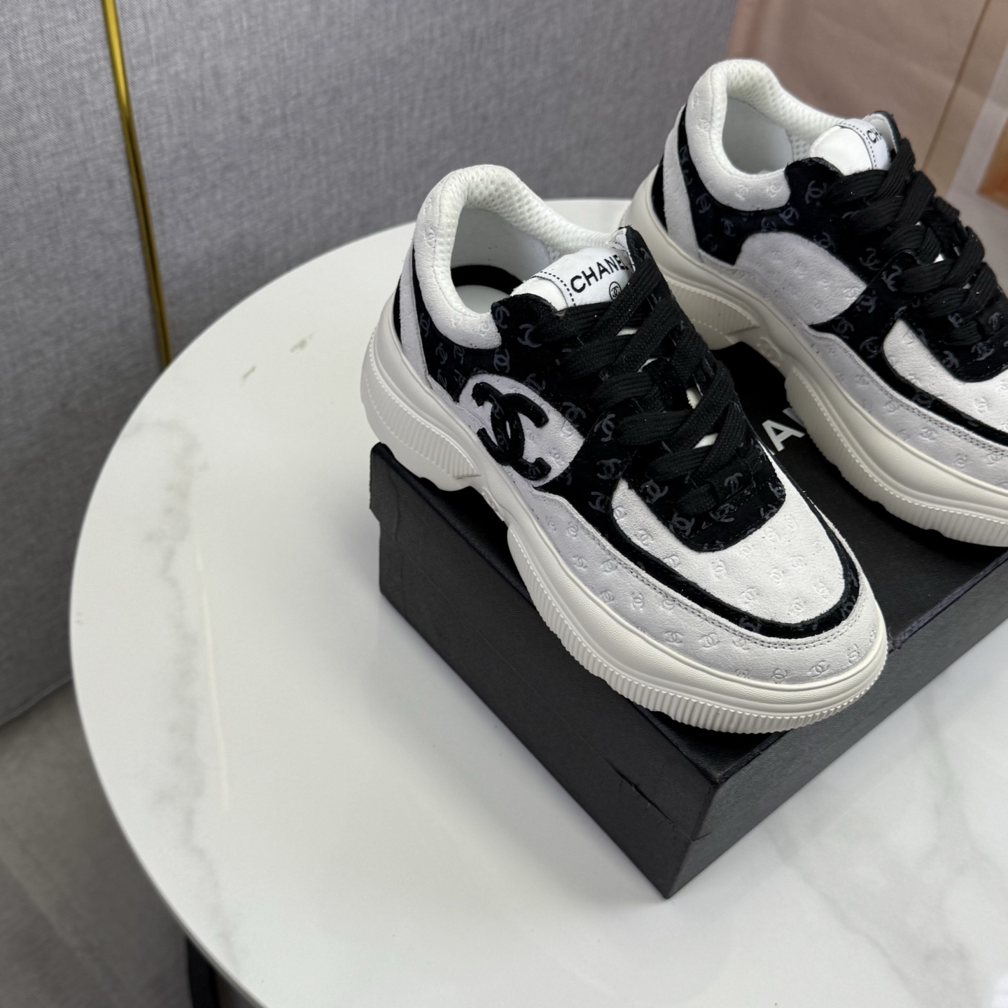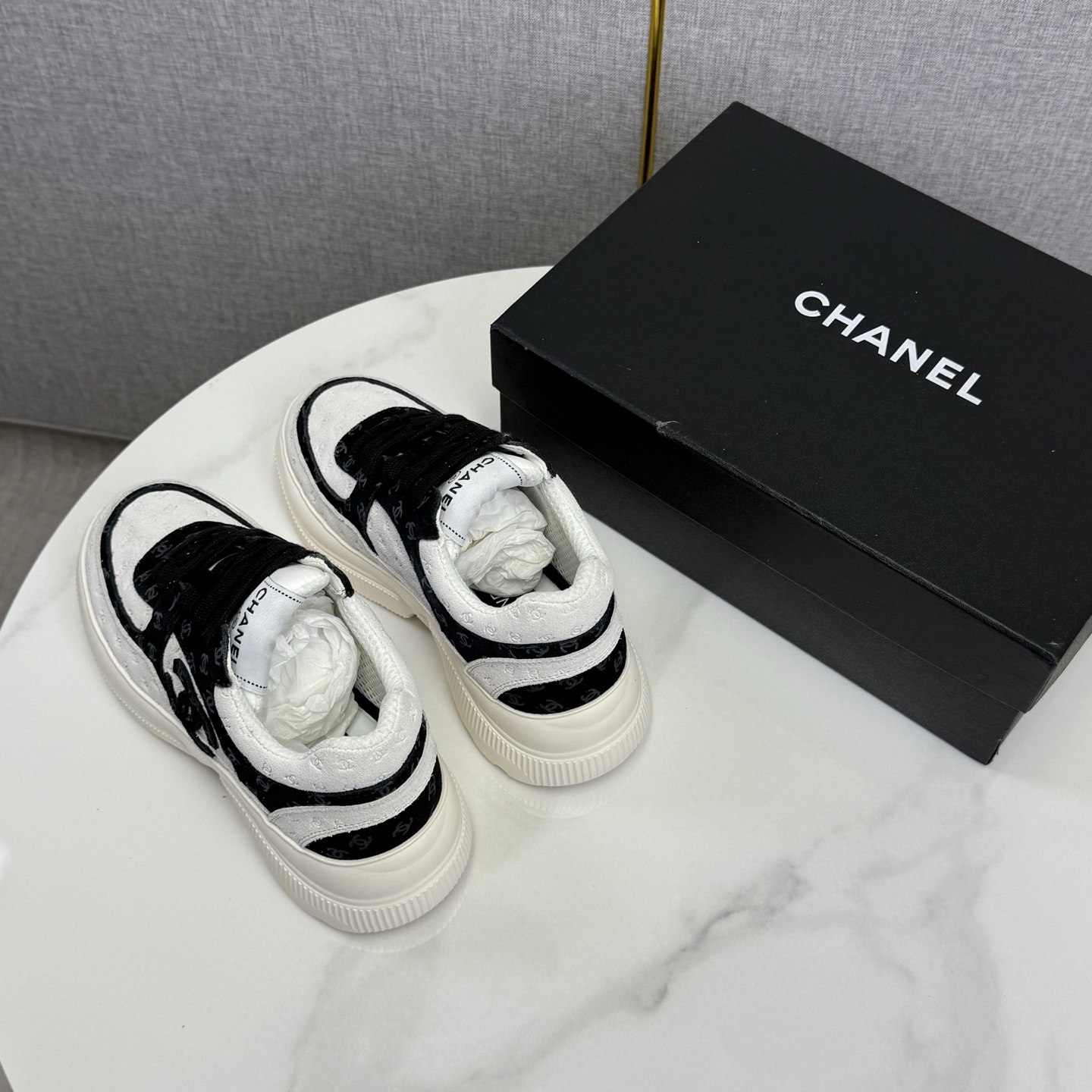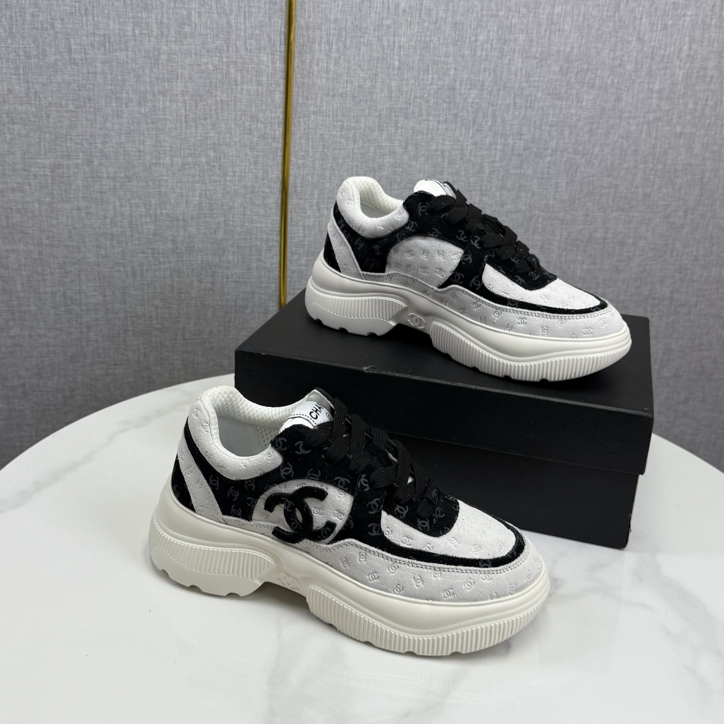这款鞋子是AAAAA 1:1 质量 (非常棒). 使用了和原版一模一样的材料. 商标部分也保持了和香奈儿/Chanel一样. 图片拍摄是实物鞋子拍摄, 您所收到的实物保证和我们图片一模一样.