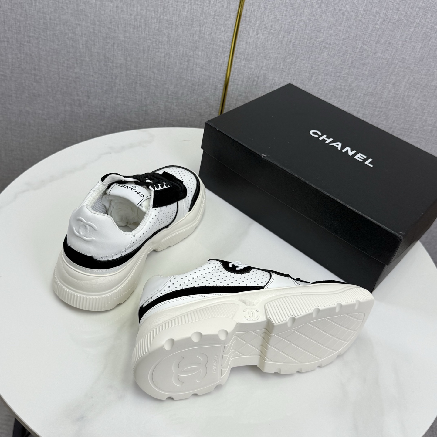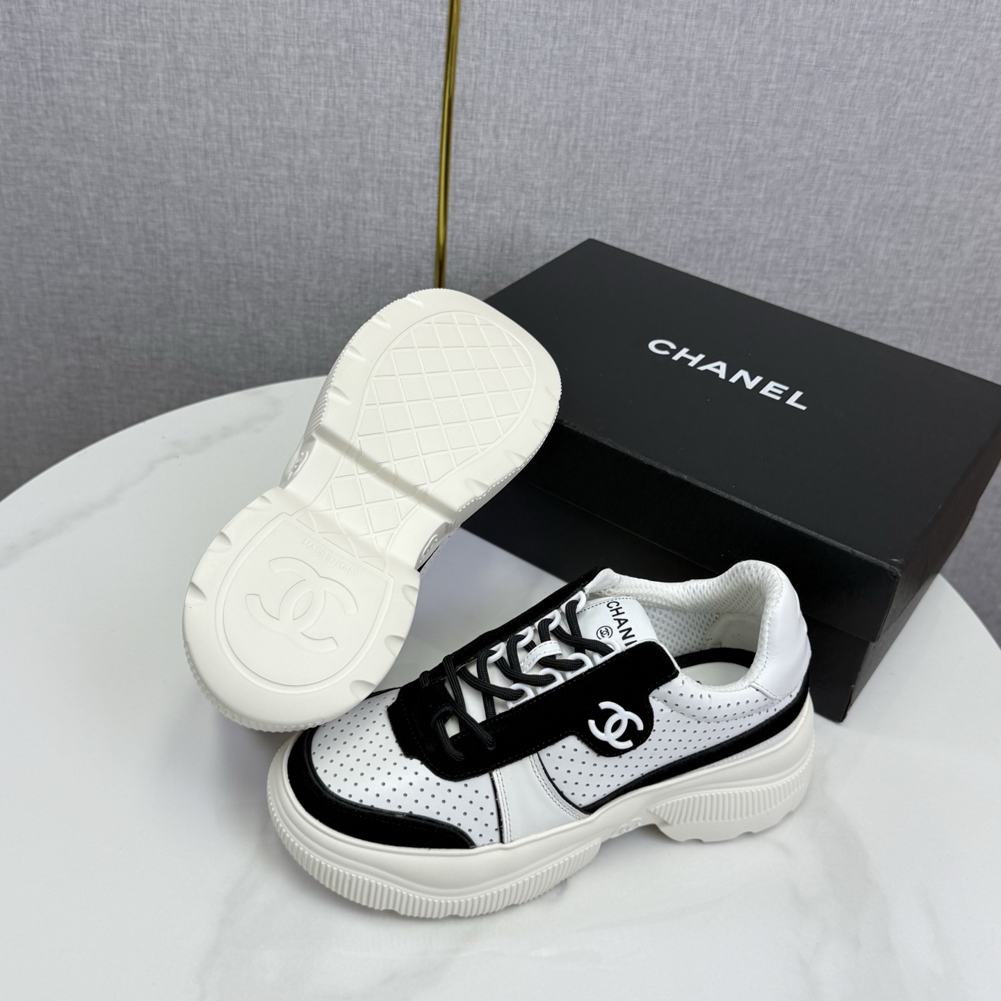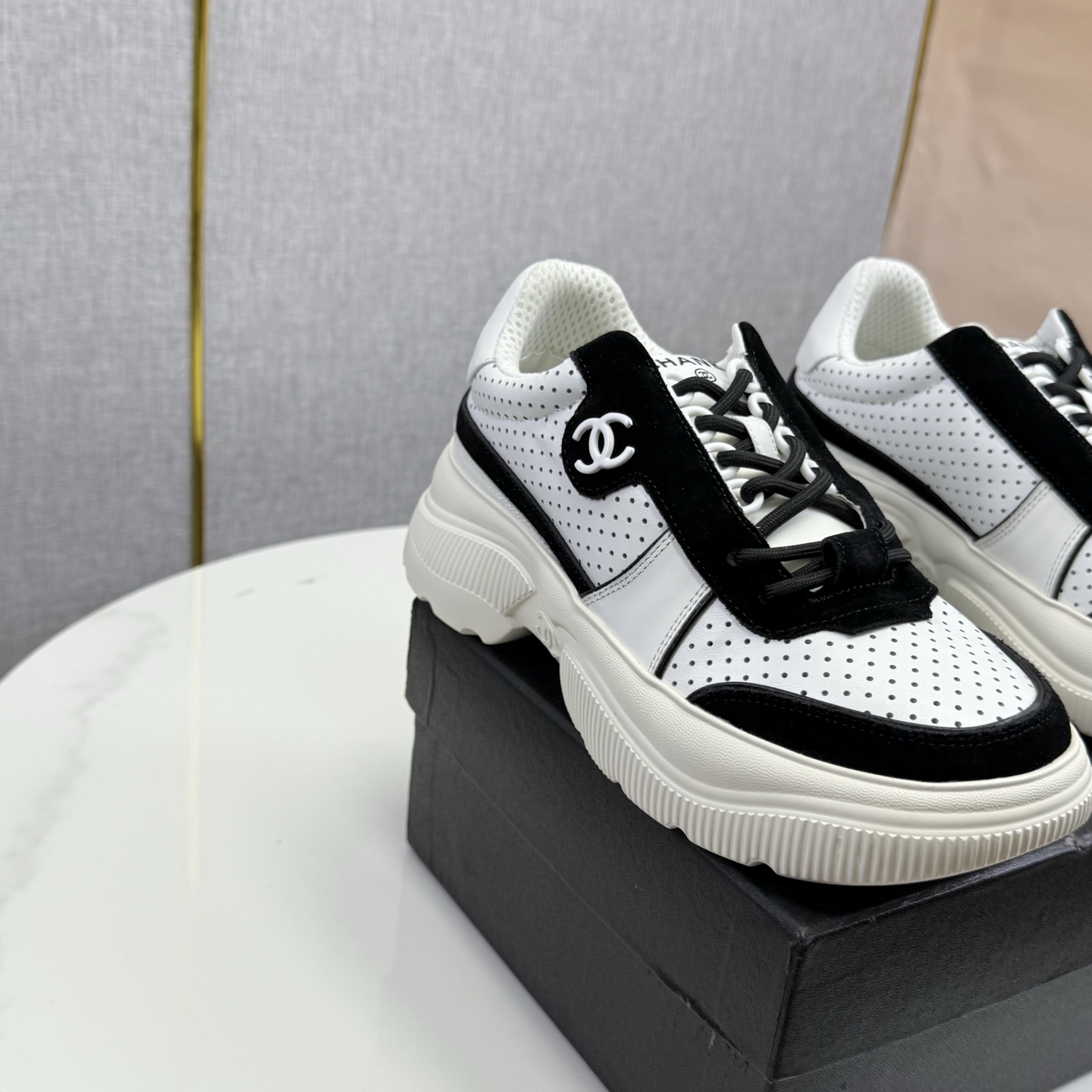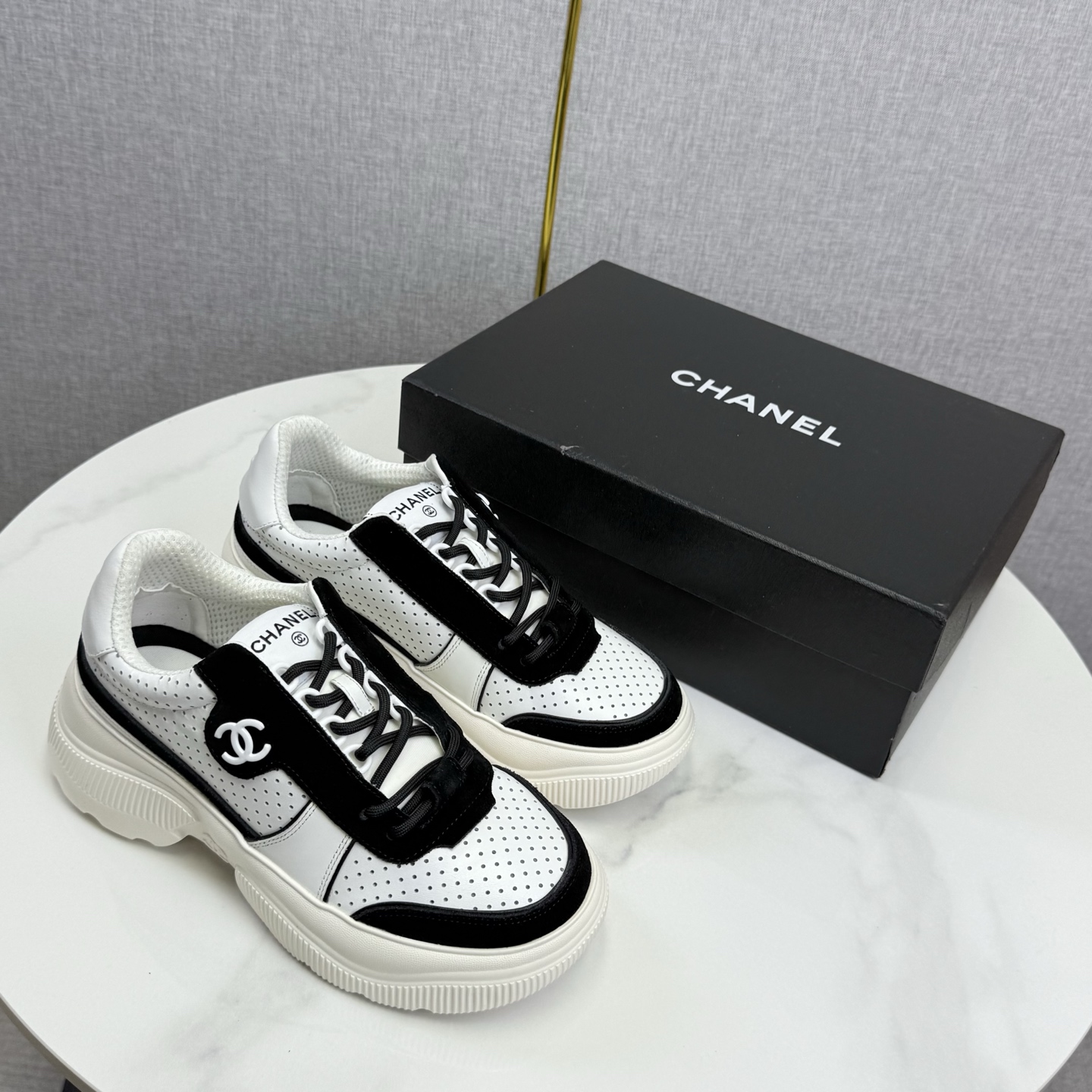这款鞋子是AAAAA 1:1 质量 (非常棒). 使用了和原版一模一样的材料. 商标部分也保持了和香奈儿/Chanel一样. 图片拍摄是实物鞋子拍摄, 您所收到的实物保证和我们图片一模一样.