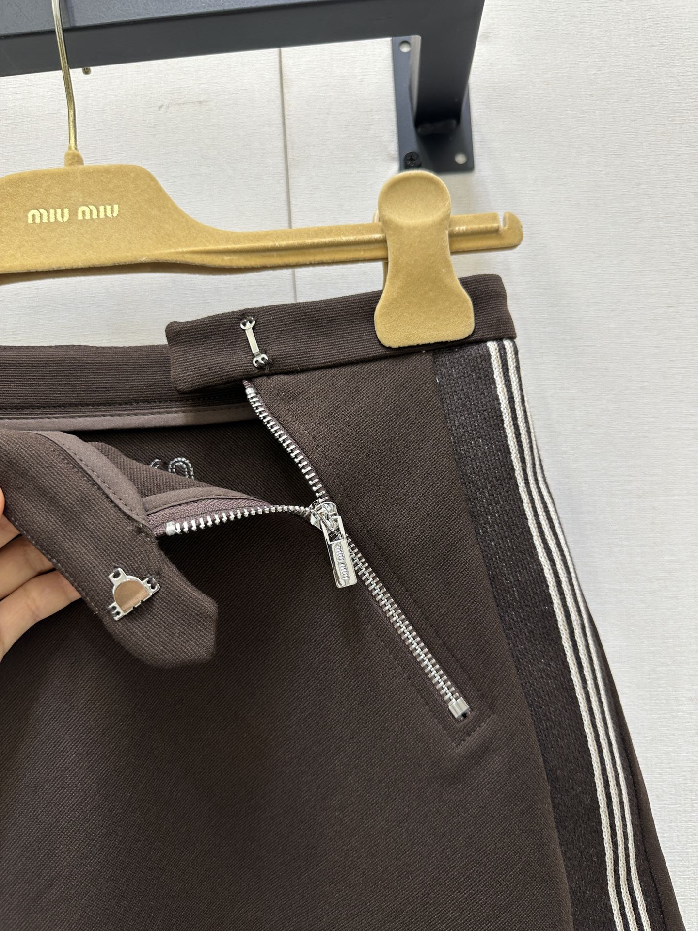 这款衣服是AAAAA 1:1 质量 (非常棒). 使用了和原版一模一样的材料. 商标部分也保持了和缪缪/Miu Miu一样. 图片拍摄是实物衣服拍摄, 您所收到的实物保证和我们图片一模一样.