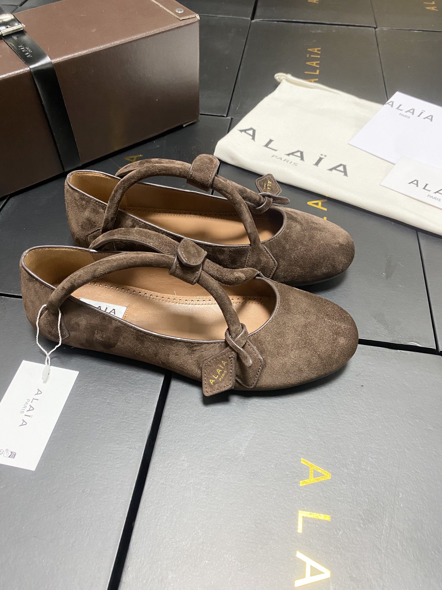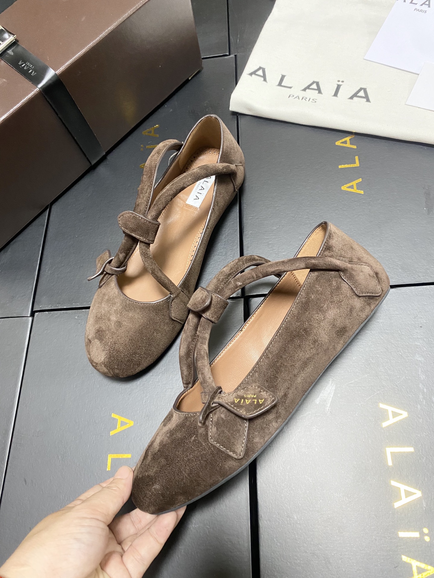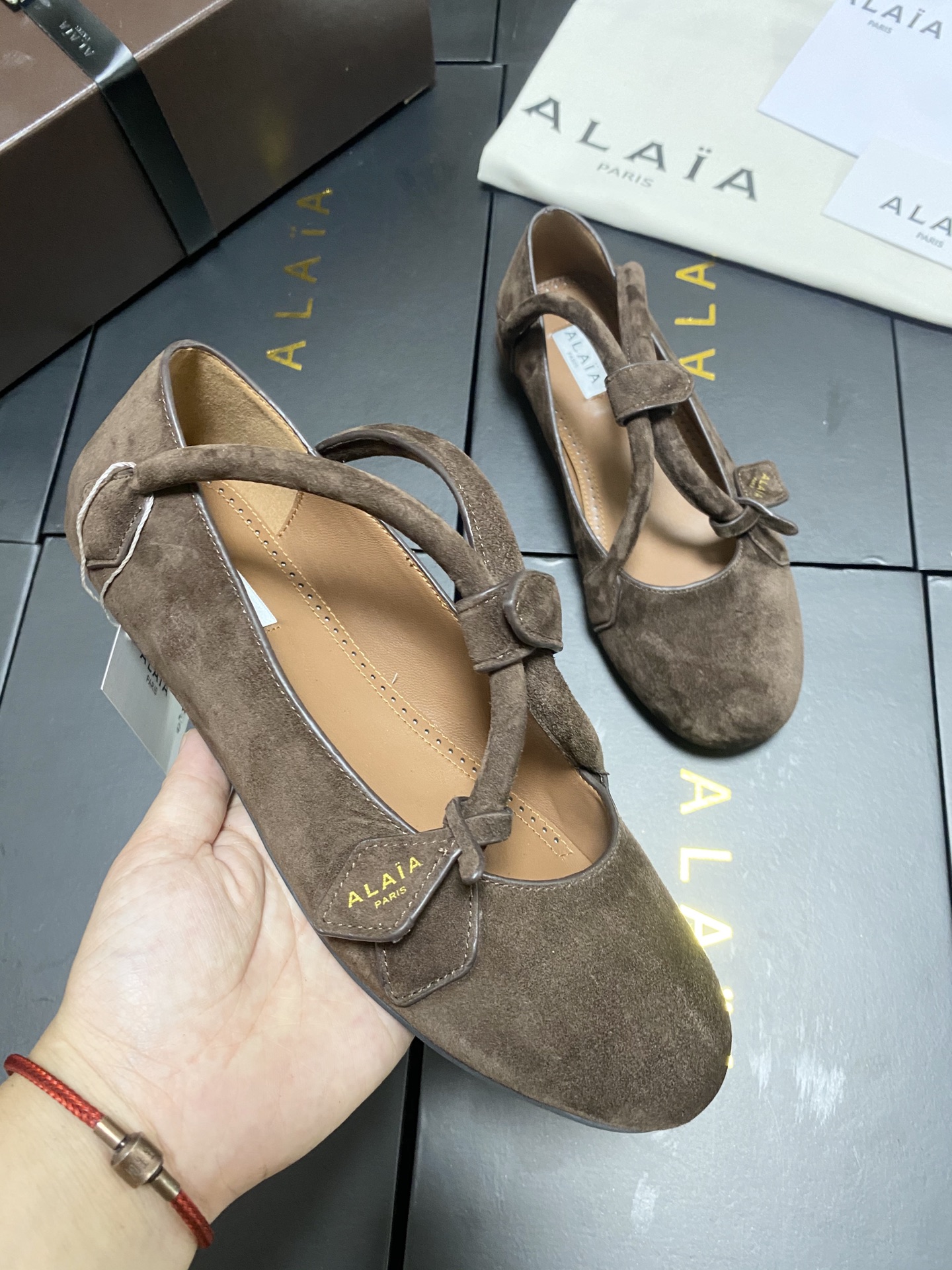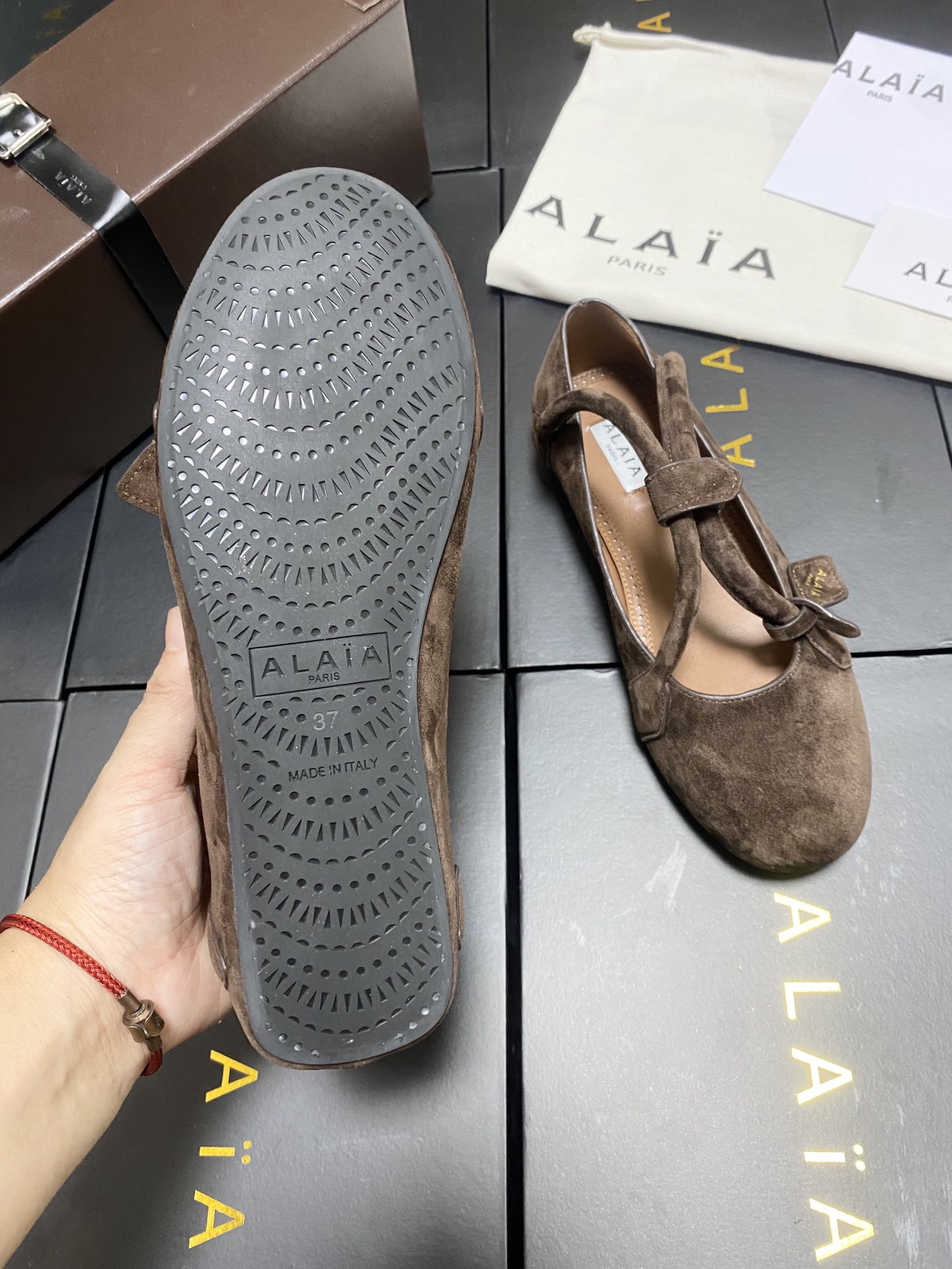 这款鞋子是AAAAA 1:1 质量 (非常棒). 使用了和原版一模一样的材料. 商标部分也保持了和Alaia一样. 图片拍摄是实物鞋子拍摄, 您所收到的实物保证和我们图片一模一样.