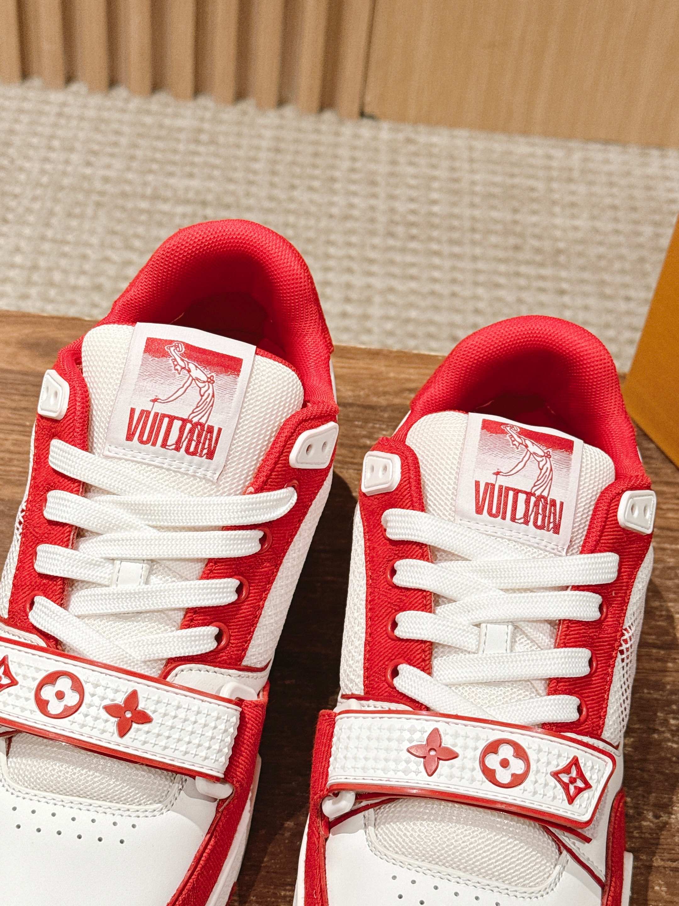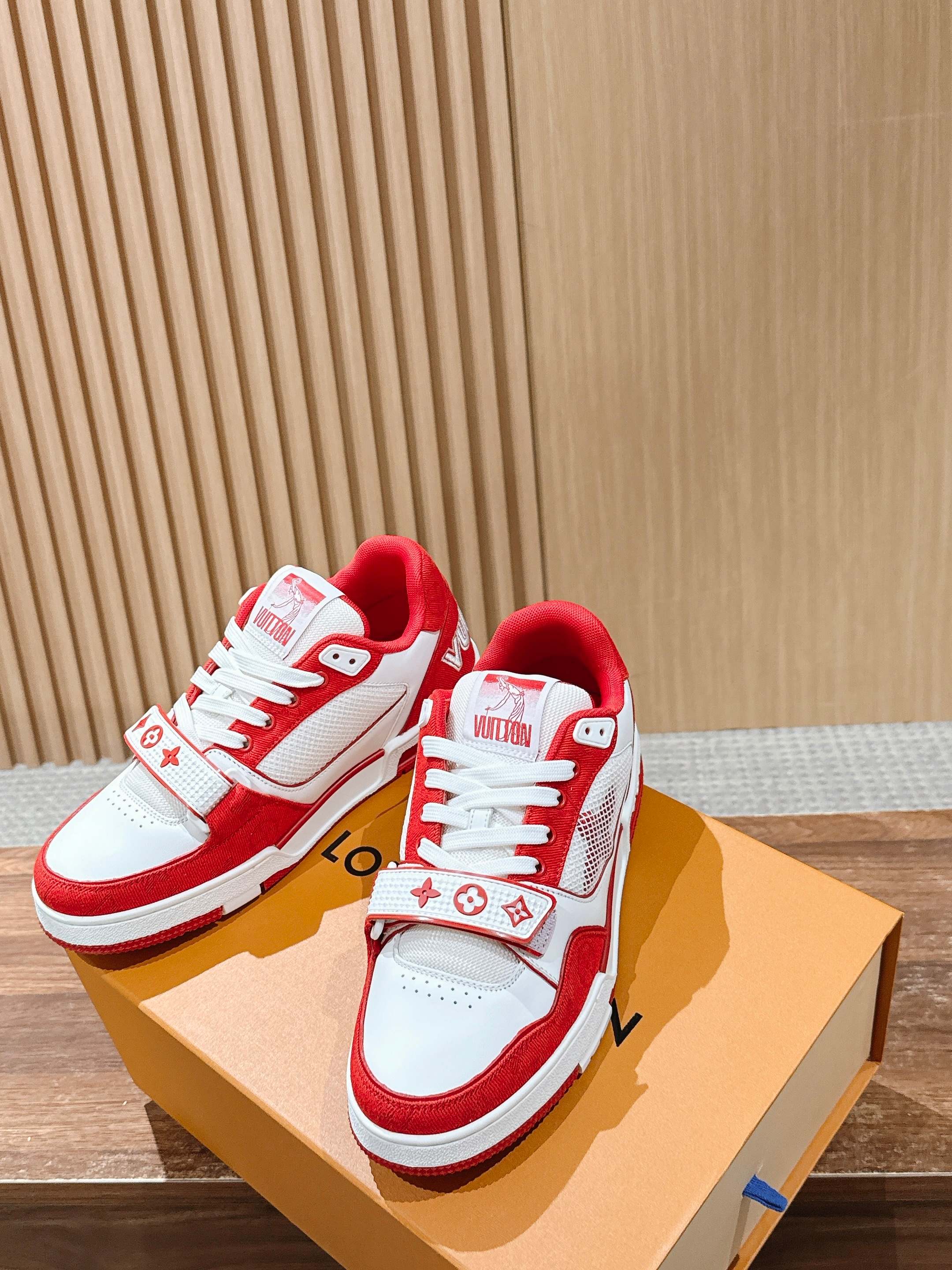 这款鞋子是AAAAA 1:1 质量 (非常棒). 使用了和原版一模一样的材料. 商标部分也保持了和路易威登/Louis Vuitton一样. 图片拍摄是实物鞋子拍摄, 您所收到的实物保证和我们图片一模一样.