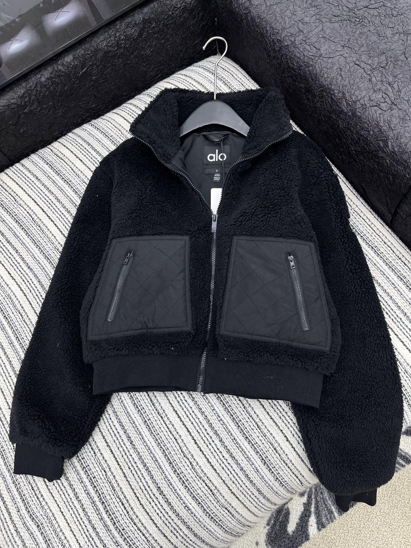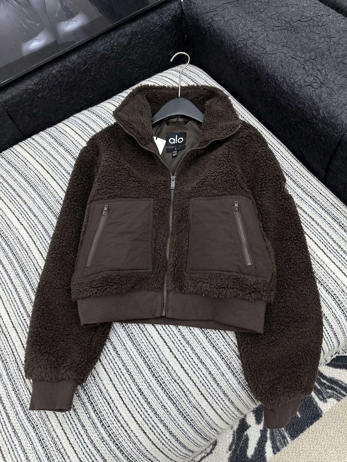 这款衣服是AAAAA 1:1 质量 (非常棒). 使用了和原版一模一样的材料. 商标部分也保持了和Alo Yoga一样. 图片拍摄是实物衣服拍摄, 您所收到的实物保证和我们图片一模一样.