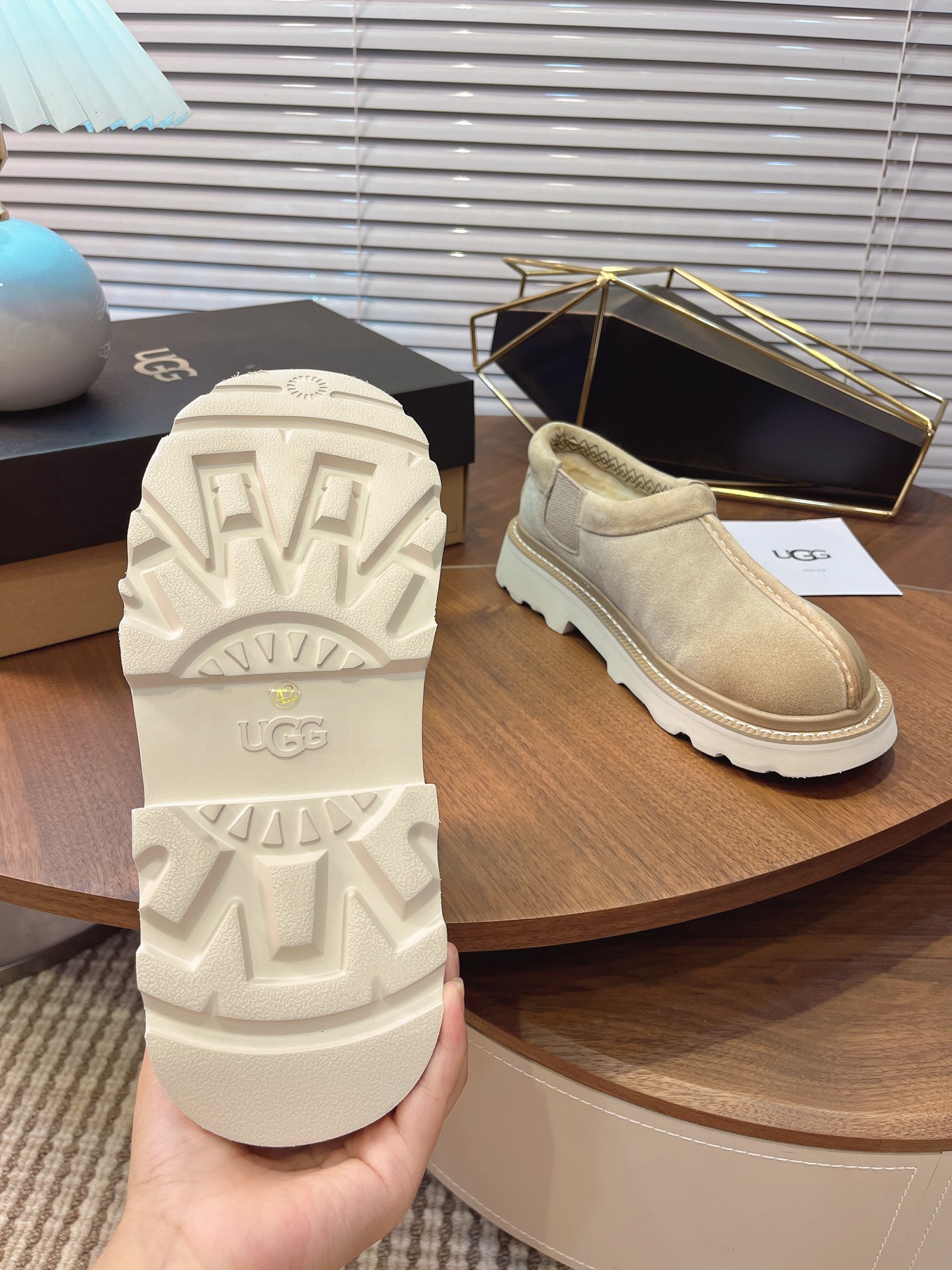这款鞋子是AAAAA 1:1 质量 (非常棒). 使用了和原版一模一样的材料. 商标部分也保持了和UGG雪地靴一样. 图片拍摄是实物鞋子拍摄, 您所收到的实物保证和我们图片一模一样.