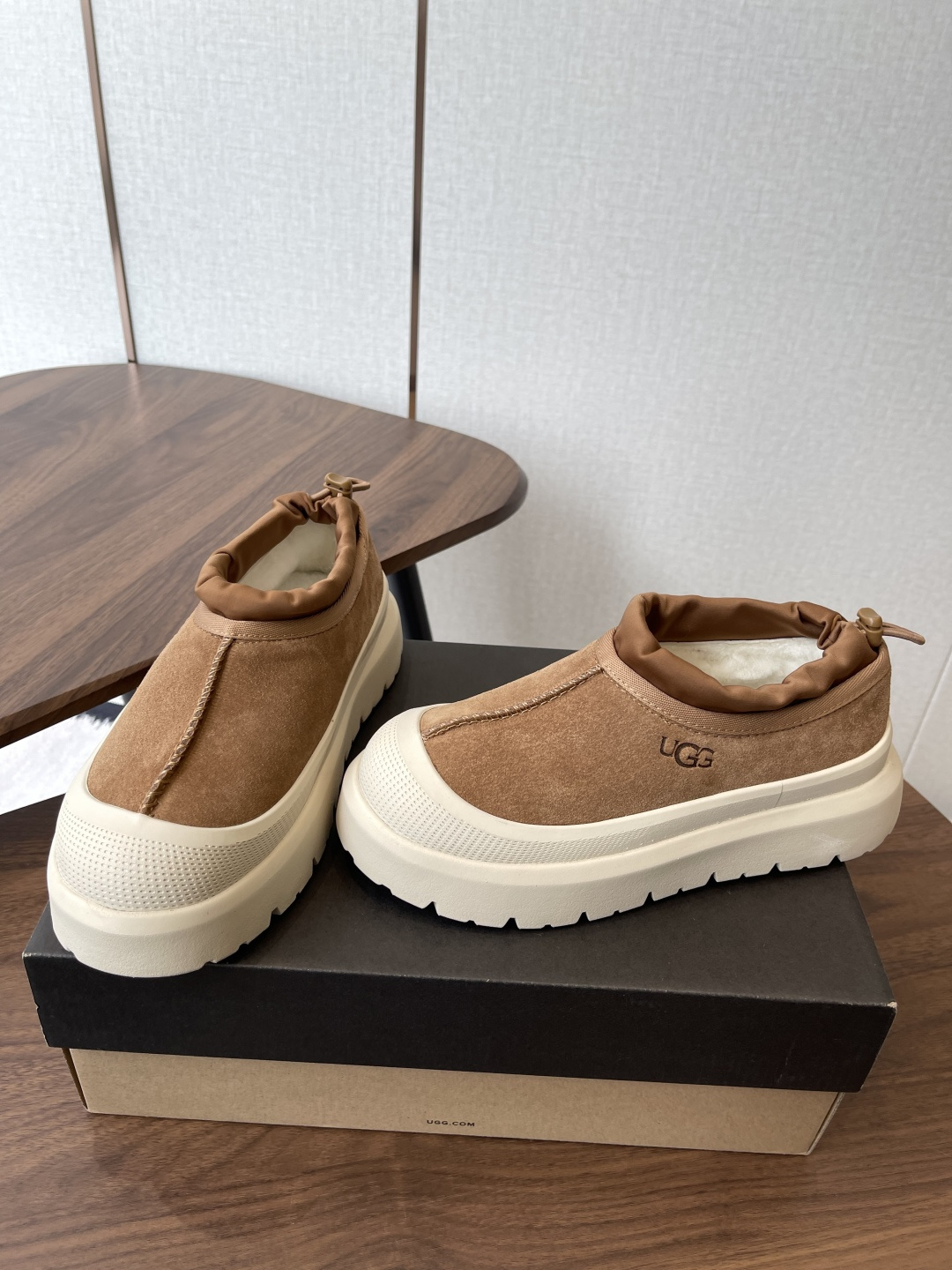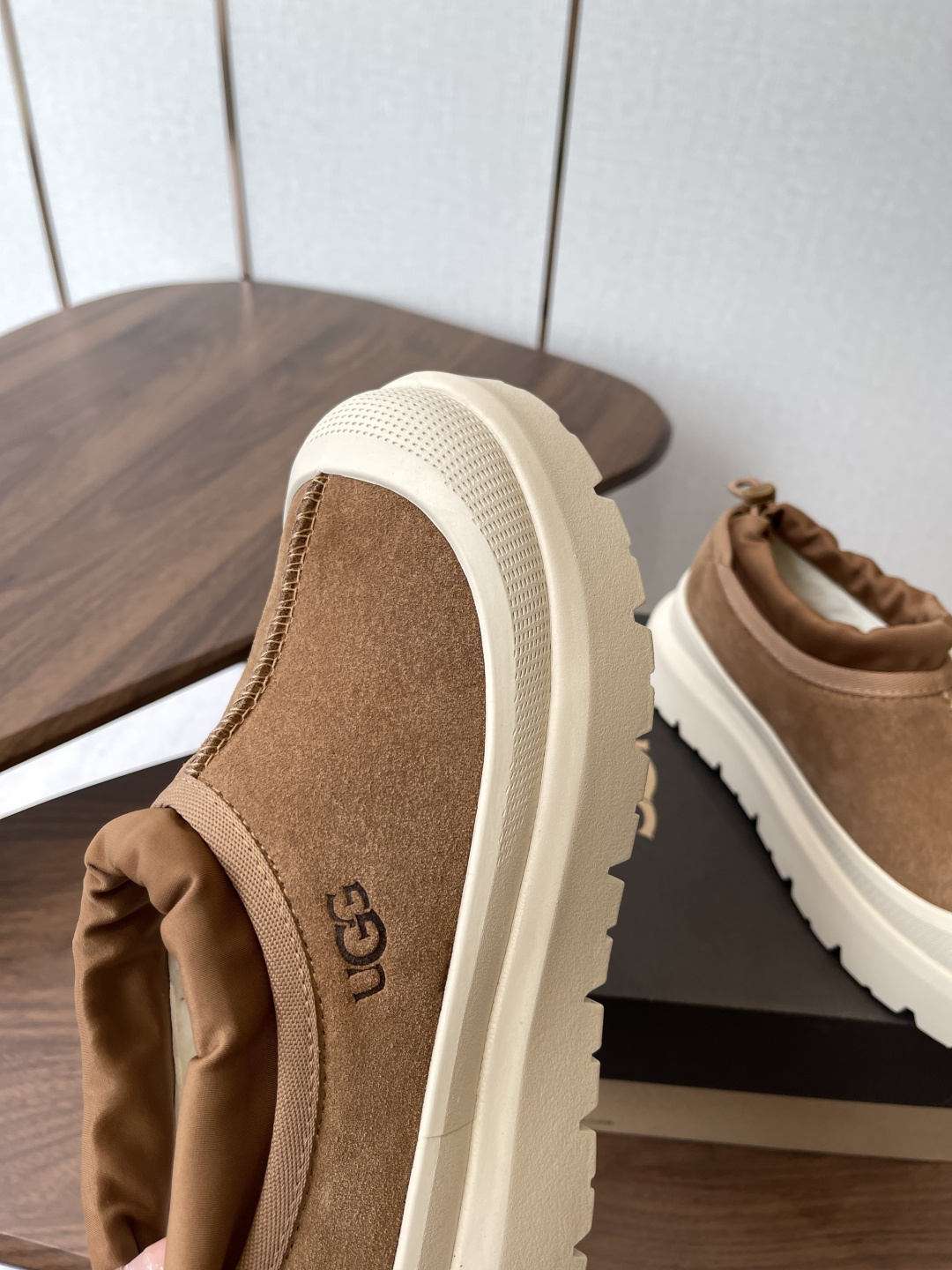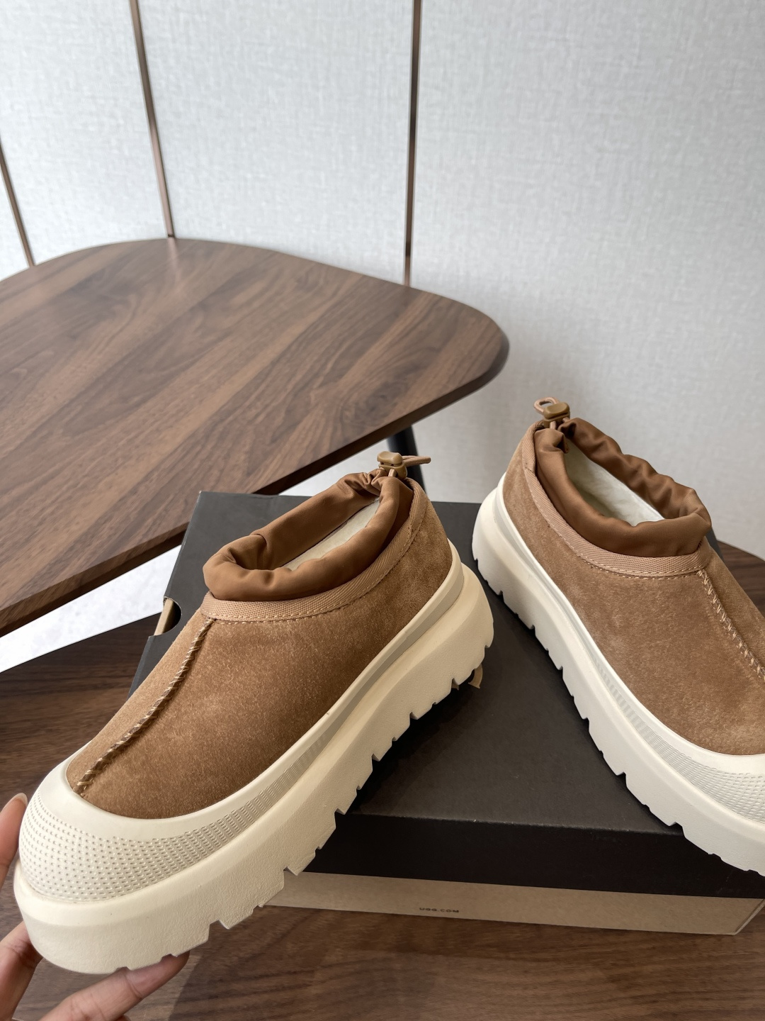 这款鞋子是AAAAA 1:1 质量 (非常棒). 使用了和原版一模一样的材料. 商标部分也保持了和UGG雪地靴一样. 图片拍摄是实物鞋子拍摄, 您所收到的实物保证和我们图片一模一样.