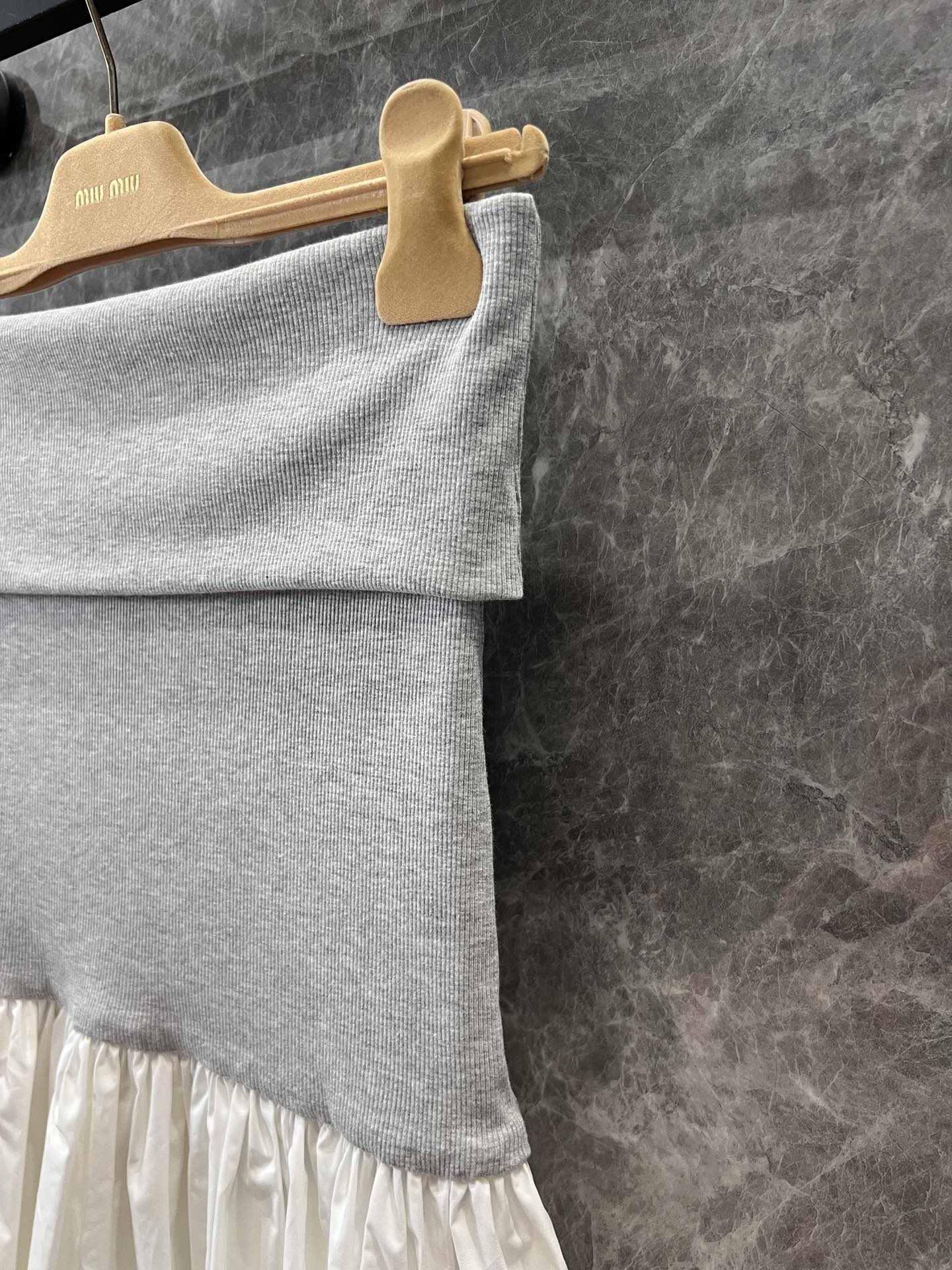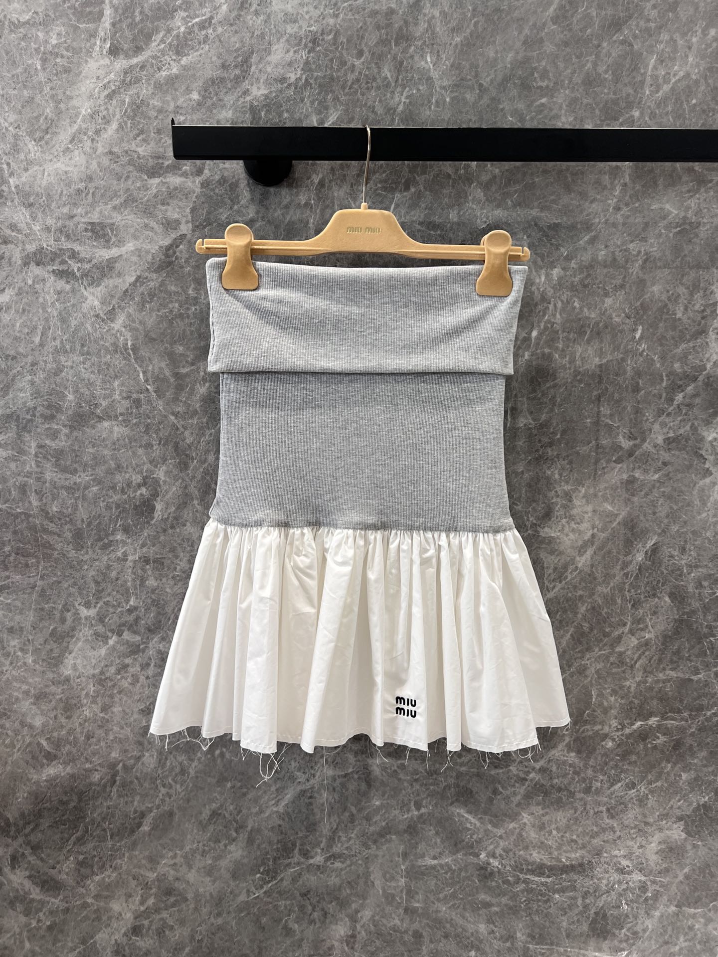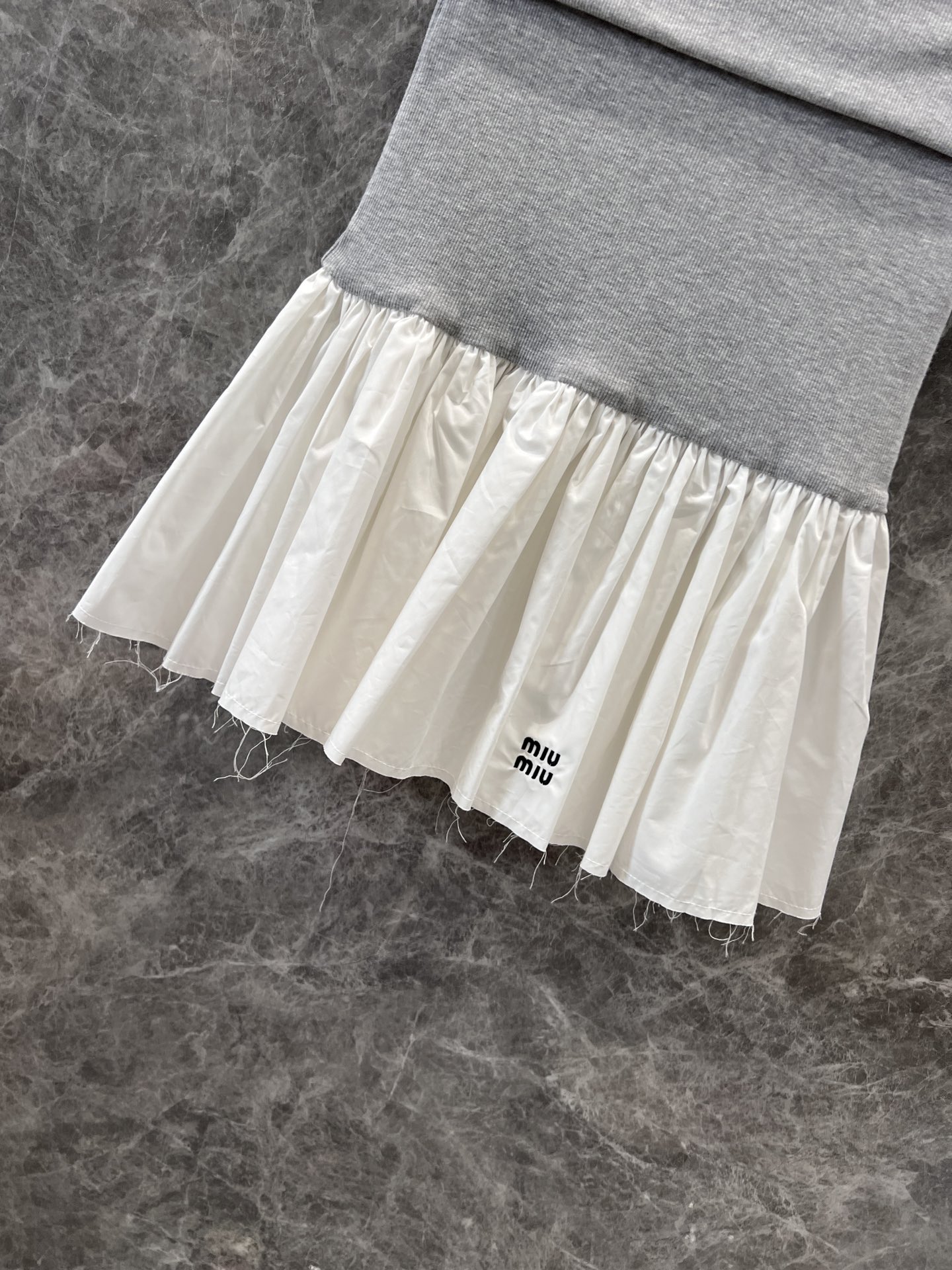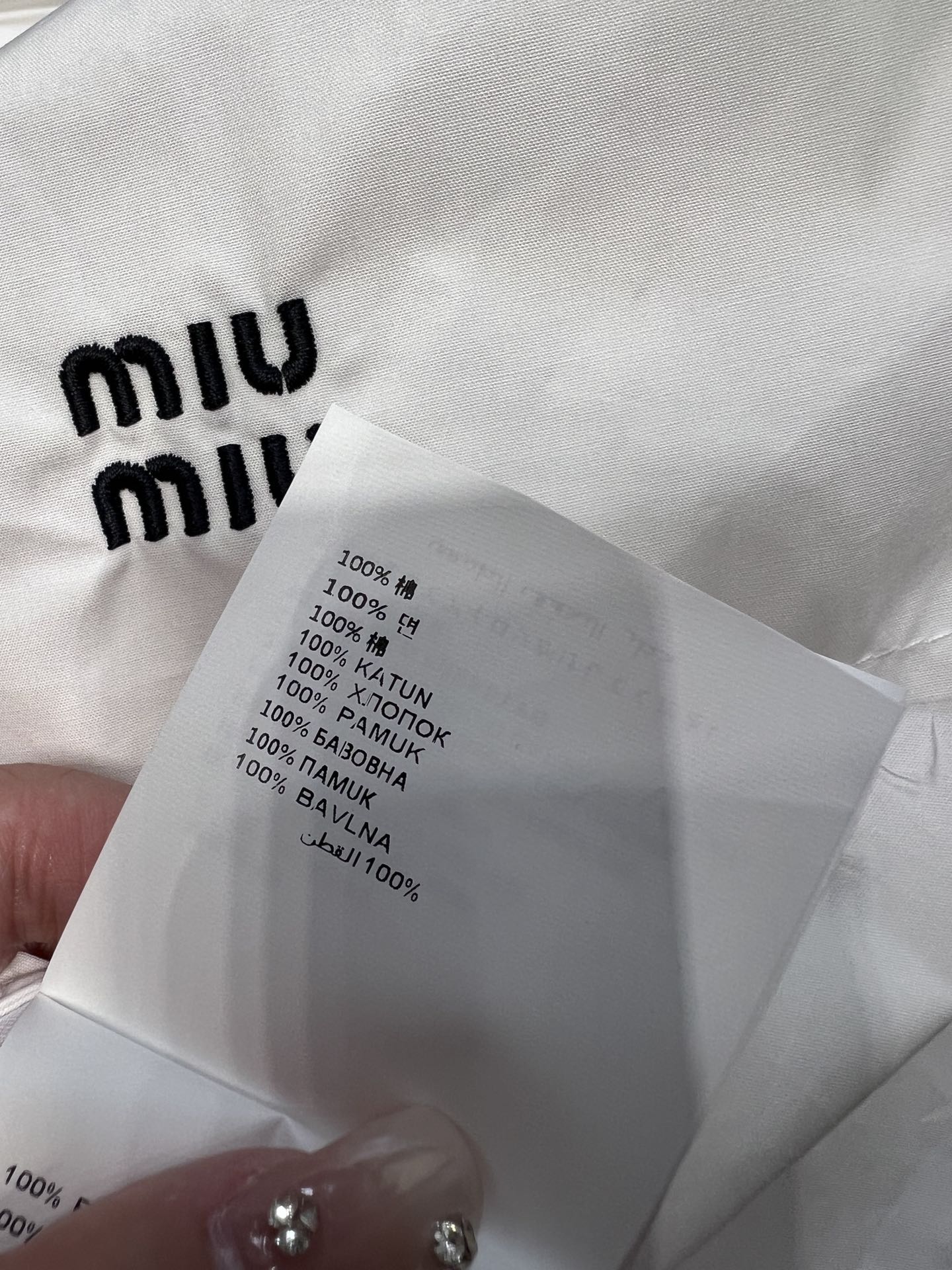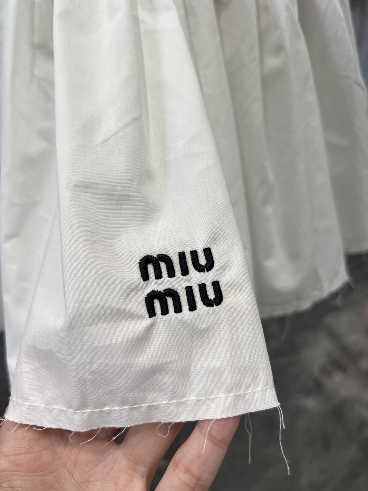 这款衣服是AAAAA 1:1 质量 (非常棒). 使用了和原版一模一样的材料. 商标部分也保持了和缪缪/Miu Miu一样. 图片拍摄是实物衣服拍摄, 您所收到的实物保证和我们图片一模一样.