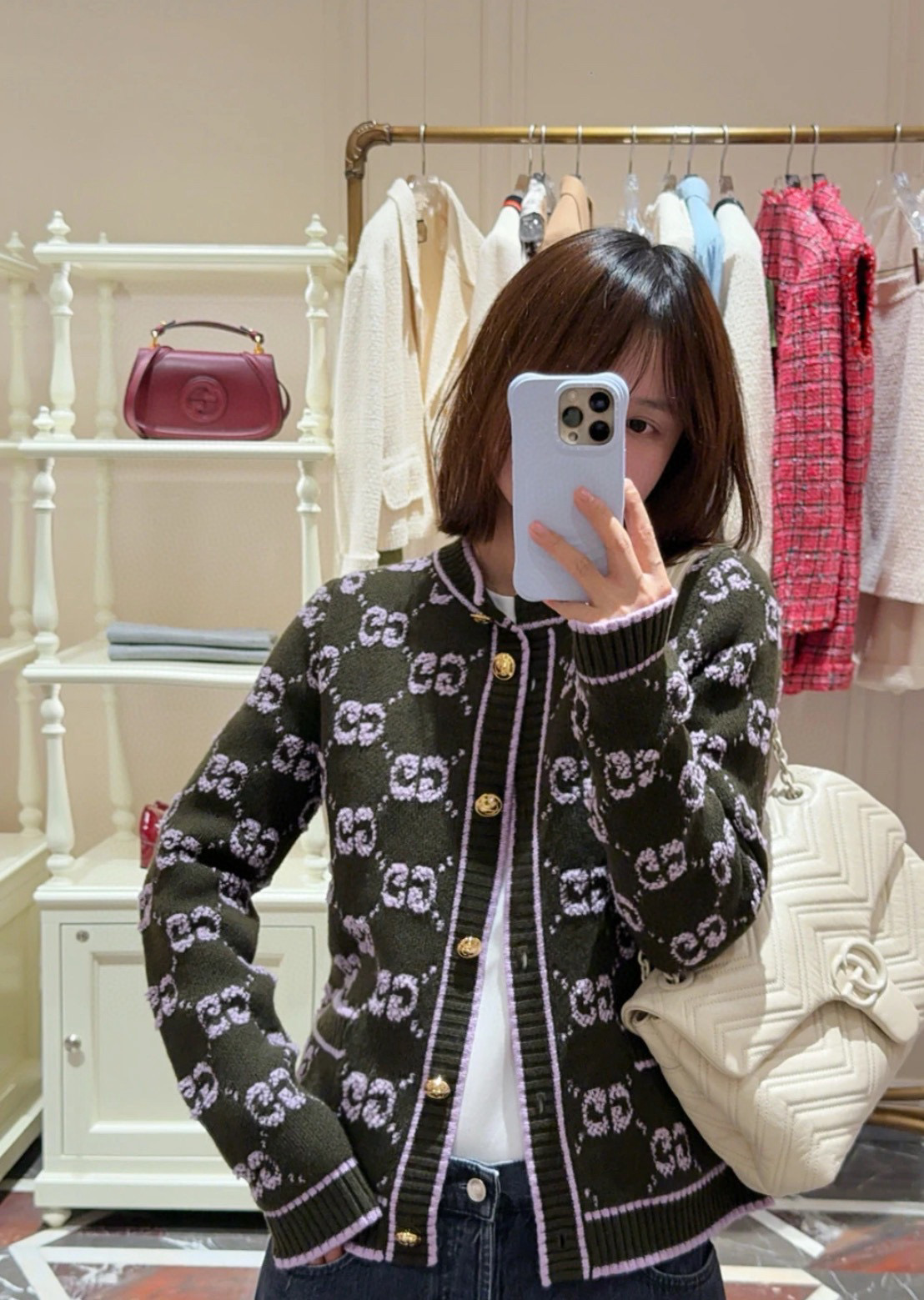 这款衣服是AAAAA 1:1 质量 (非常棒). 使用了和原版一模一样的材料. 商标部分也保持了和古奇/Gucci一样. 图片拍摄是实物衣服拍摄, 您所收到的实物保证和我们图片一模一样.
