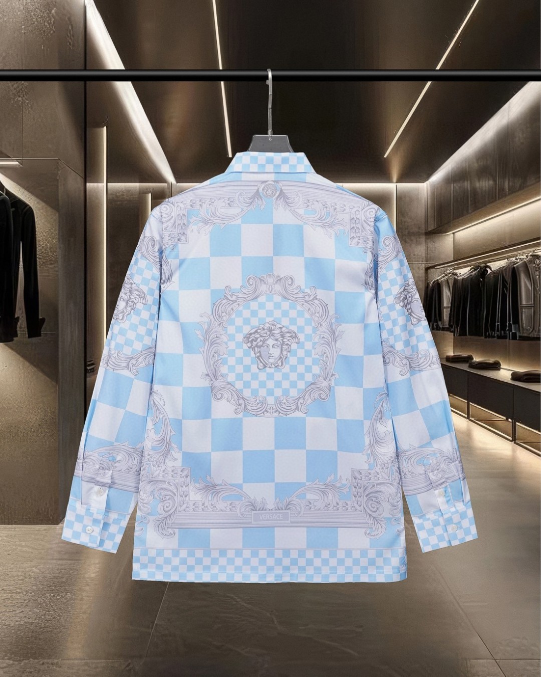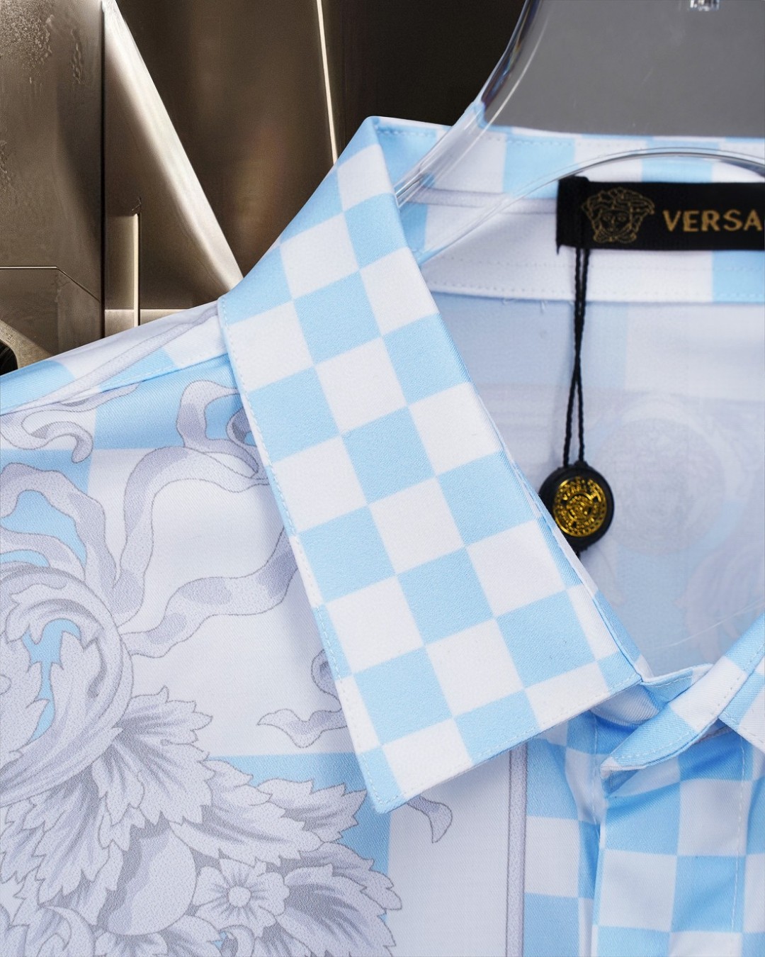 这款衣服是AAAAA 1:1 质量 (非常棒). 使用了和原版一模一样的材料. 商标部分也保持了和范思哲/Versace一样. 图片拍摄是实物衣服拍摄, 您所收到的实物保证和我们图片一模一样.