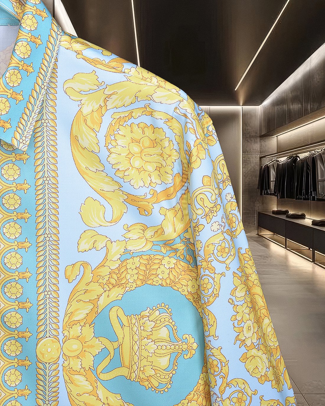 这款衣服是AAAAA 1:1 质量 (非常棒). 使用了和原版一模一样的材料. 商标部分也保持了和范思哲/Versace一样. 图片拍摄是实物衣服拍摄, 您所收到的实物保证和我们图片一模一样.