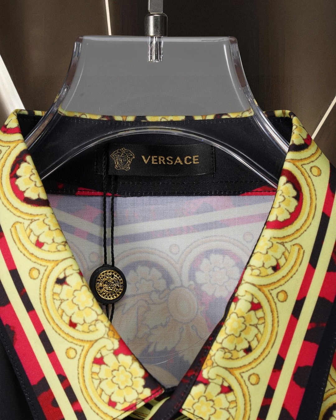 这款衣服是AAAAA 1:1 质量 (非常棒). 使用了和原版一模一样的材料. 商标部分也保持了和范思哲/Versace一样. 图片拍摄是实物衣服拍摄, 您所收到的实物保证和我们图片一模一样.