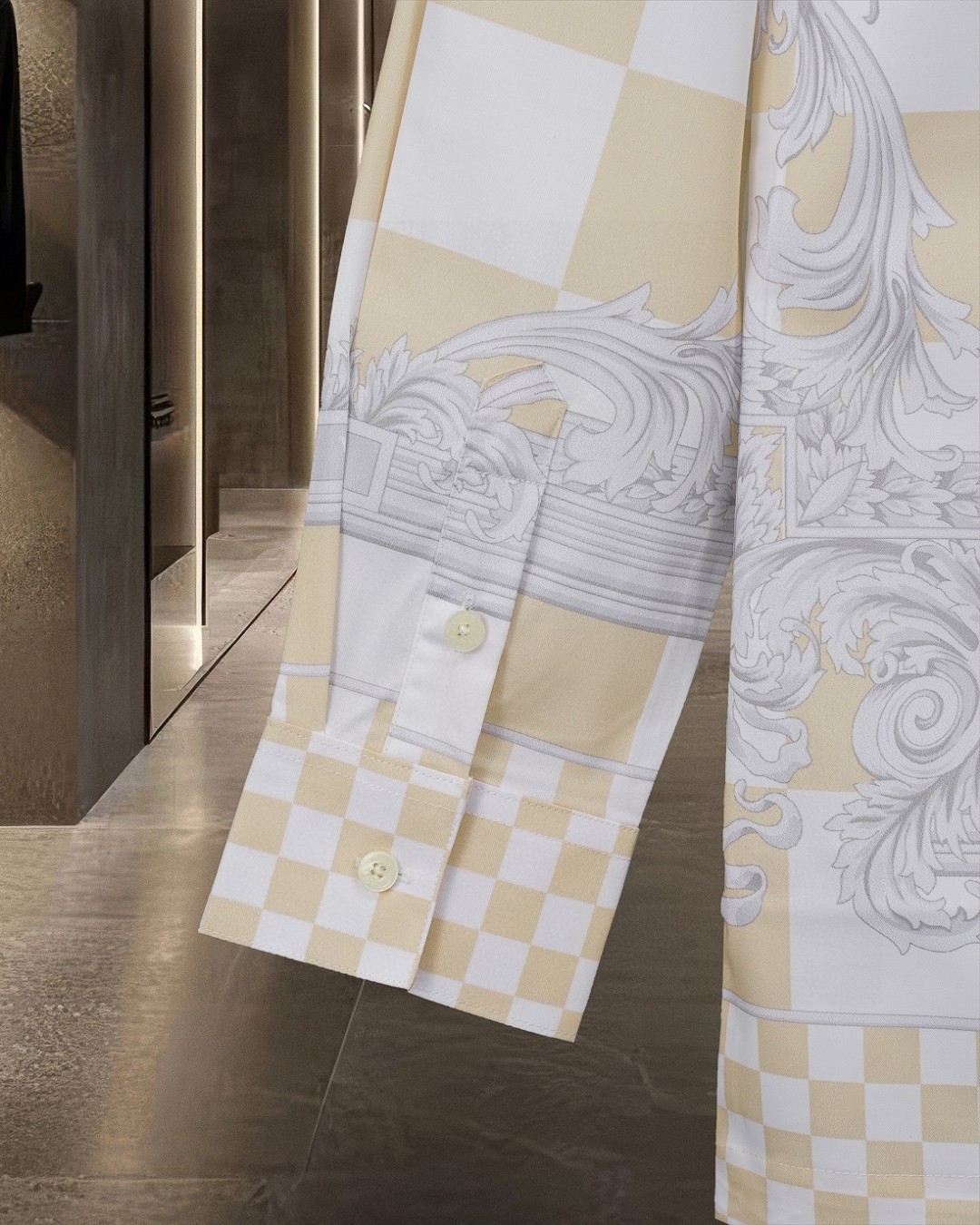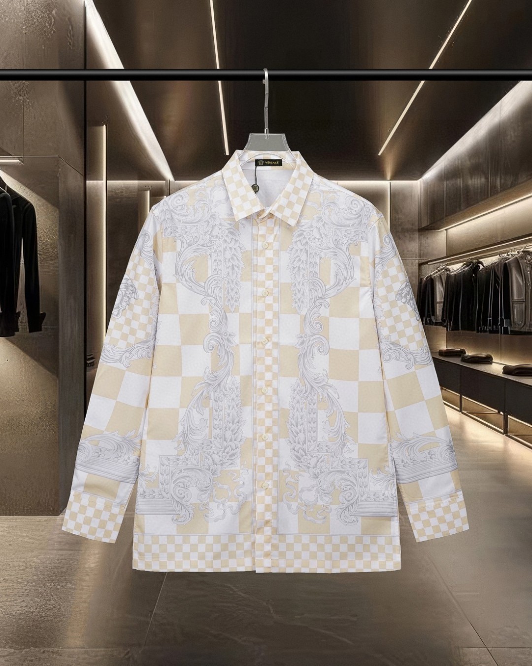 这款衣服是AAAAA 1:1 质量 (非常棒). 使用了和原版一模一样的材料. 商标部分也保持了和范思哲/Versace一样. 图片拍摄是实物衣服拍摄, 您所收到的实物保证和我们图片一模一样.