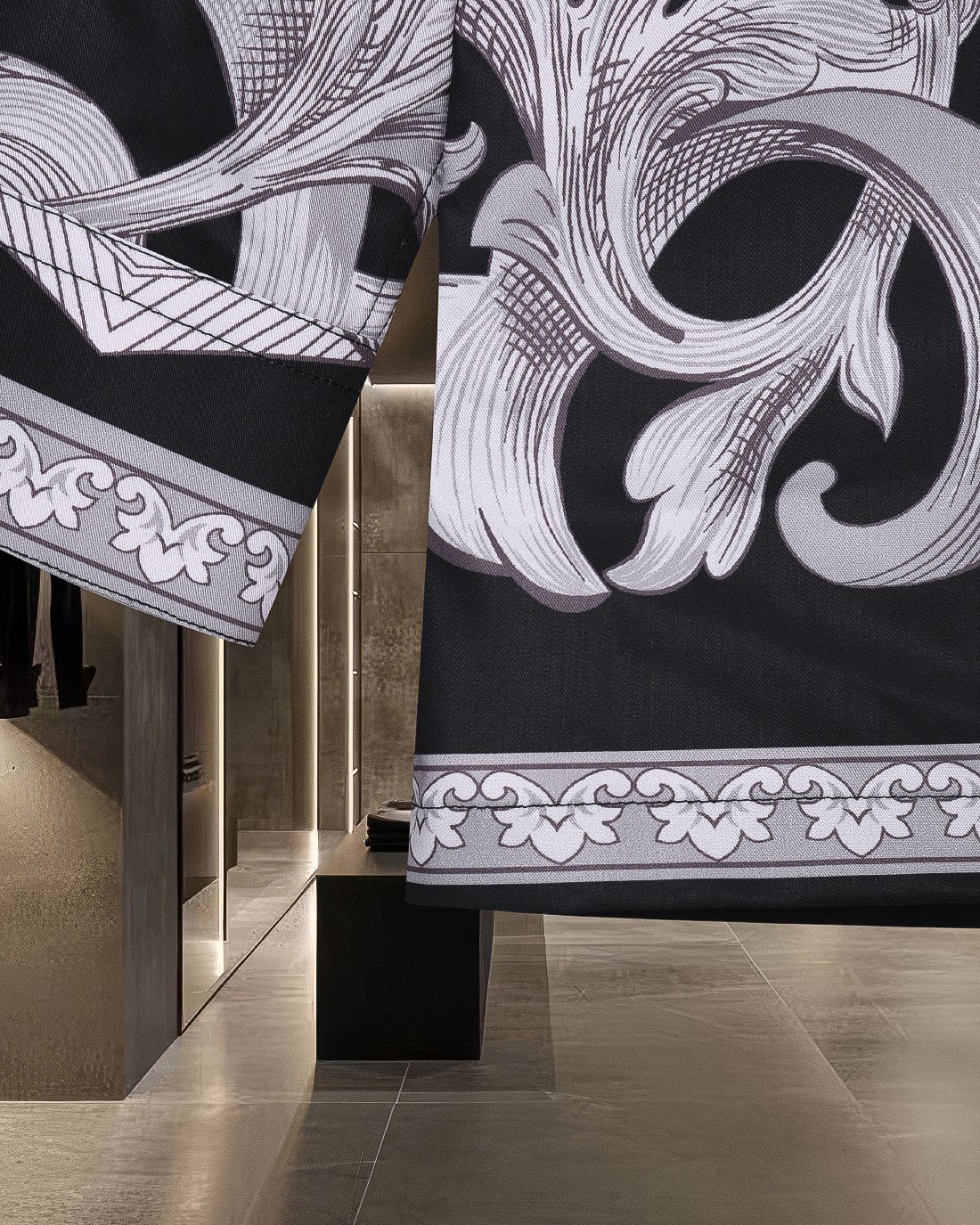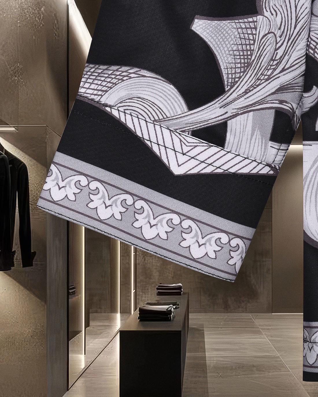 这款衣服是AAAAA 1:1 质量 (非常棒). 使用了和原版一模一样的材料. 商标部分也保持了和范思哲/Versace一样. 图片拍摄是实物衣服拍摄, 您所收到的实物保证和我们图片一模一样.