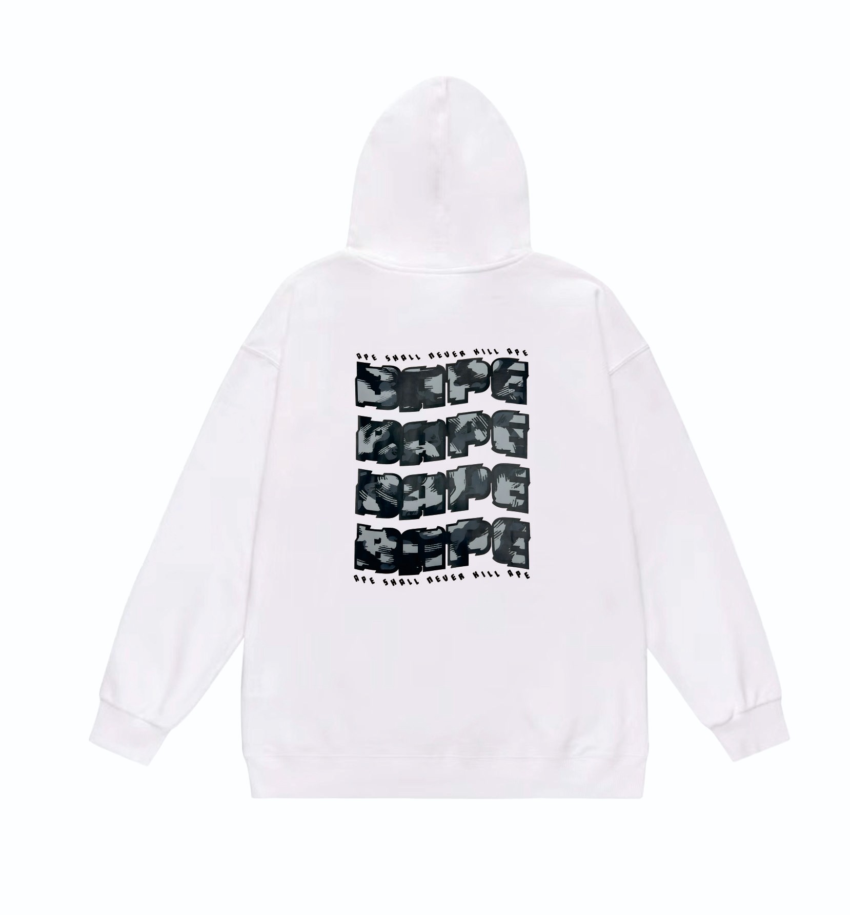 这款衣服是AAAAA 1:1 质量 (非常棒). 使用了和原版一模一样的材料. 商标部分也保持了和Bape一样. 图片拍摄是实物衣服拍摄, 您所收到的实物保证和我们图片一模一样.