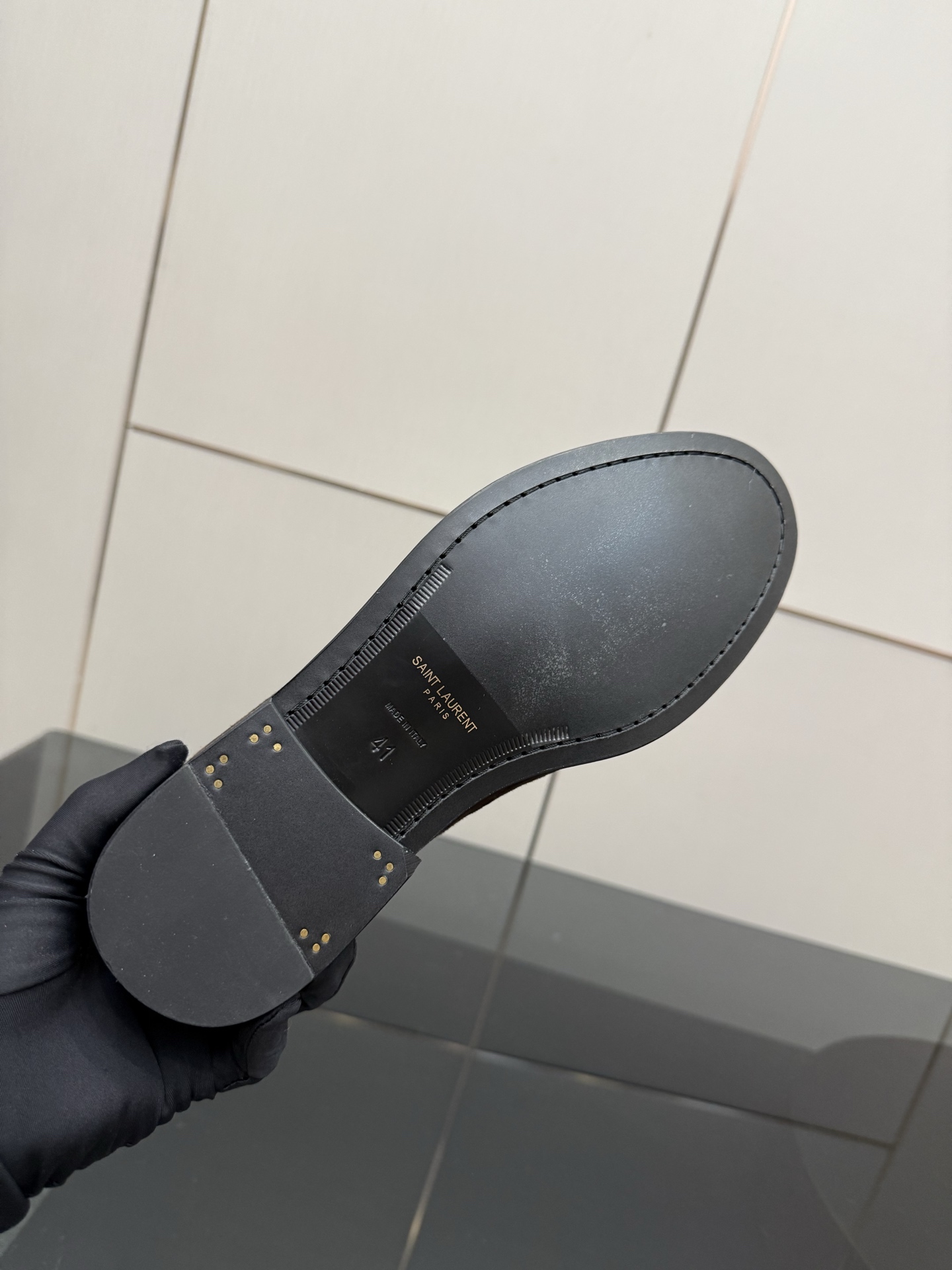 这款鞋子是AAAAA 1:1 质量 (非常棒). 使用了和原版一模一样的材料. 商标部分也保持了和圣罗兰/Saint Laurent一样. 图片拍摄是实物鞋子拍摄, 您所收到的实物保证和我们图片一模一样.