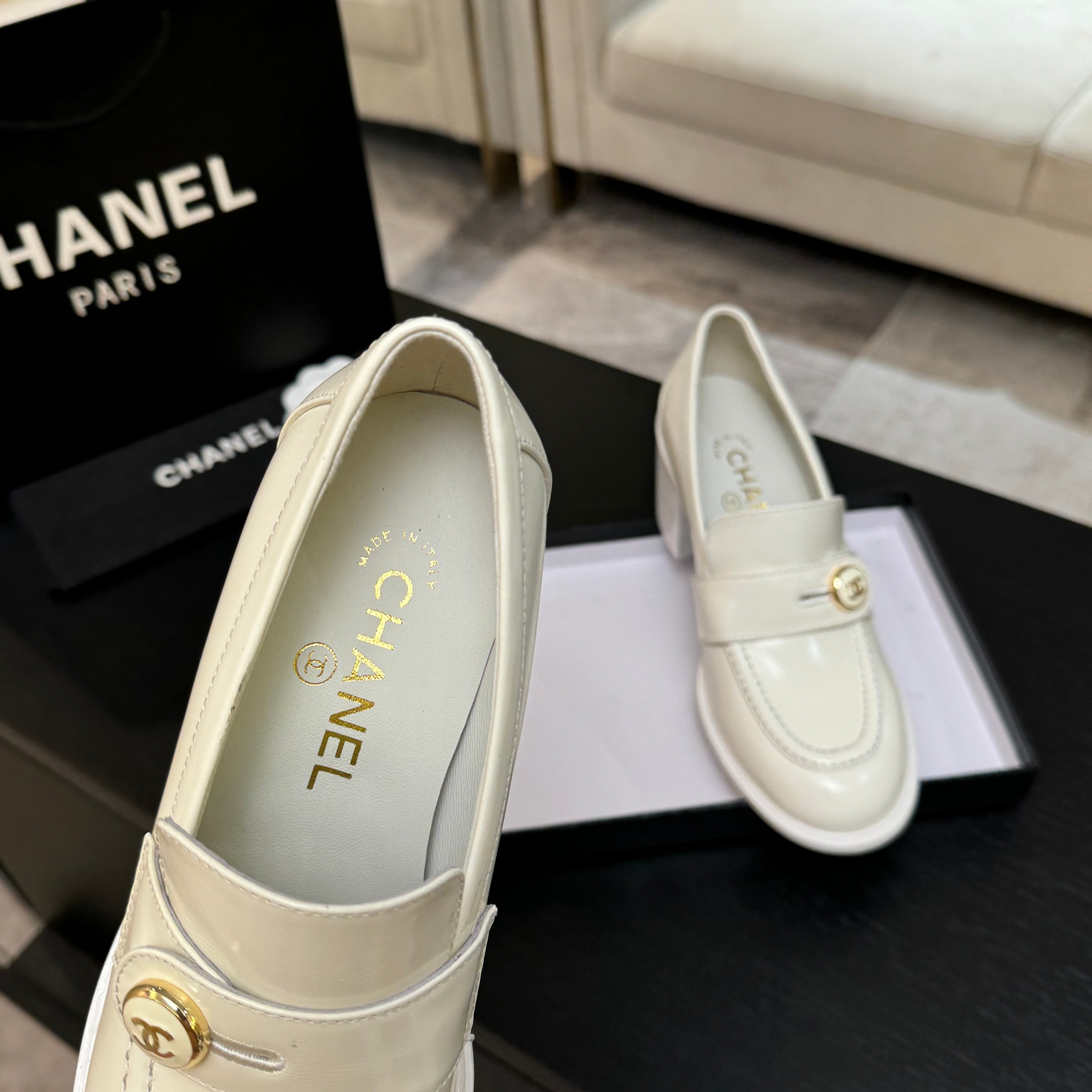 这款鞋子是AAAAA 1:1 质量 (非常棒). 使用了和原版一模一样的材料. 商标部分也保持了和香奈儿/Chanel一样. 图片拍摄是实物鞋子拍摄, 您所收到的实物保证和我们图片一模一样.