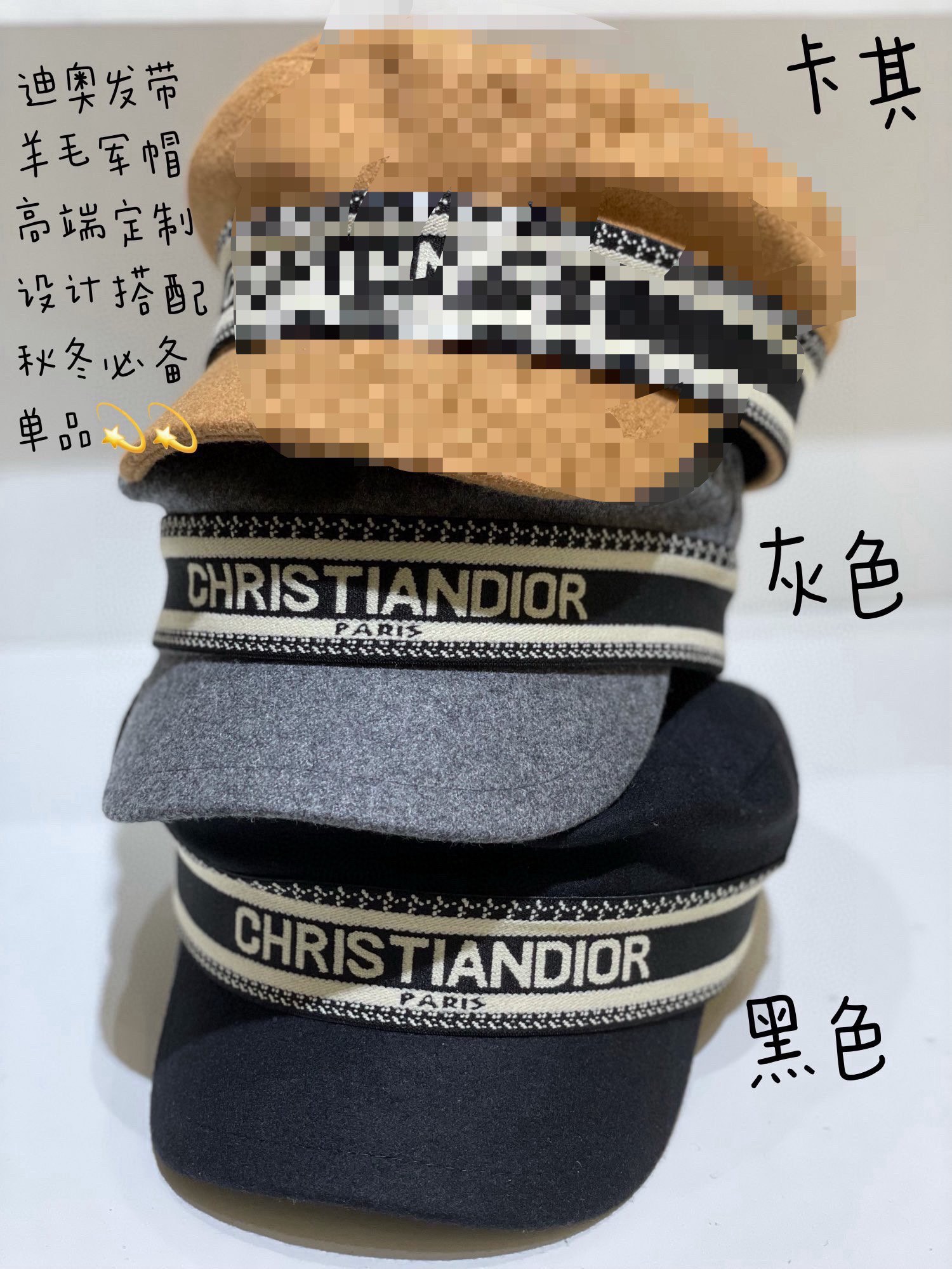 这款帽子是AAAAA 1:1 质量 (非常棒). 使用了和原版一模一样的材料. 商标部分也保持了和迪奥/Dior一样. 图片拍摄是实物帽子拍摄, 您所收到的实物保证和我们图片一模一样.