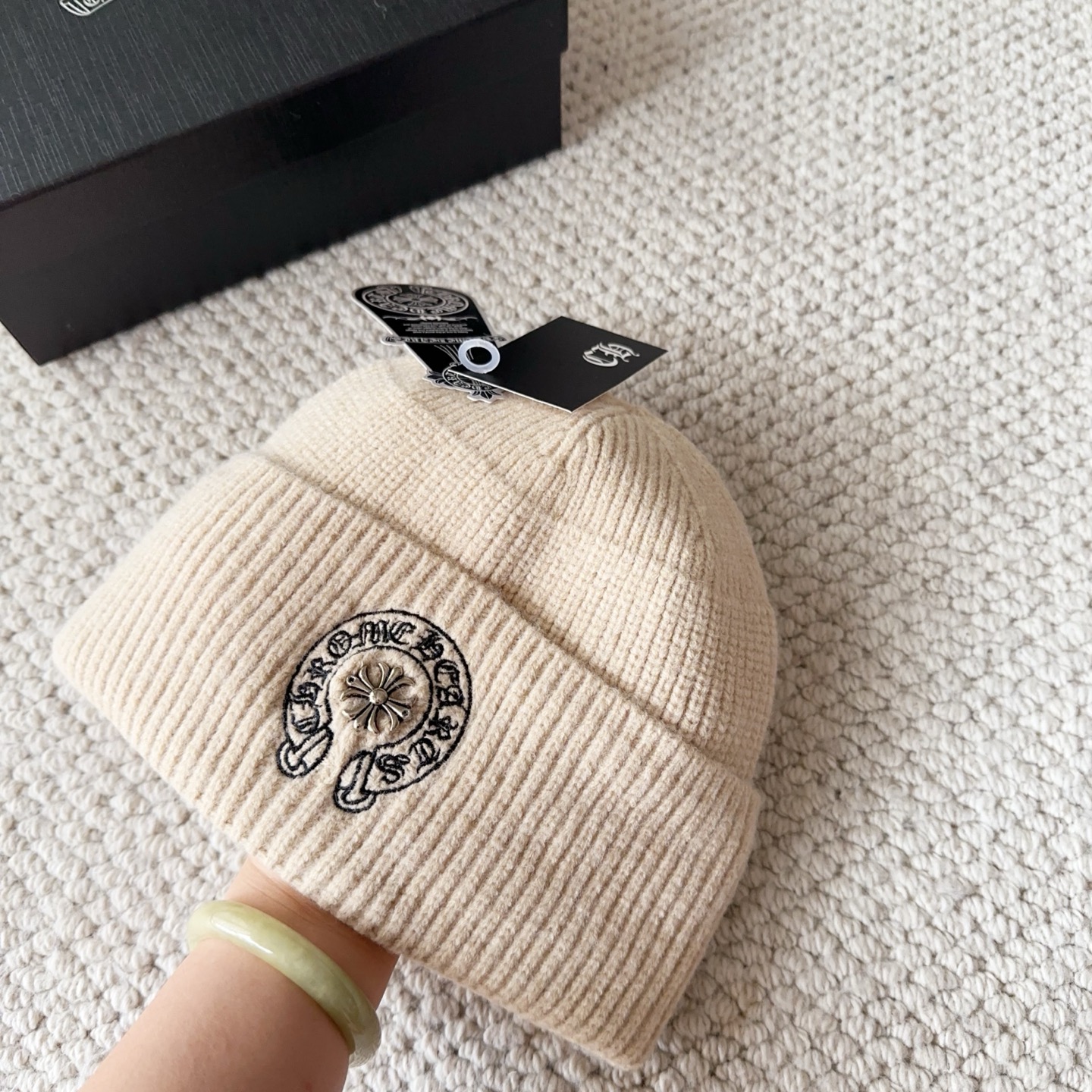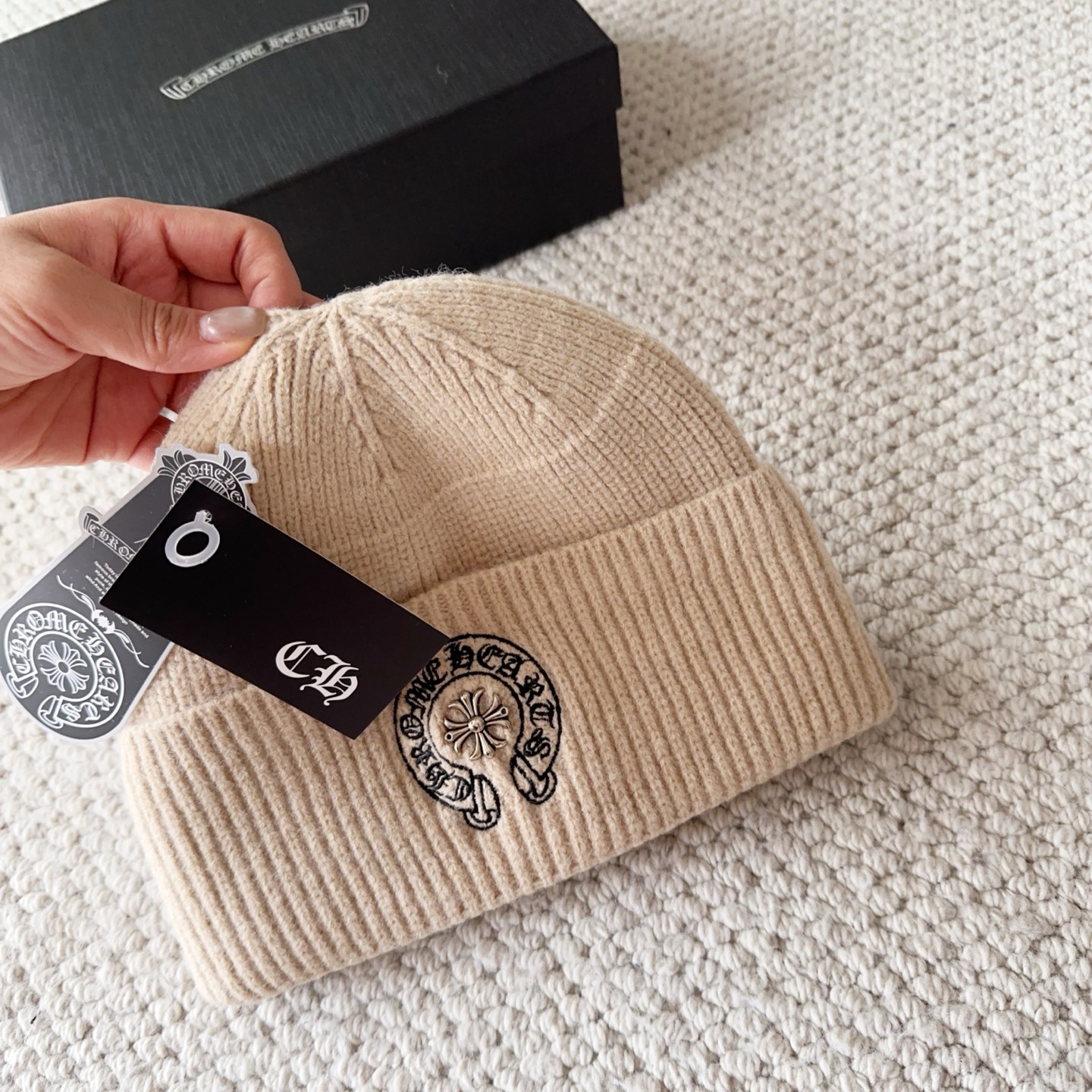 这款帽子是AAAAA 1:1 质量 (非常棒). 使用了和原版一模一样的材料. 商标部分也保持了和克罗心/Chrome Hearts一样. 图片拍摄是实物帽子拍摄, 您所收到的实物保证和我们图片一模一样.