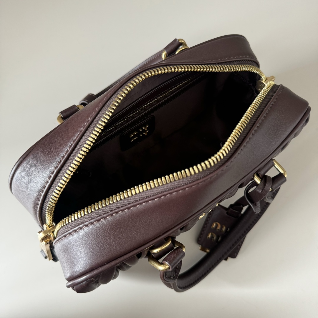 这款包包是AAAAA 1:1 质量 (非常棒). 使用了和原版一模一样的材料. 商标部分也保持了和缪缪/Miu Miu一样. 图片拍摄是实物包包拍摄, 您所收到的实物保证和我们图片一模一样.