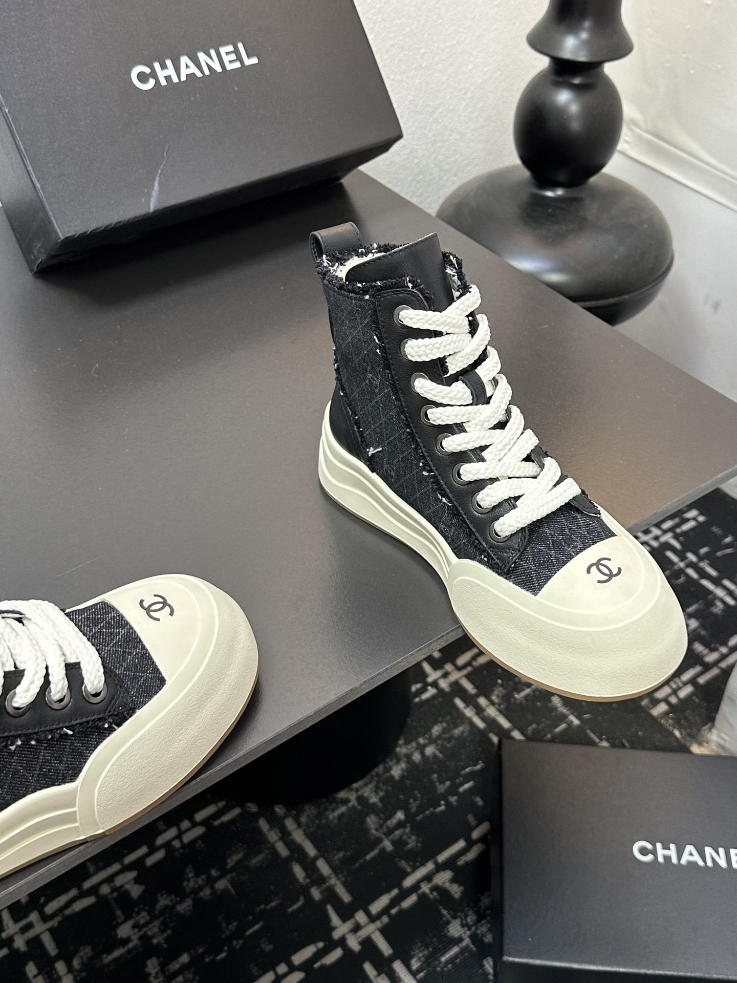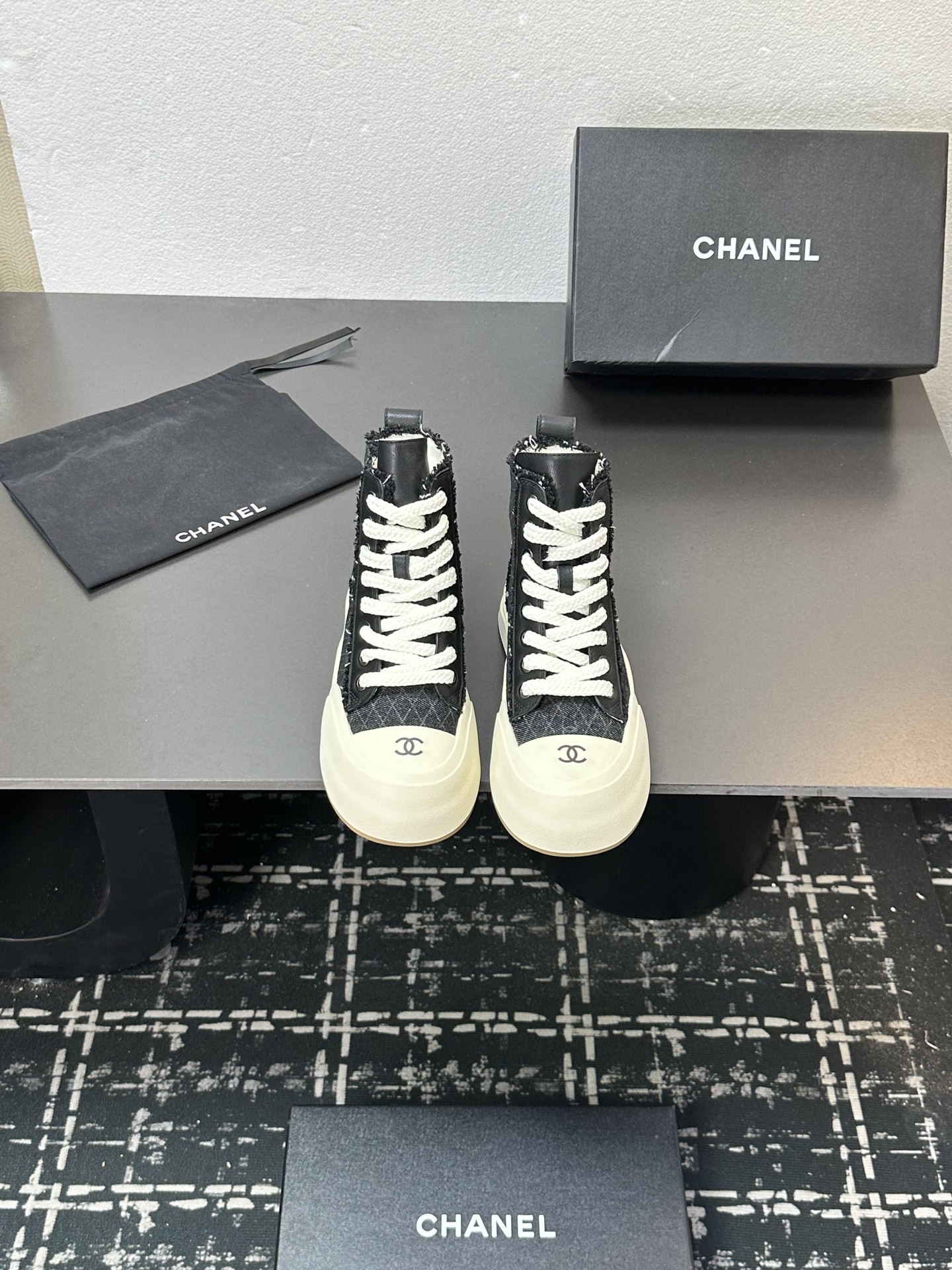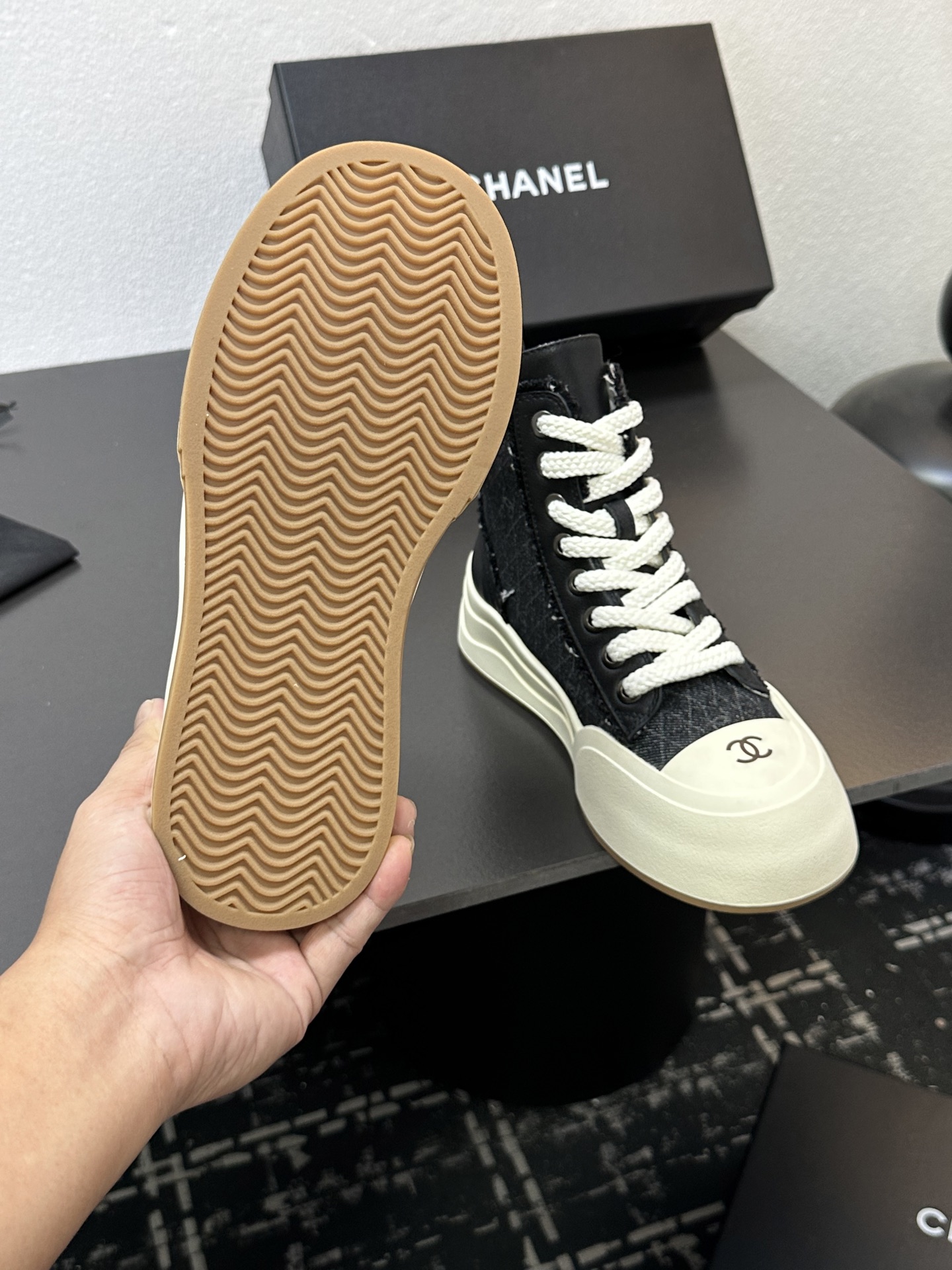 这款鞋子是AAAAA 1:1 质量 (非常棒). 使用了和原版一模一样的材料. 商标部分也保持了和香奈儿/Chanel一样. 图片拍摄是实物鞋子拍摄, 您所收到的实物保证和我们图片一模一样.