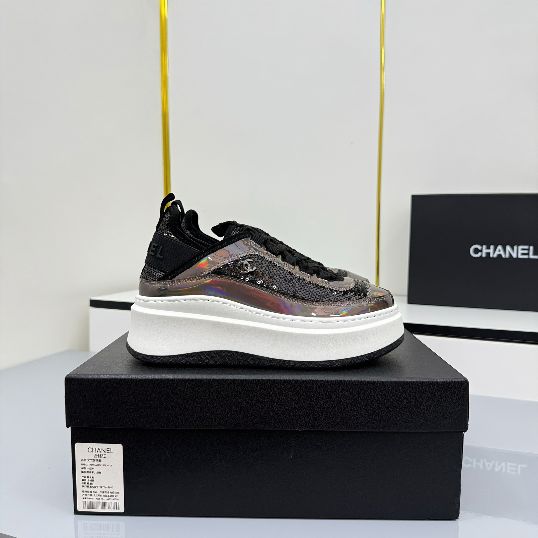 这款鞋子是AAAAA 1:1 质量 (非常棒). 使用了和原版一模一样的材料. 商标部分也保持了和香奈儿/Chanel一样. 图片拍摄是实物鞋子拍摄, 您所收到的实物保证和我们图片一模一样.