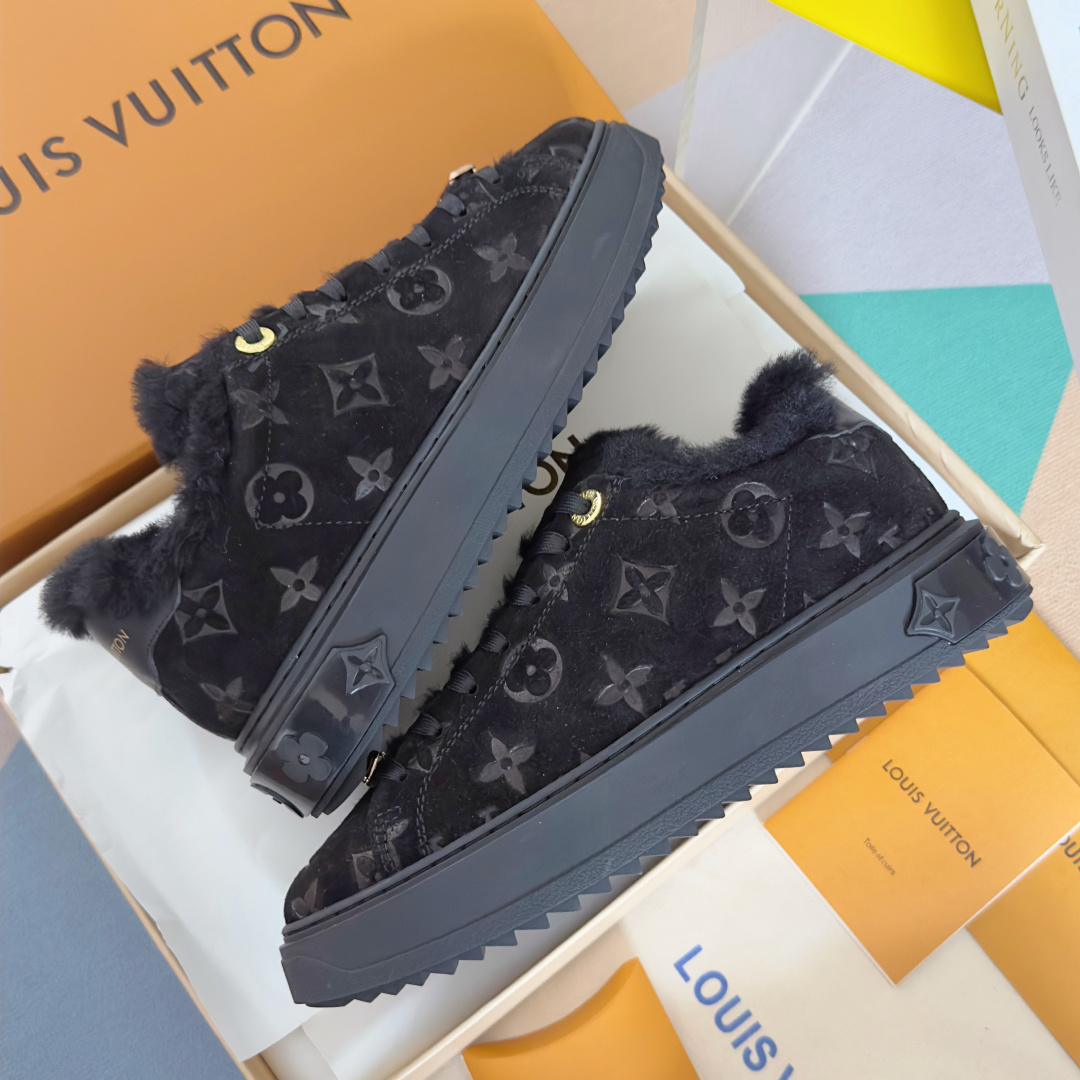 这款鞋子是AAAAA 1:1 质量 (非常棒). 使用了和原版一模一样的材料. 商标部分也保持了和路易威登/Louis Vuitton一样. 图片拍摄是实物鞋子拍摄, 您所收到的实物保证和我们图片一模一样.