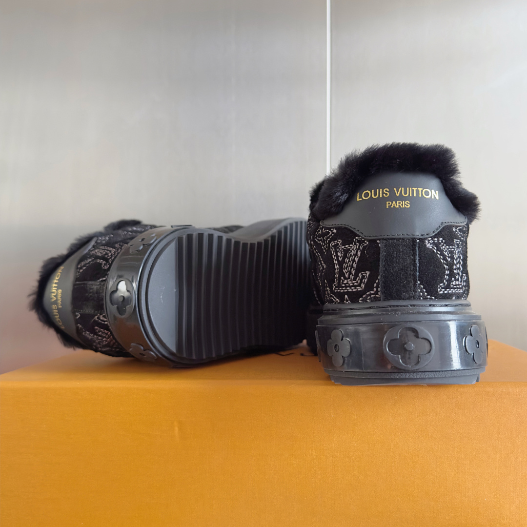 这款鞋子是AAAAA 1:1 质量 (非常棒). 使用了和原版一模一样的材料. 商标部分也保持了和路易威登/Louis Vuitton一样. 图片拍摄是实物鞋子拍摄, 您所收到的实物保证和我们图片一模一样.
