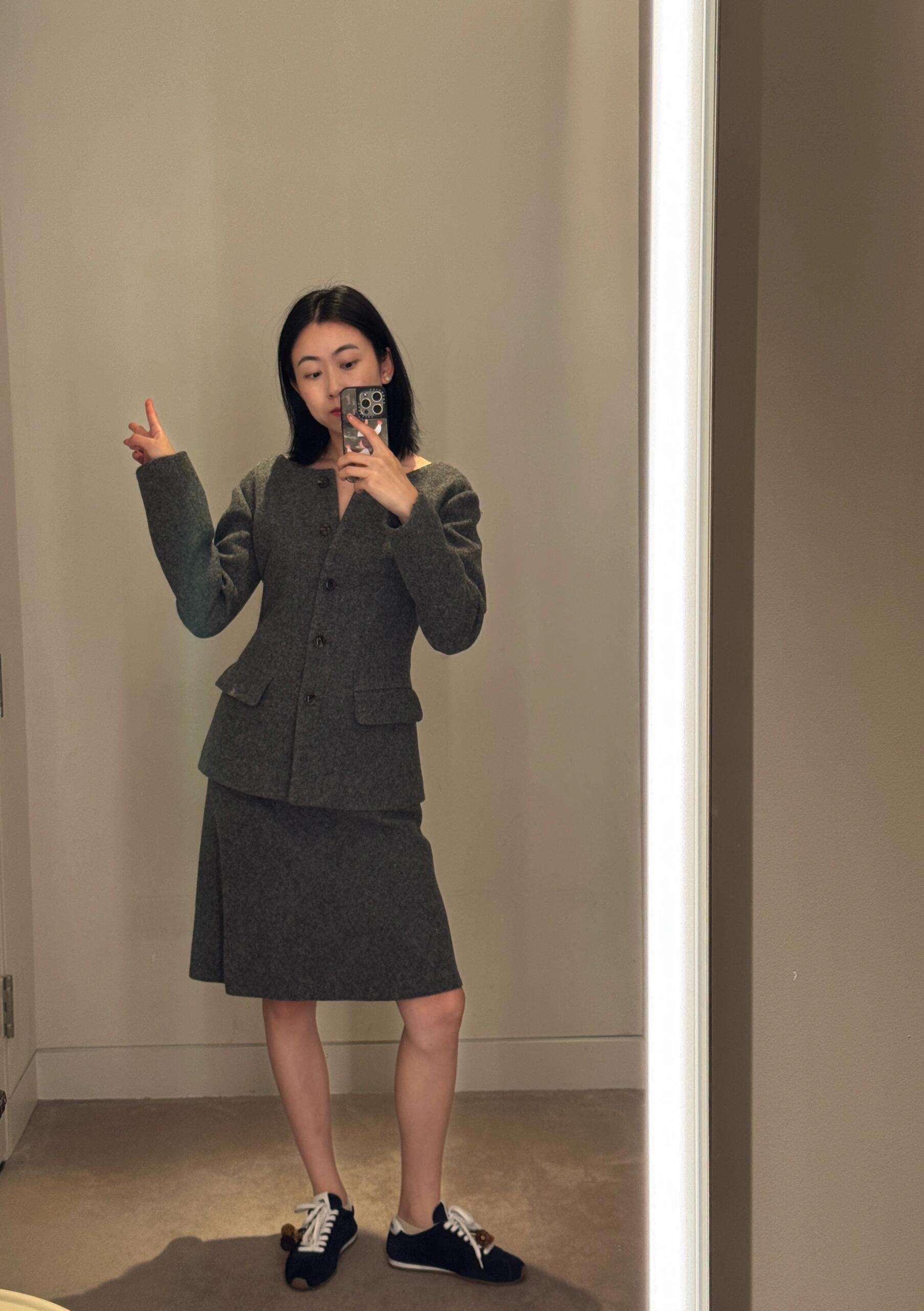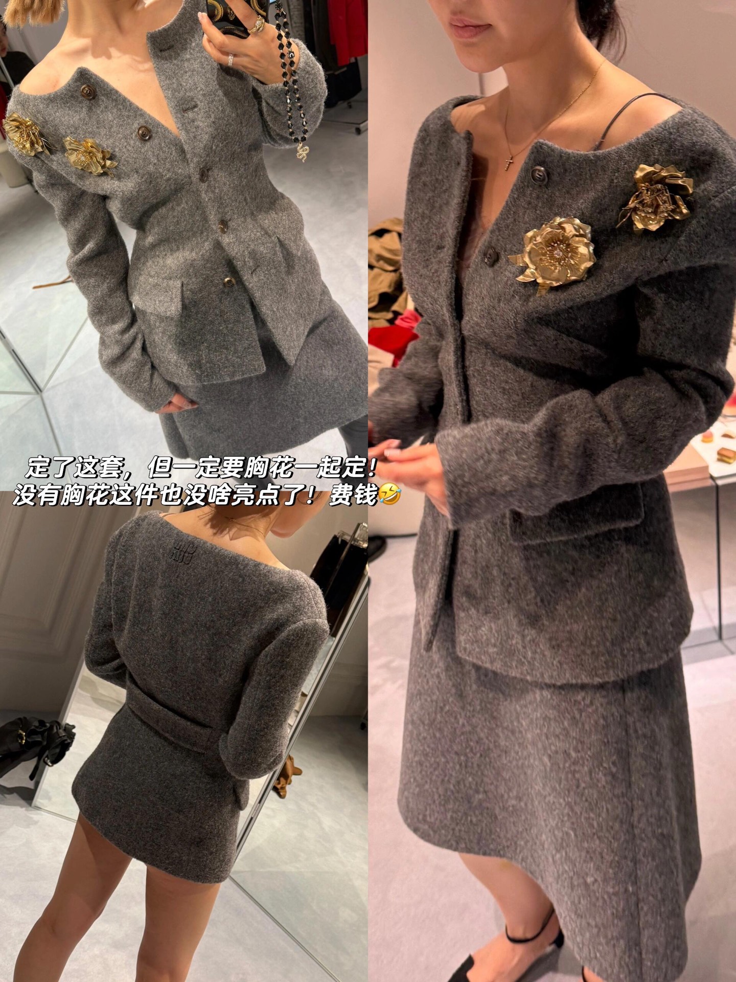 这款衣服是AAAAA 1:1 质量 (非常棒). 使用了和原版一模一样的材料. 商标部分也保持了和缪缪/Miu Miu一样. 图片拍摄是实物衣服拍摄, 您所收到的实物保证和我们图片一模一样.