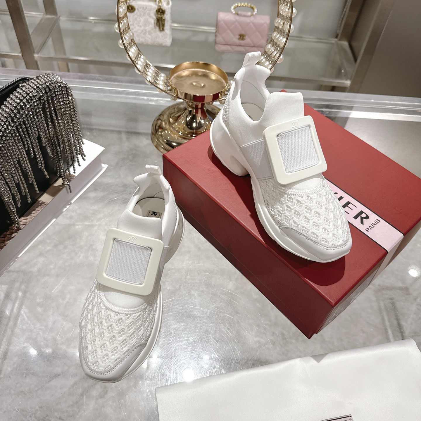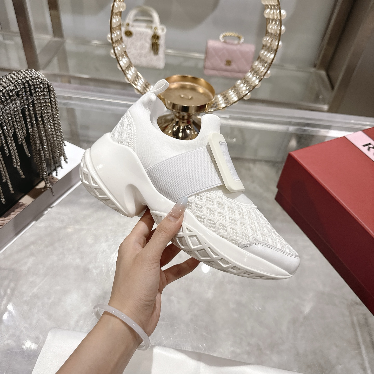 这款鞋子是AAAAA 1:1 质量 (非常棒). 使用了和原版一模一样的材料. 商标部分也保持了和罗杰维维耶/Roger Vivier一样. 图片拍摄是实物鞋子拍摄, 您所收到的实物保证和我们图片一模一样.
