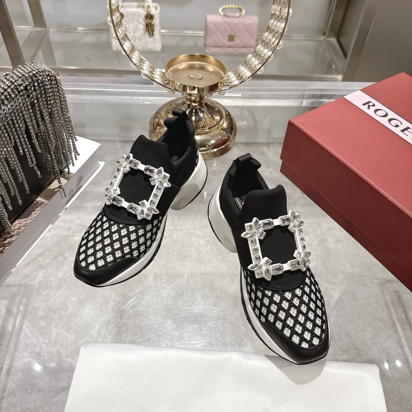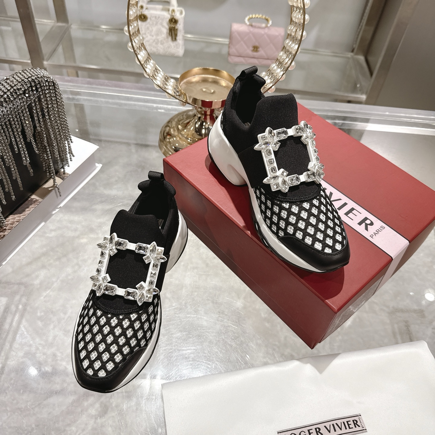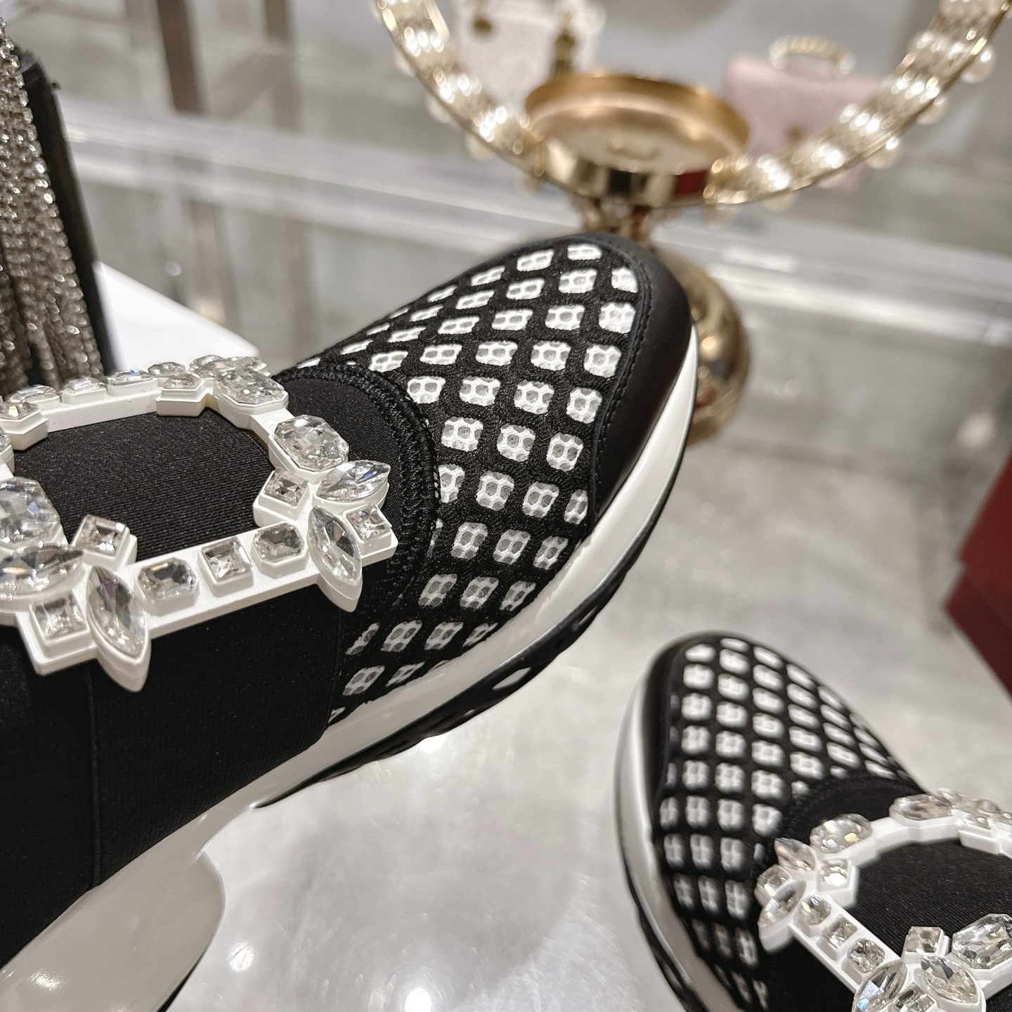 这款鞋子是AAAAA 1:1 质量 (非常棒). 使用了和原版一模一样的材料. 商标部分也保持了和罗杰维维耶/Roger Vivier一样. 图片拍摄是实物鞋子拍摄, 您所收到的实物保证和我们图片一模一样.