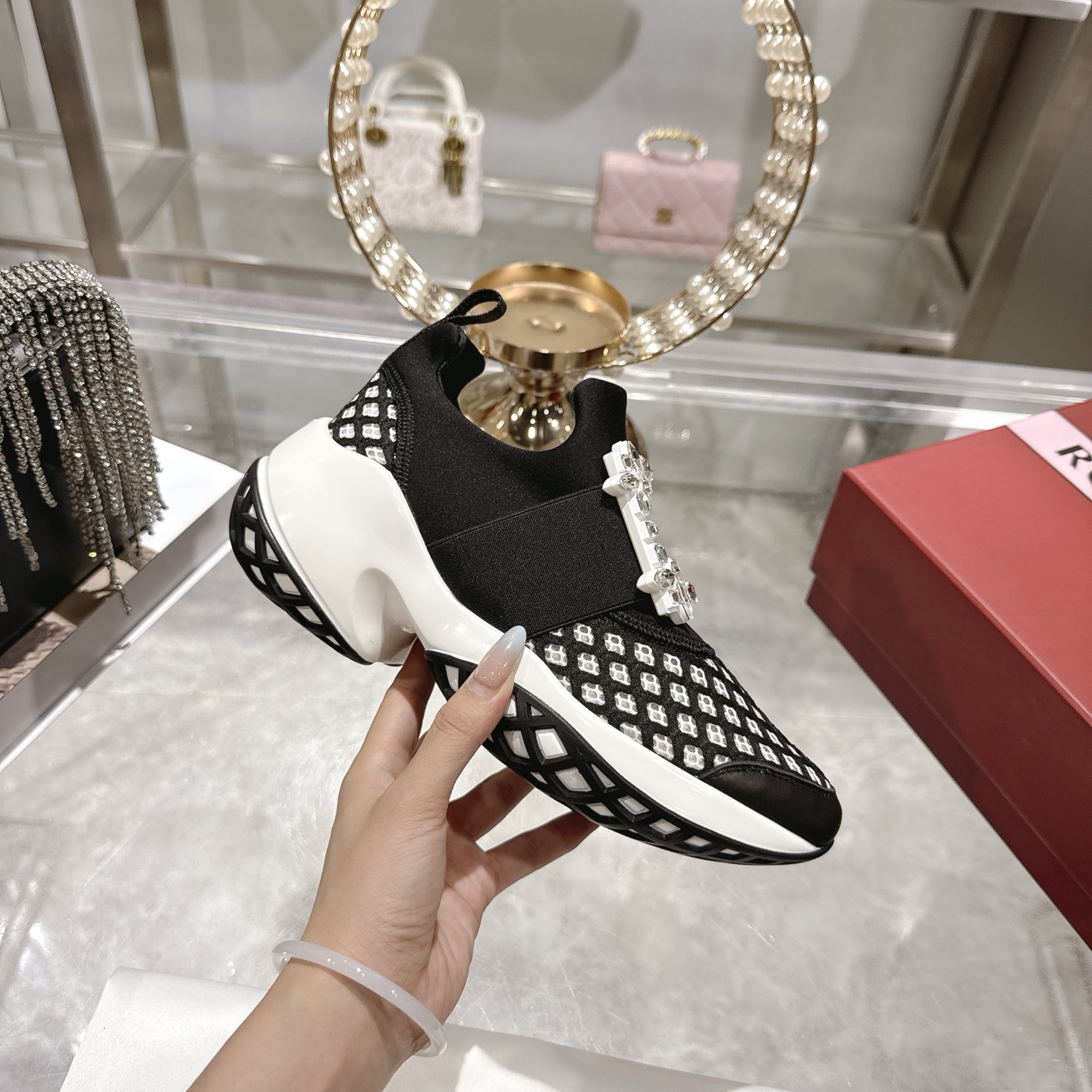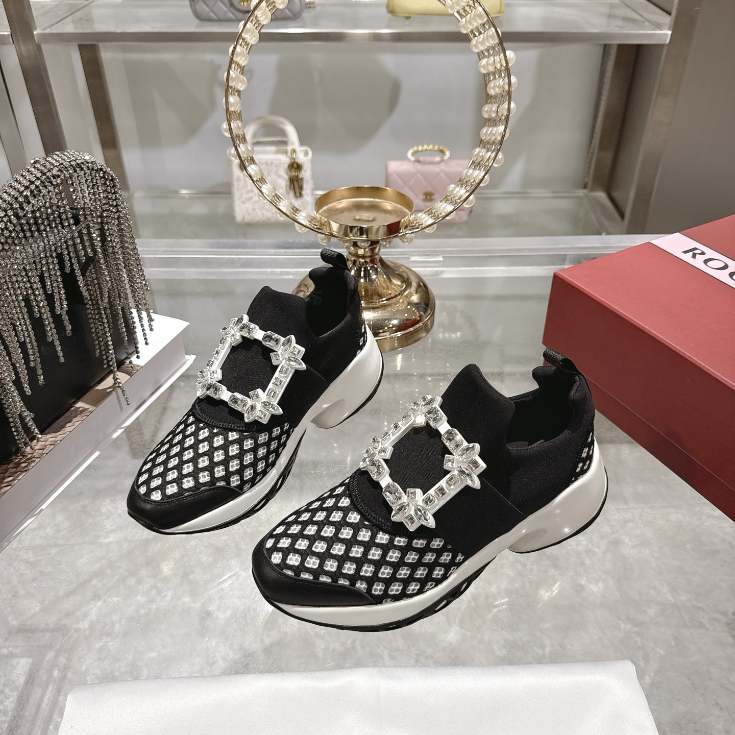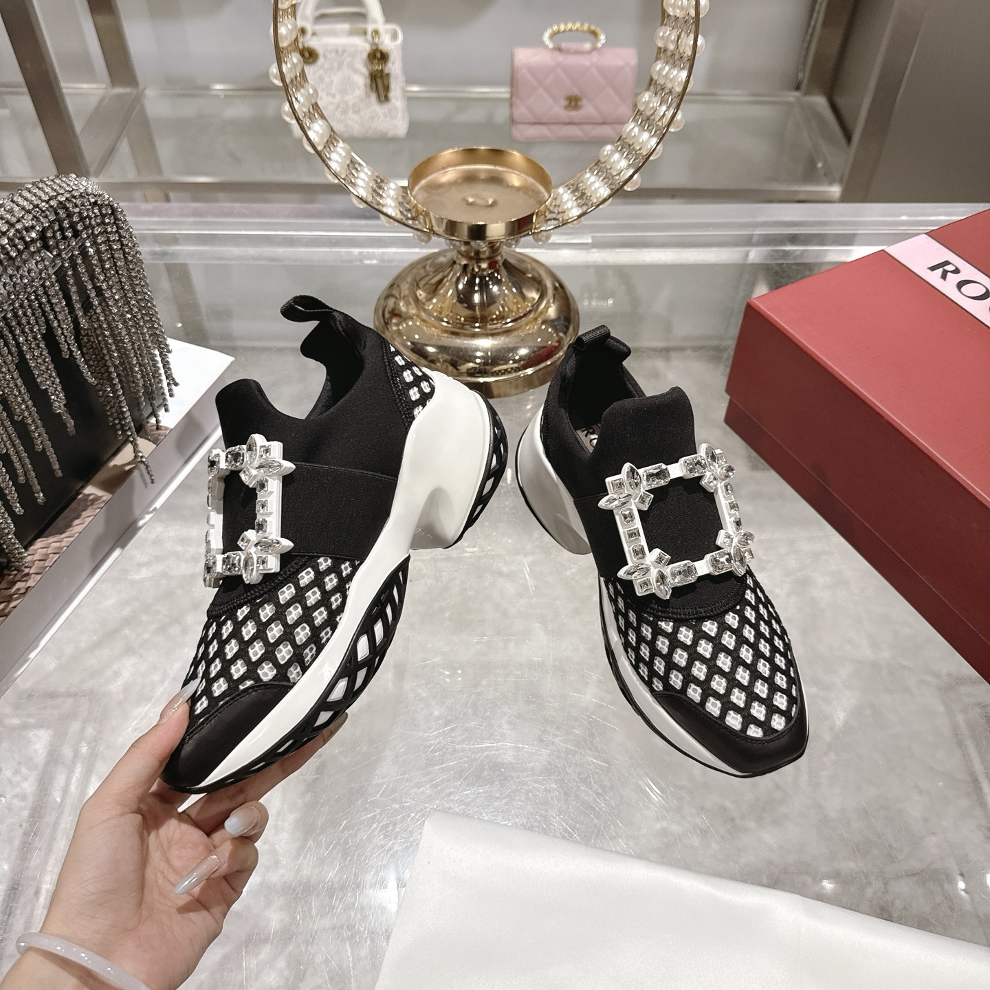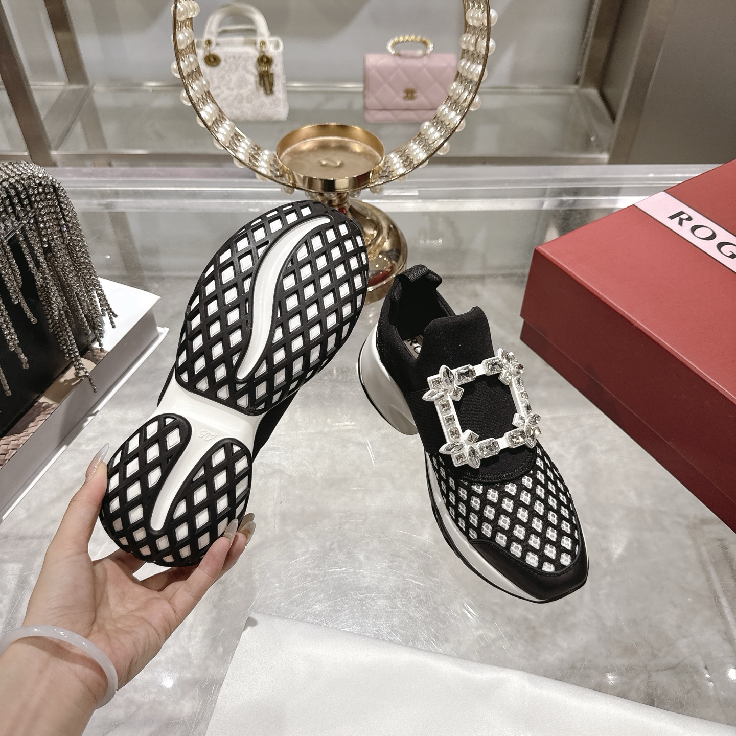 这款鞋子是AAAAA 1:1 质量 (非常棒). 使用了和原版一模一样的材料. 商标部分也保持了和罗杰维维耶/Roger Vivier一样. 图片拍摄是实物鞋子拍摄, 您所收到的实物保证和我们图片一模一样.