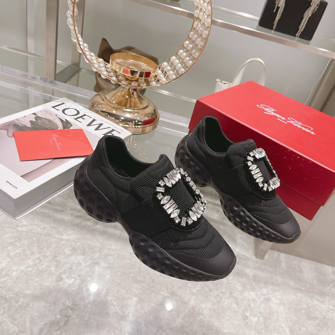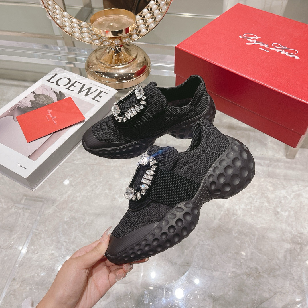 这款鞋子是AAAAA 1:1 质量 (非常棒). 使用了和原版一模一样的材料. 商标部分也保持了和罗杰维维耶/Roger Vivier一样. 图片拍摄是实物鞋子拍摄, 您所收到的实物保证和我们图片一模一样.