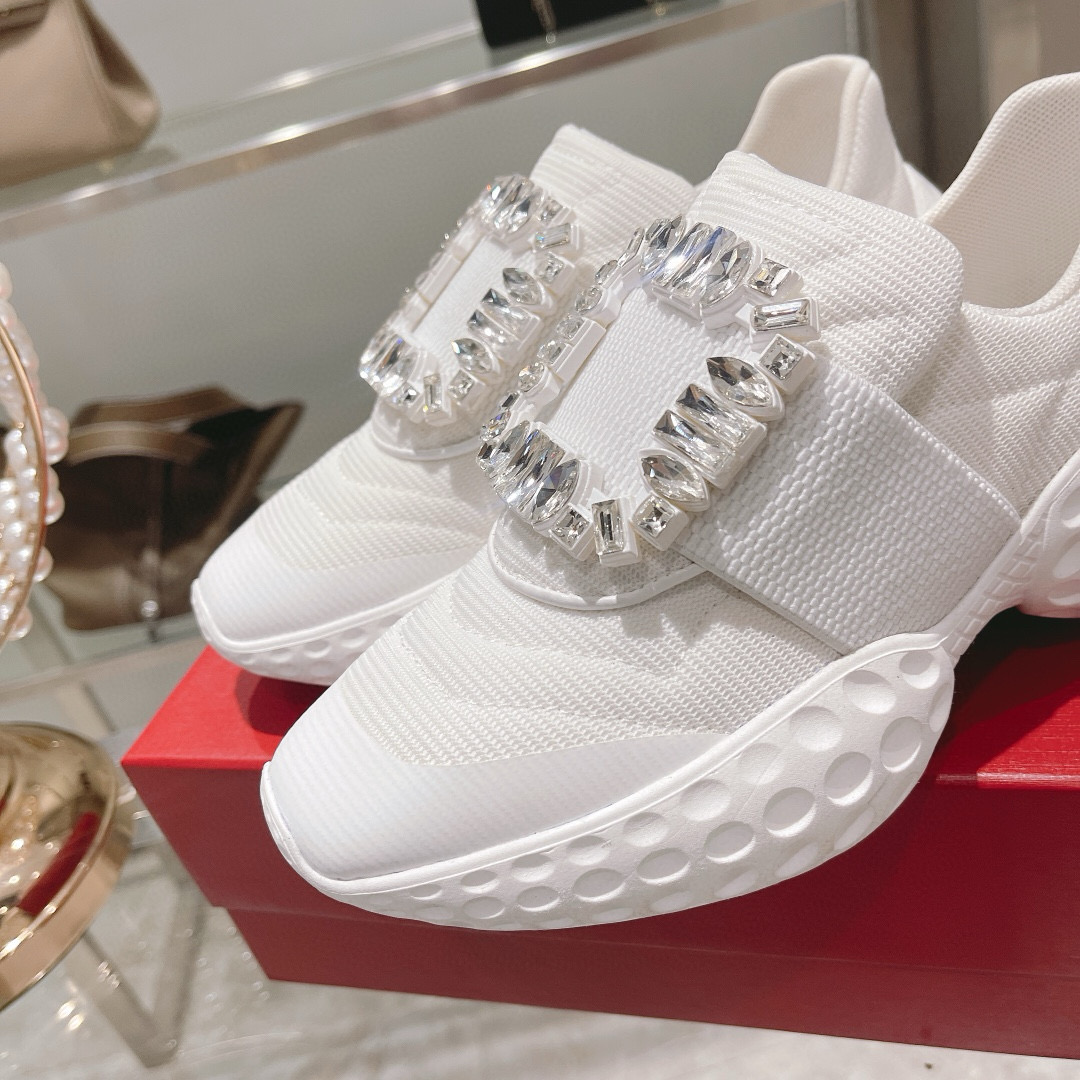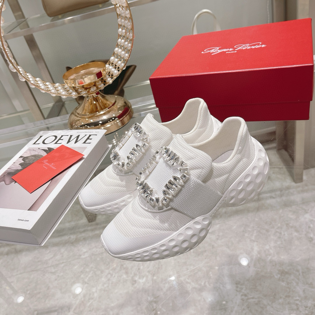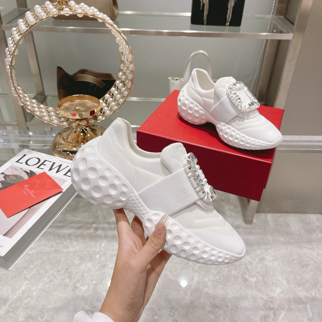 这款鞋子是AAAAA 1:1 质量 (非常棒). 使用了和原版一模一样的材料. 商标部分也保持了和罗杰维维耶/Roger Vivier一样. 图片拍摄是实物鞋子拍摄, 您所收到的实物保证和我们图片一模一样.